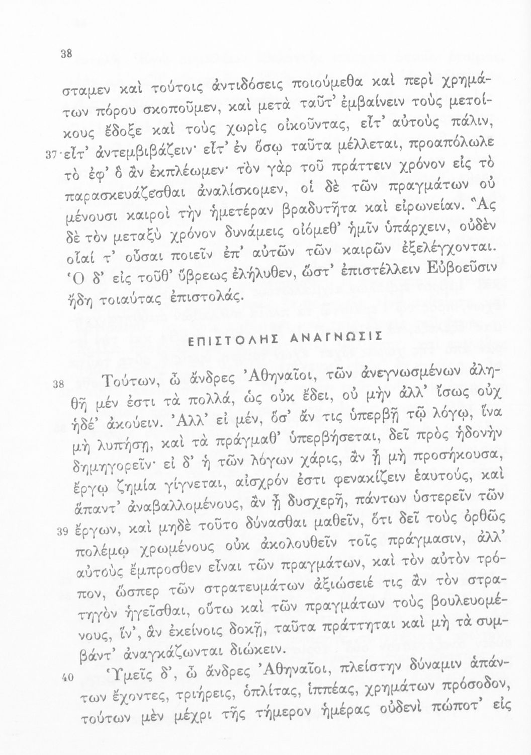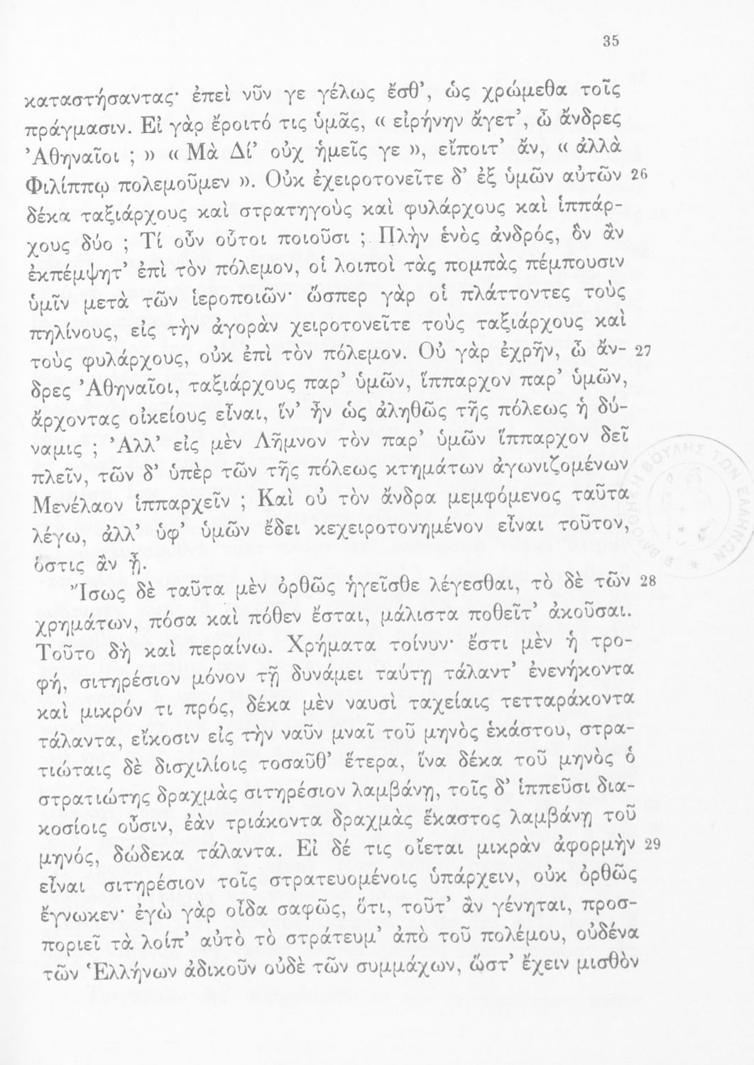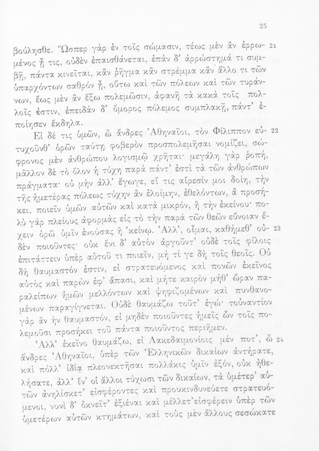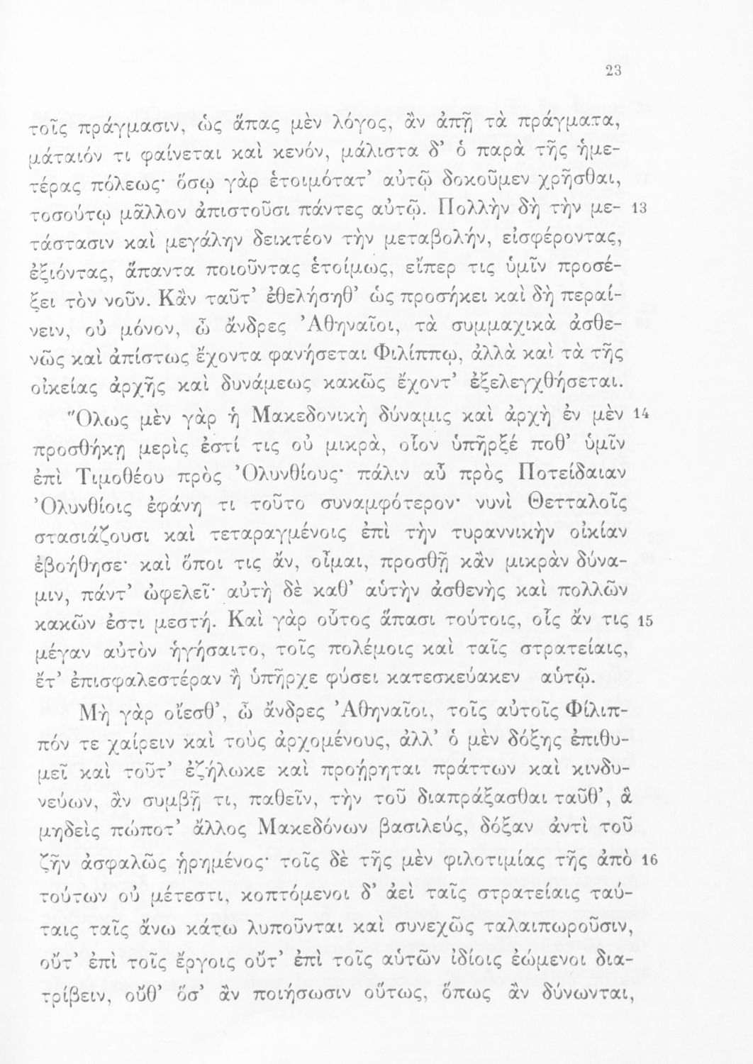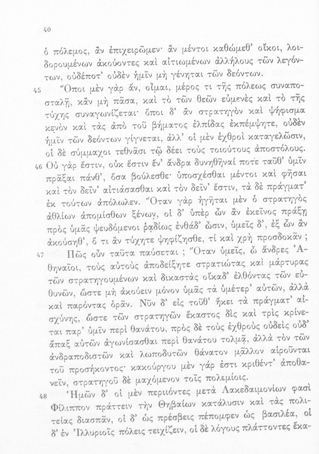 Σχολικό εγχειρίδιο Αρχαίων Ελληνικών Δ' Γυμνασίου που περιλαμβάνει τους Ολυνθιακούς Α΄ και Β΄ και τους Φιλιππικούς Α΄ και Β' του Δημοσθένη και ερμηνευτικές και λεξιλογικές σημειώσεις.