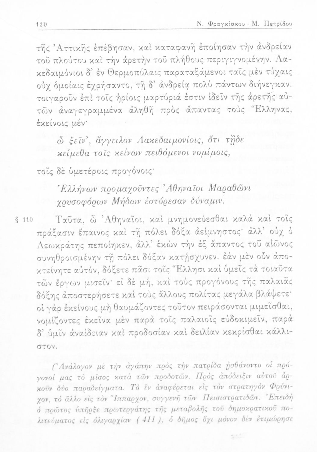 Λυκούργος, Ισοκράτης, Νικ. Εμμ. Φραγκίσκος (σχόλια)