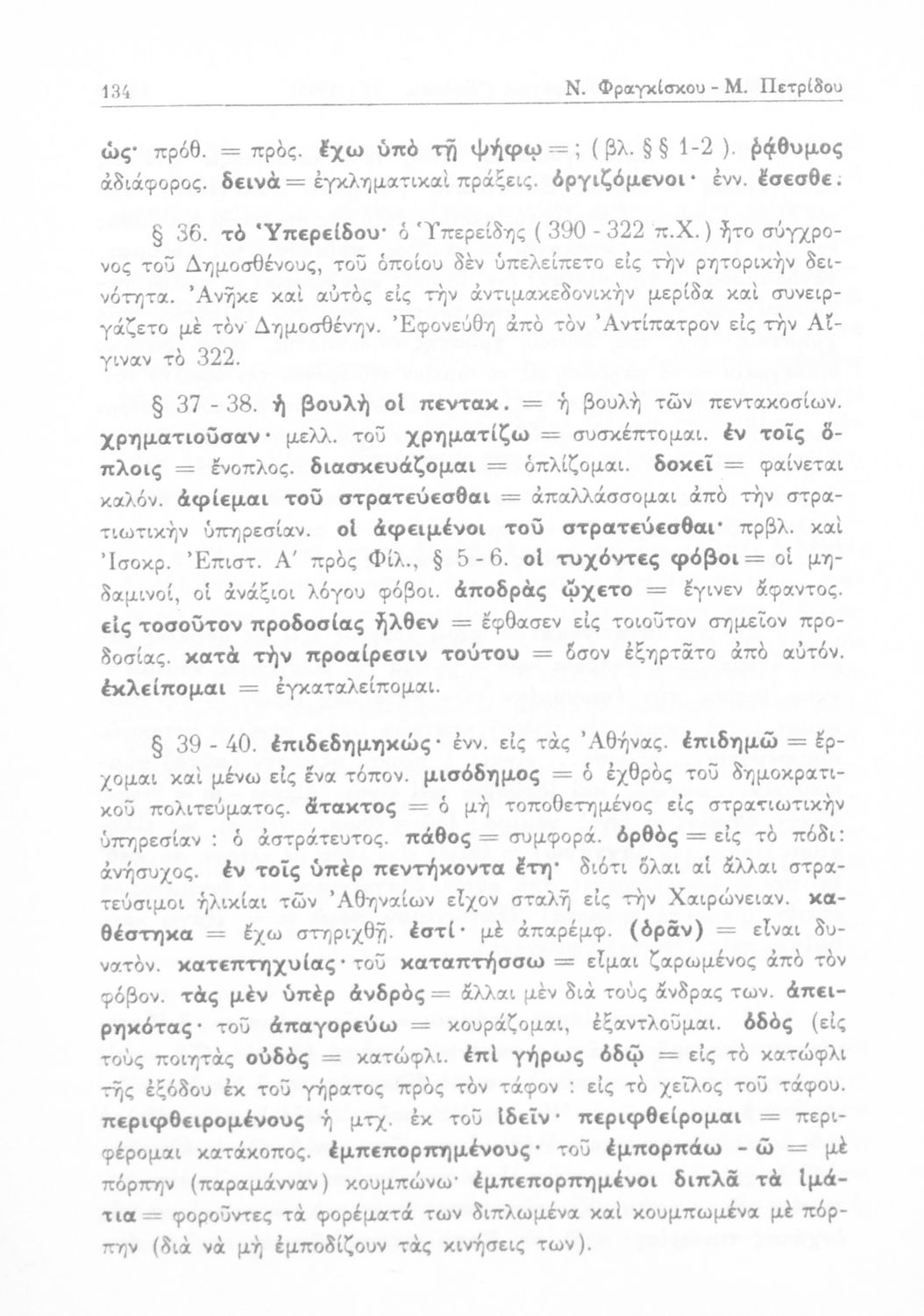 Δημοσθένης, Λυκούργος, Ισοκράτης, Κυριάκος Κοσμάς, Νικ. Φραγκίσκος, Μιχ. Περίδης, Γ. Παπαοικονόμου (σχόλια)