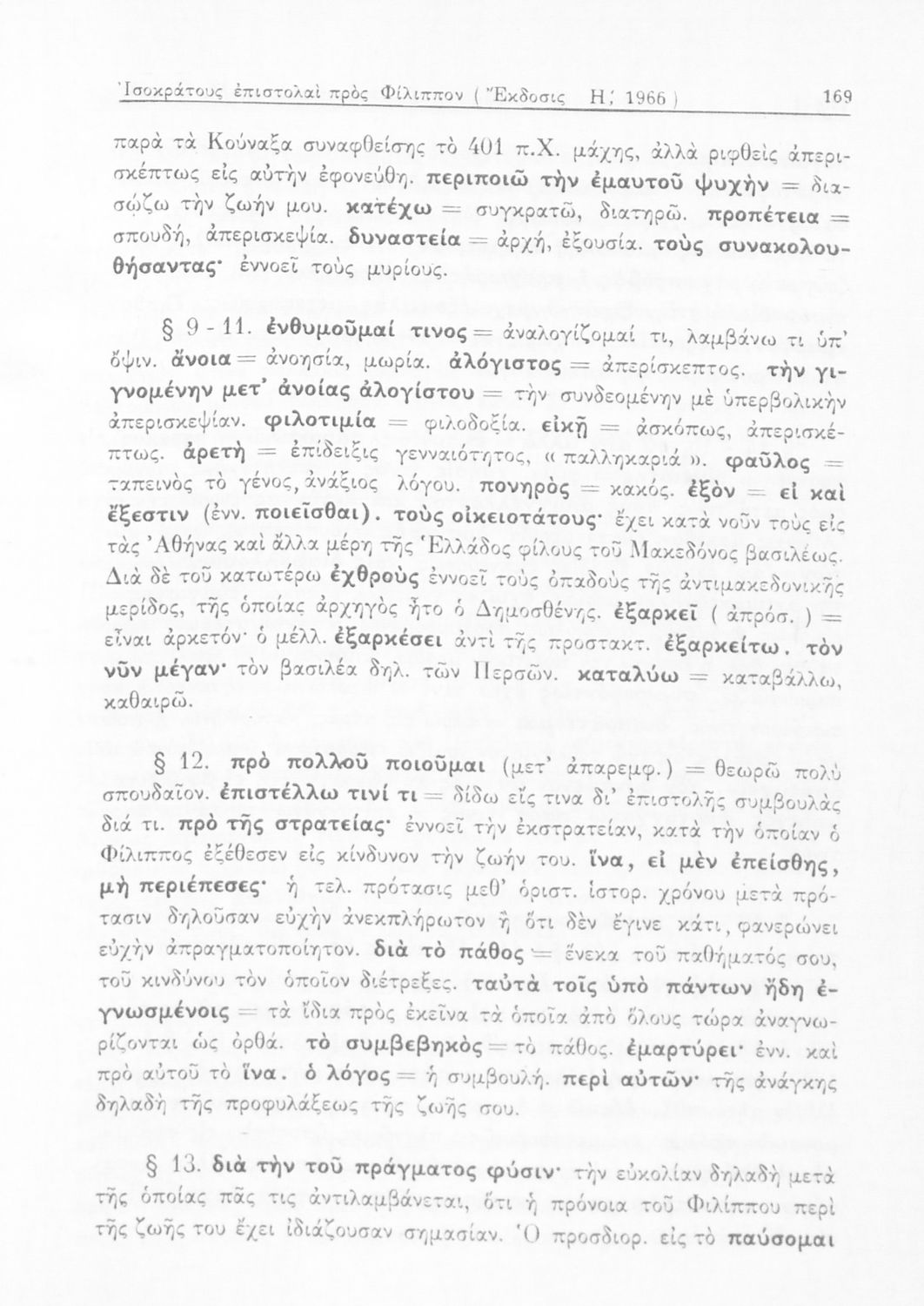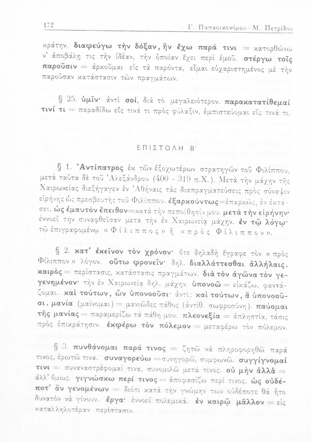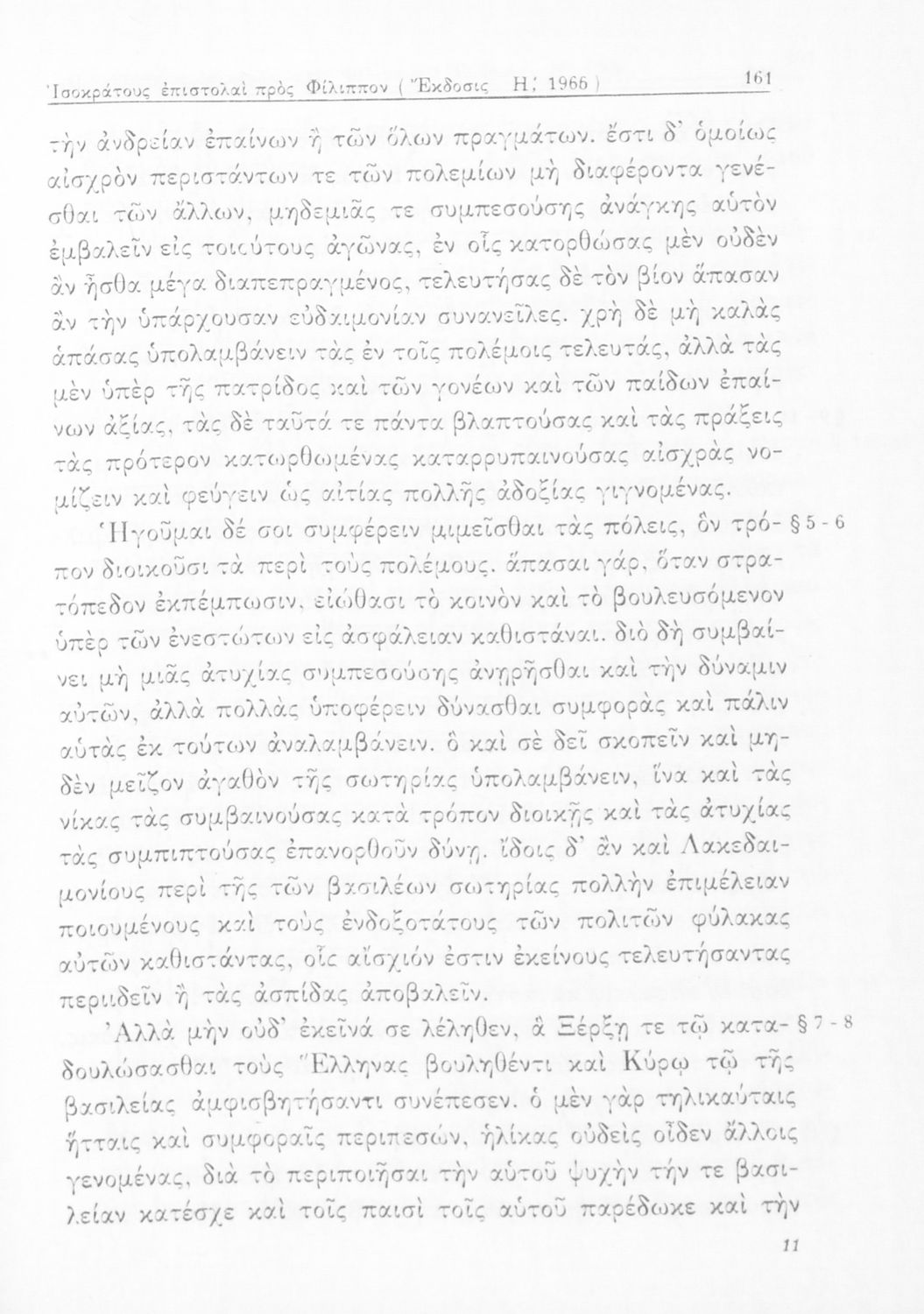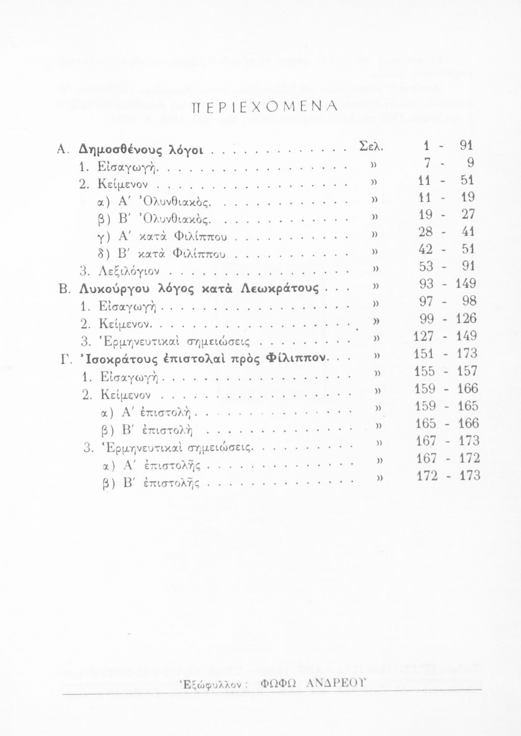 Σχολικό εγχειρίδιο Αρχαίων Ελληνικών Α΄ Λυκείου που περιέχει τους Ολυνθιακούς Α΄ και Β΄ και τους Φιλιππικούς Α΄ και Β΄ του Δημοσθένη, το Λόγο κατά Λεωκράτους του Λυκούργου και τις Επιστολές προς Φίλιππο του Ισοκράτη, και ερμηνευτικά και ετυμολογικά σχόλια.