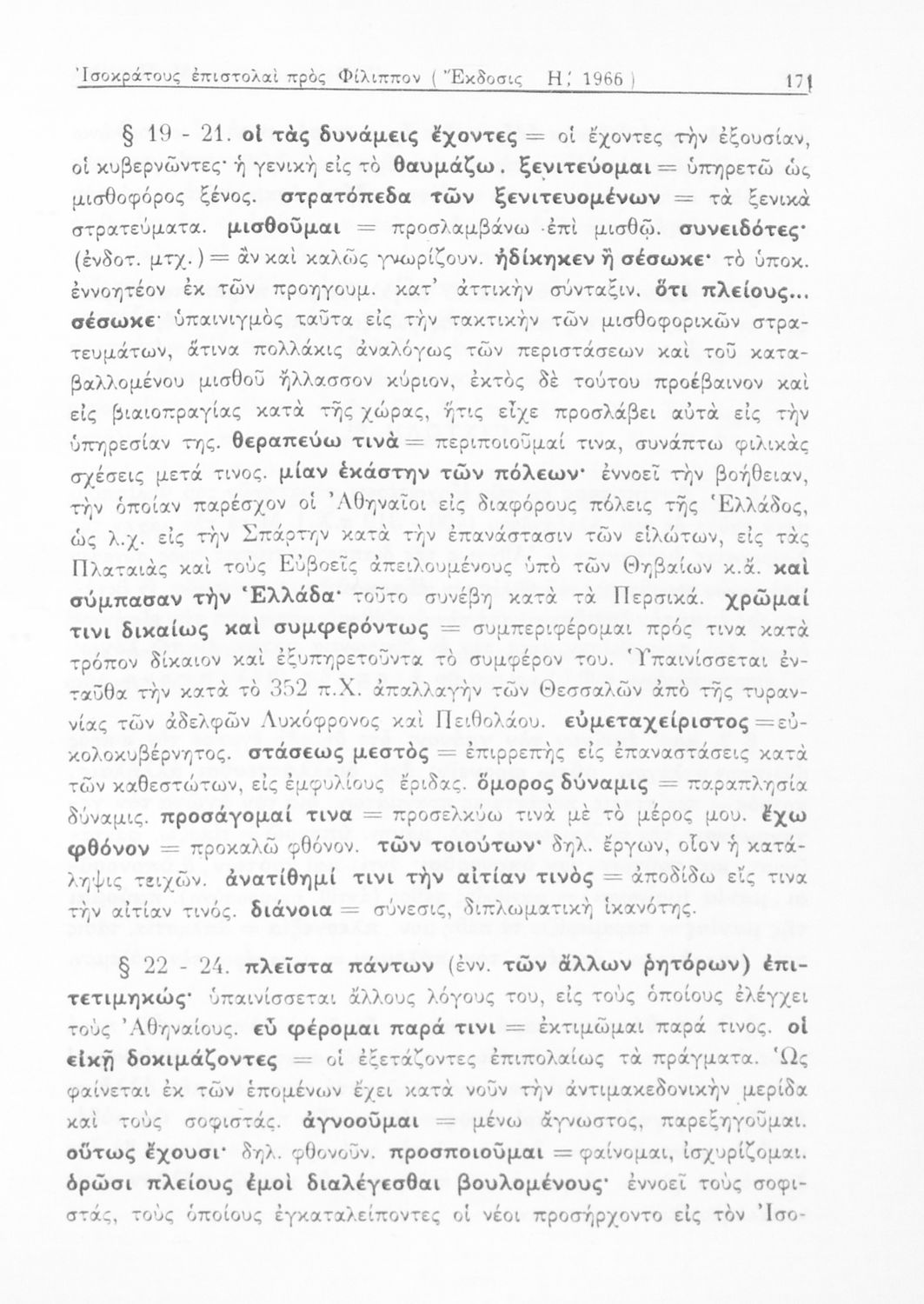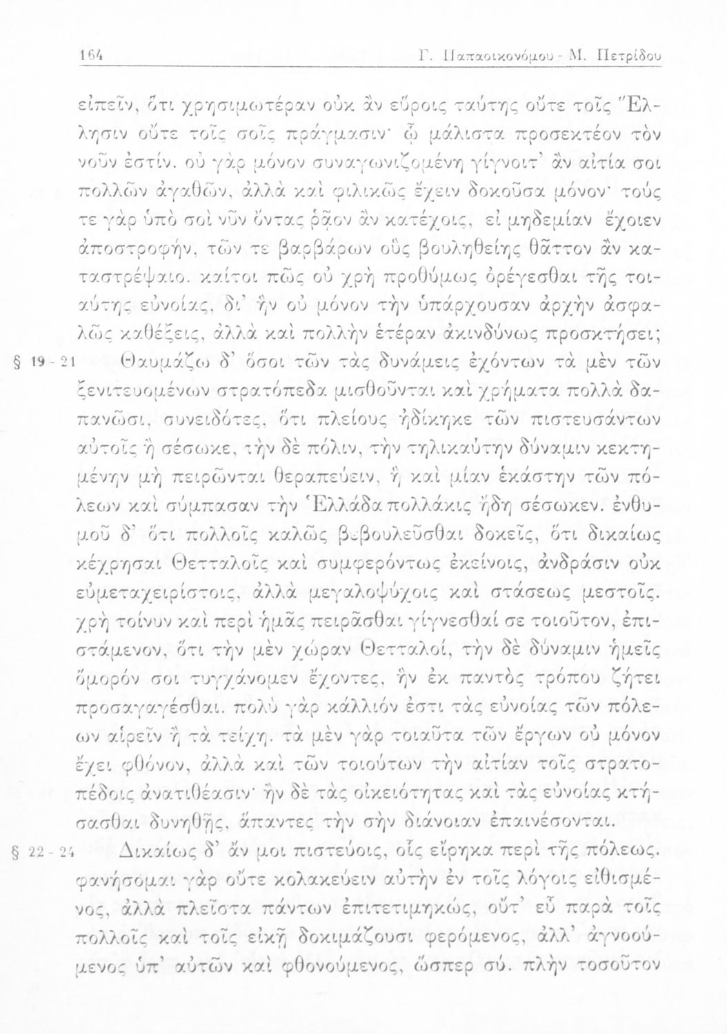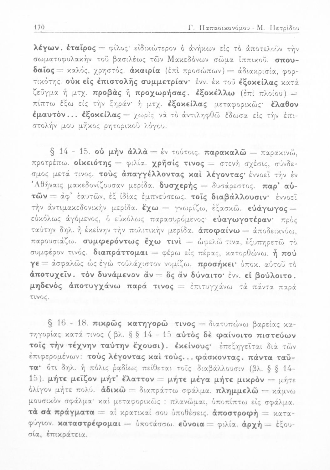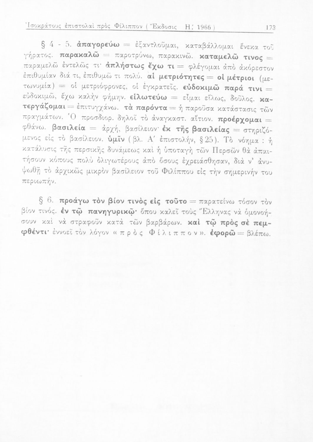 Σχολικό εγχειρίδιο Αρχαίων Ελληνικών Α΄ Λυκείου που περιέχει τους Ολυνθιακούς Α΄ και Β΄ και τους Φιλιππικούς Α΄ και Β΄ του Δημοσθένη, το Λόγο κατά Λεωκράτους του Λυκούργου και τις Επιστολές προς Φίλιππο του Ισοκράτη, και ερμηνευτικά και ετυμολογικά σχόλια.