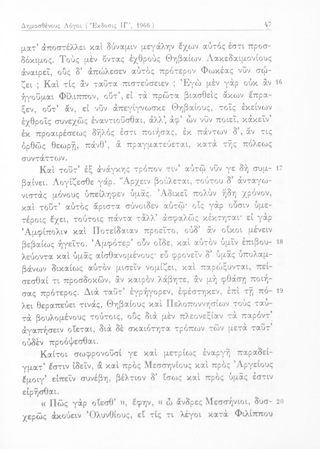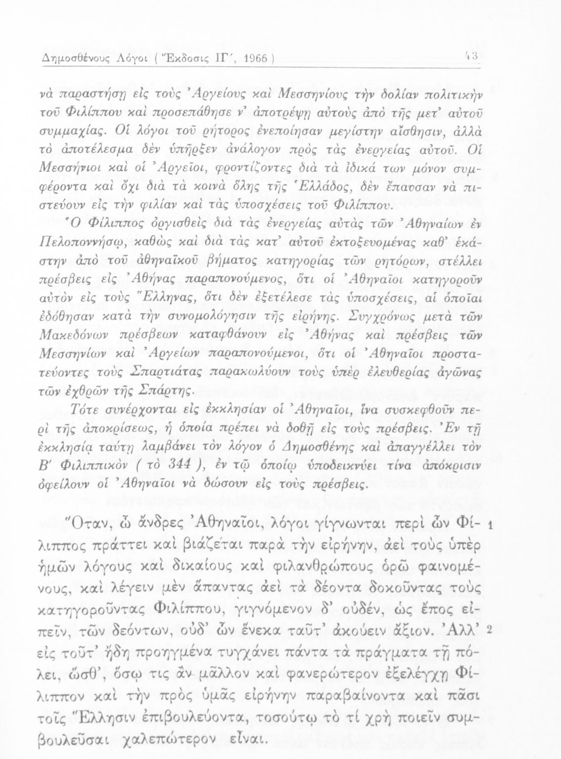Σχολικό εγχειρίδιο Αρχαίων Ελληνικών Α΄ Λυκείου που περιέχει τους Ολυνθιακούς Α΄ και Β΄ και τους Φιλιππικούς Α΄ και Β΄ του Δημοσθένη, το Λόγο κατά Λεωκράτους του Λυκούργου και τις Επιστολές προς Φίλιππο του Ισοκράτη, και ερμηνευτικά και ετυμολογικά σχόλια.
