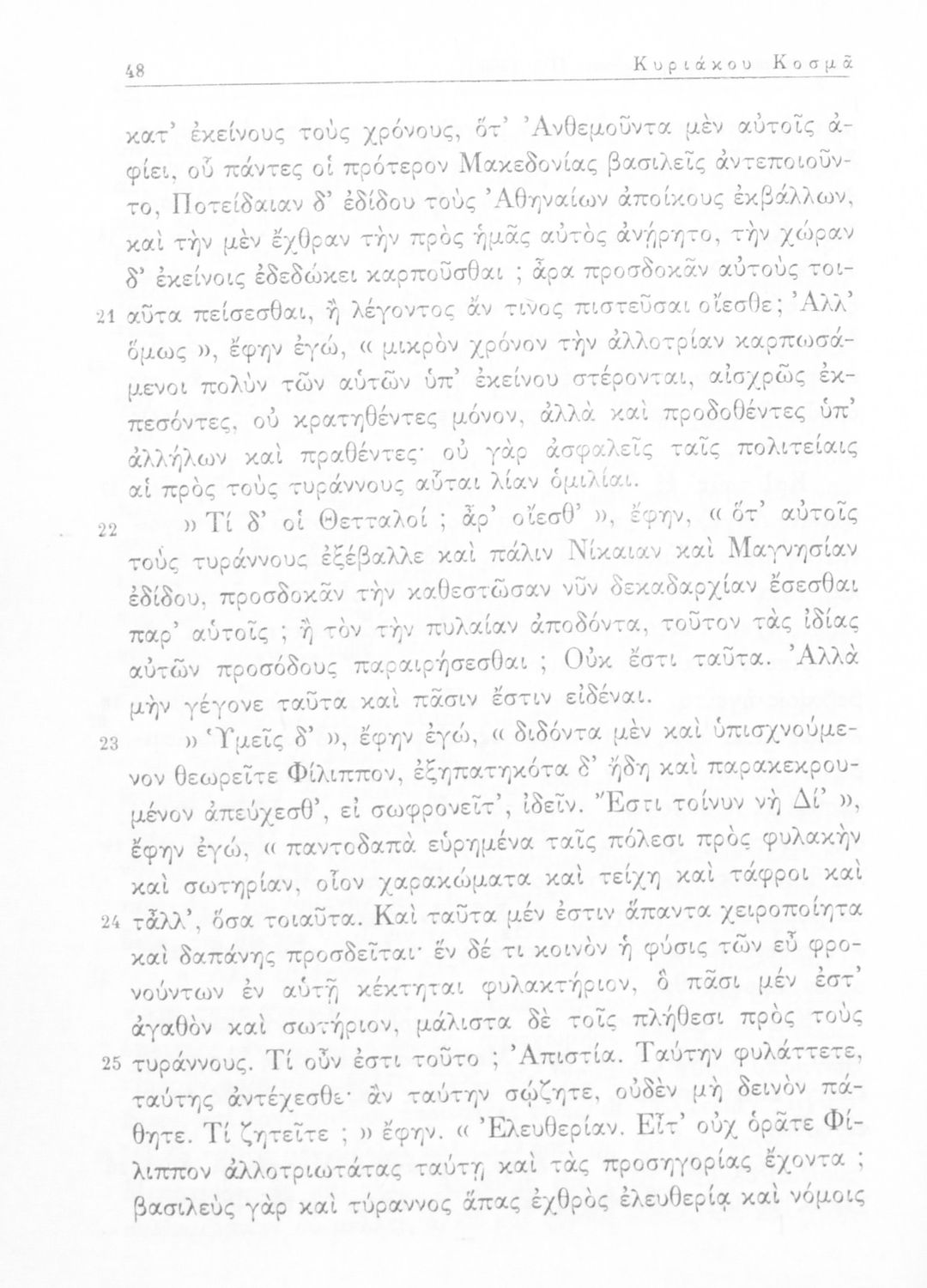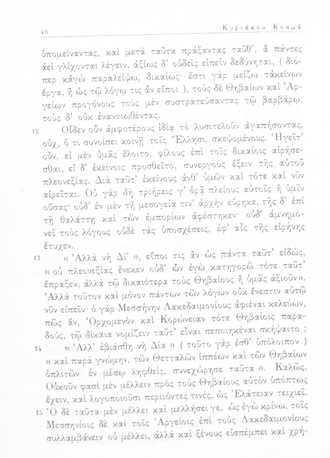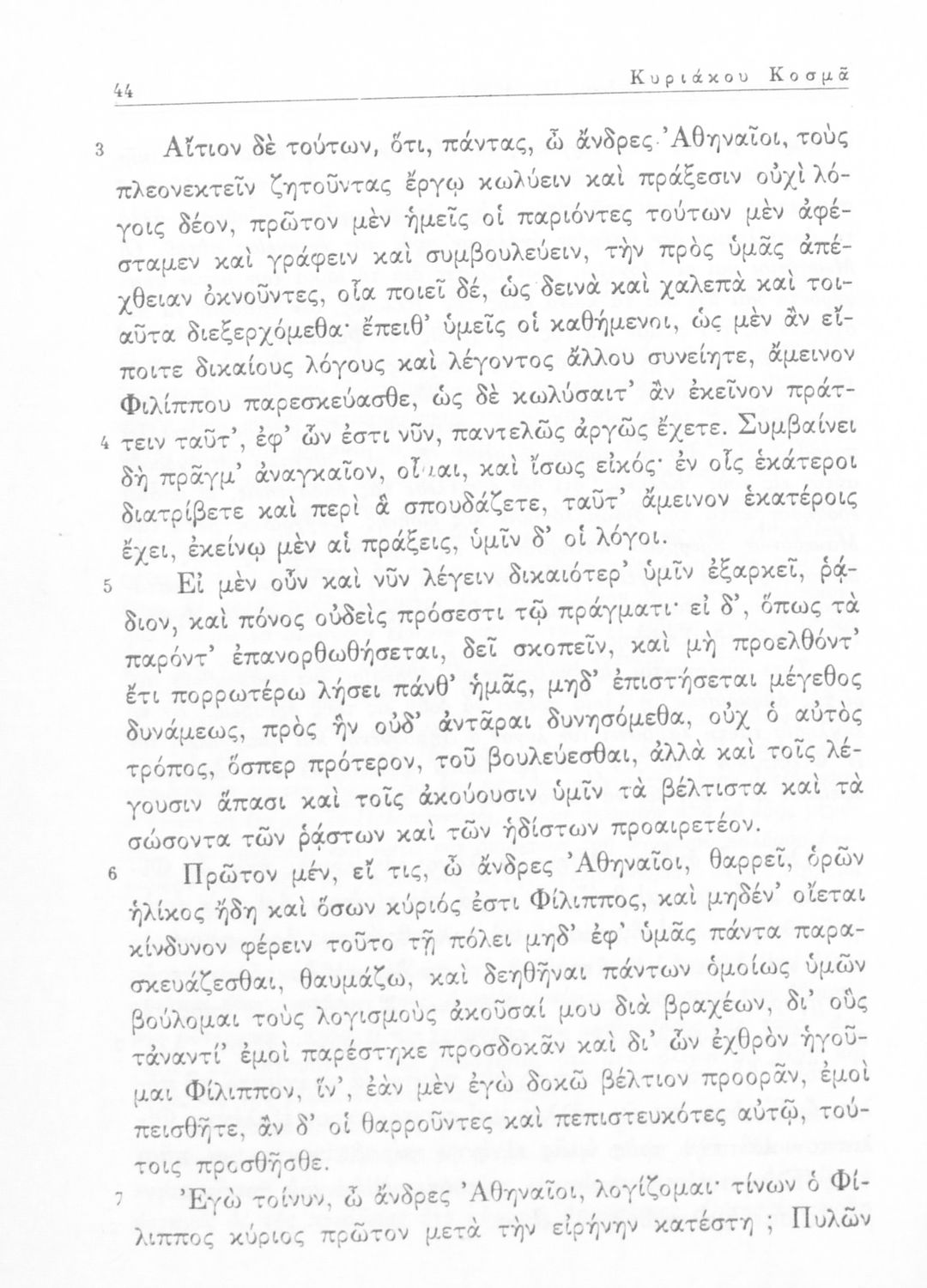 Δημοσθένης, Λυκούργος, Ισοκράτης, Κυριάκος Κοσμάς, Νικ. Φραγκίσκος, Μιχ. Περίδης, Γ. Παπαοικονόμου (σχόλια)