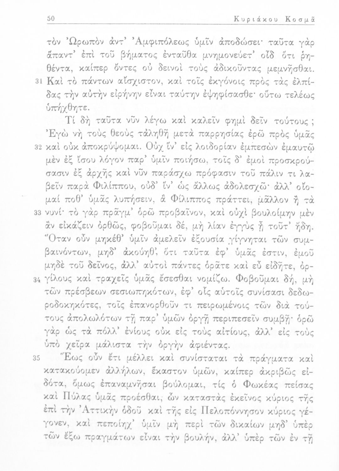 Δημοσθένης, Κυριάκος Κοσμάς, Νικ. Φραγκίσκος, Μιχ. Περίδης, Γ. Παπαοικονόμου, Μιχ Πετρίδης (σχόλια)