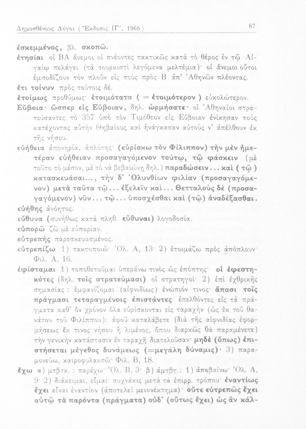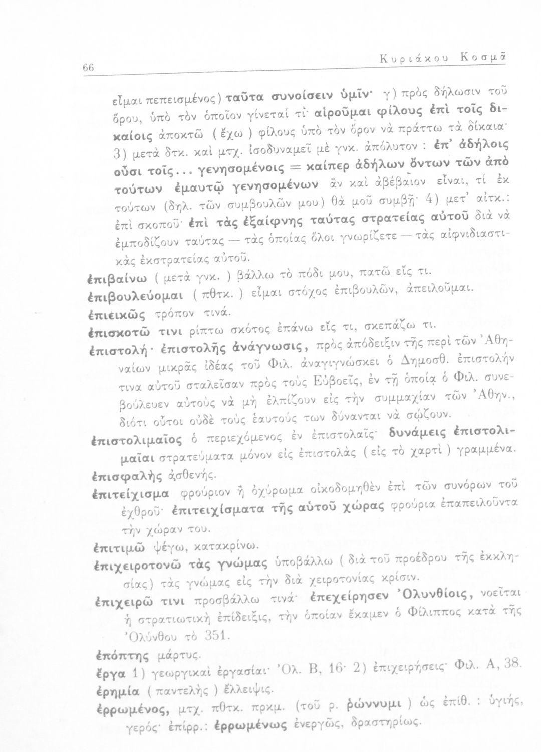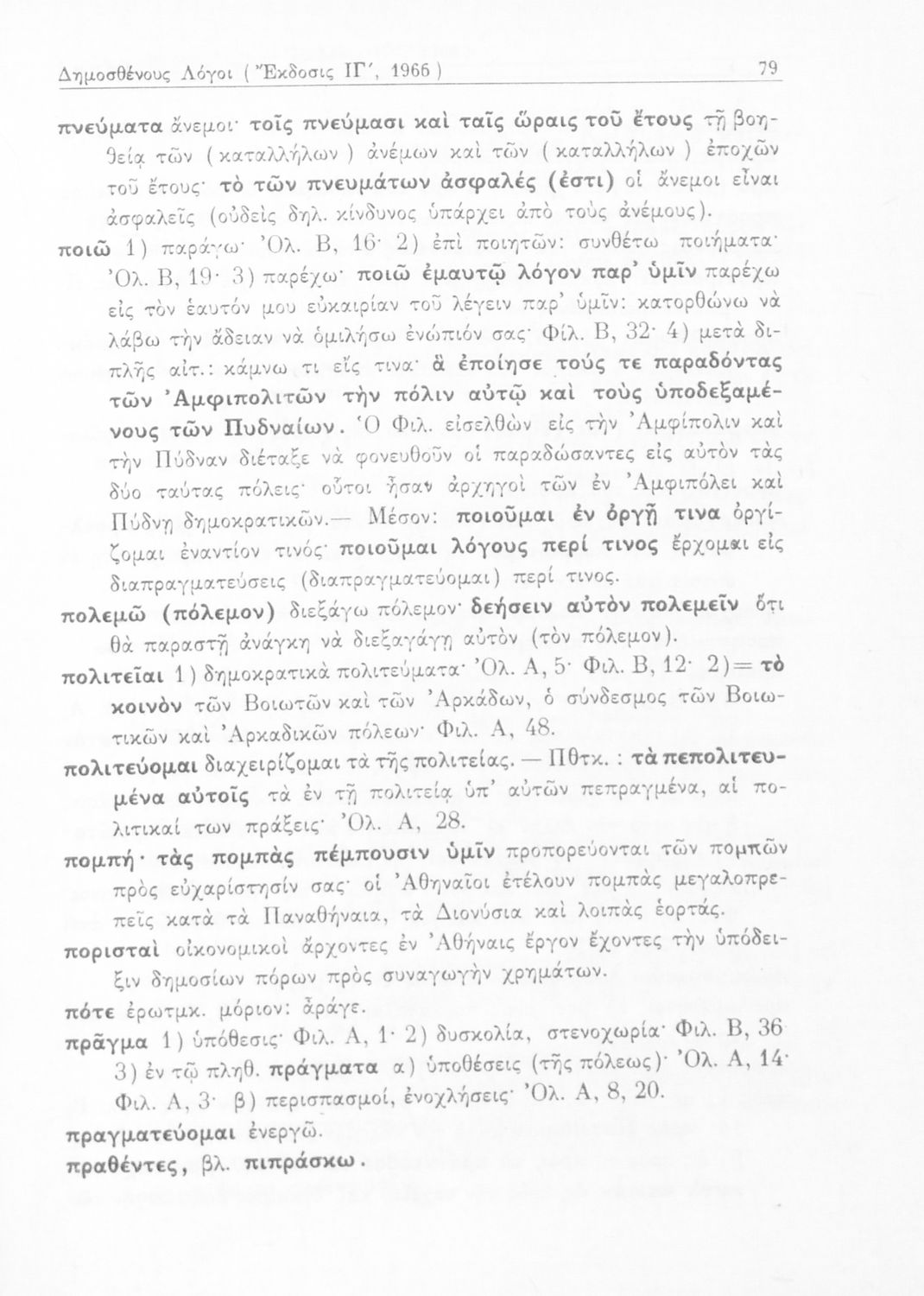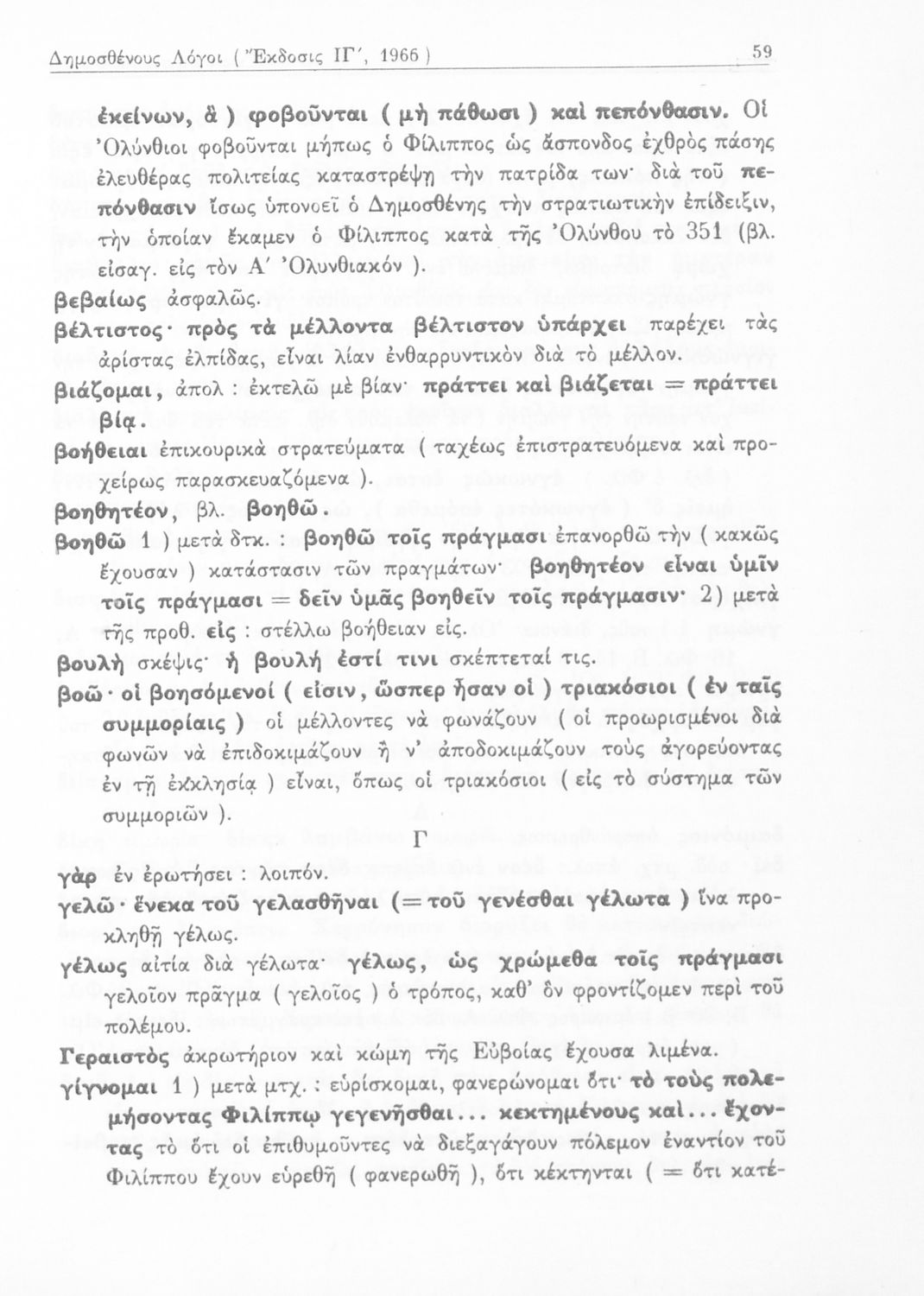 Σχολικό εγχειρίδιο Αρχαίων Ελληνικών Α΄ Λυκείου που περιέχει τους Ολυνθιακούς Α΄ και Β΄ και τους Φιλιππικούς Α΄ και Β΄ του Δημοσθένη, το Λόγο κατά Λεωκράτους του Λυκούργου και τις Επιστολές προς Φίλιππο του Ισοκράτη, και ερμηνευτικά και ετυμολογικά σχόλια.