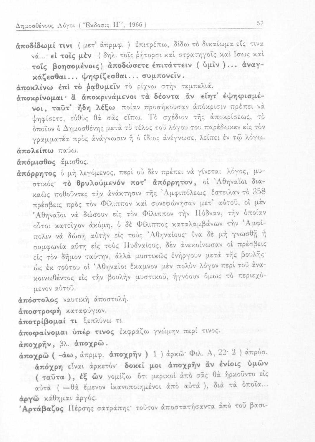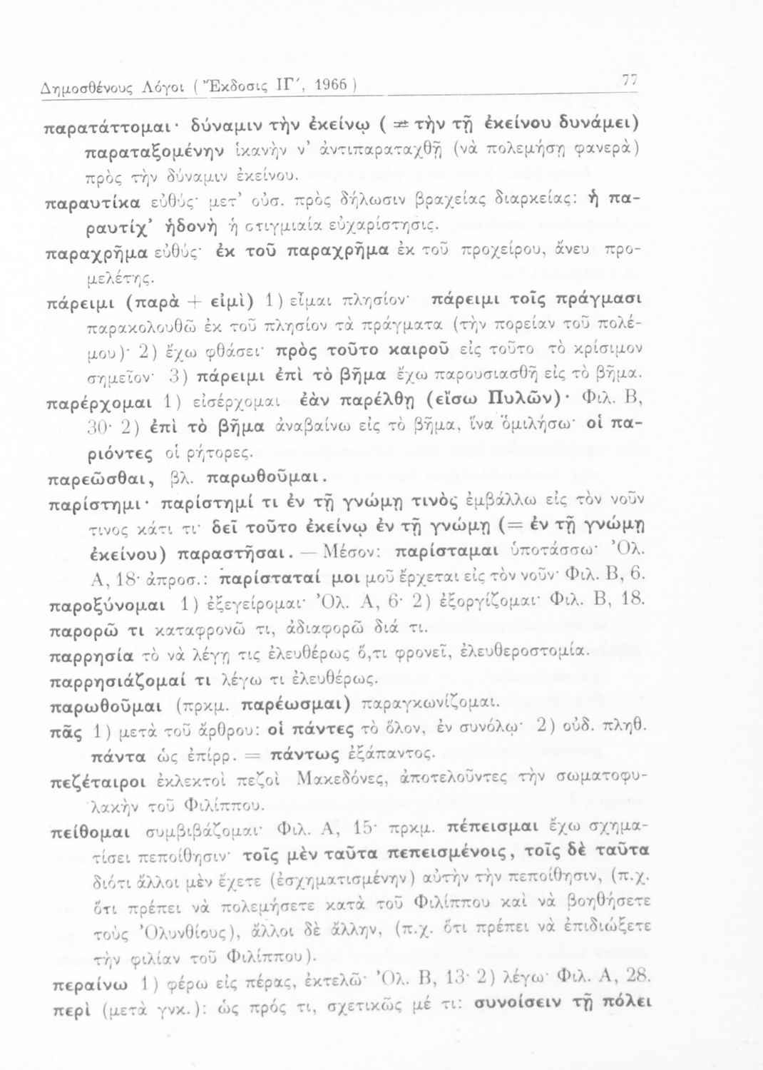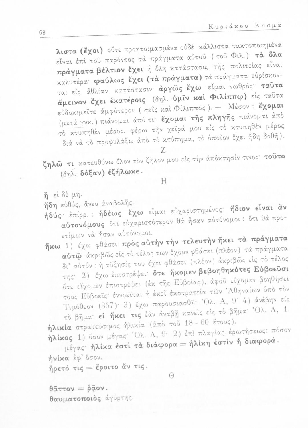 Σχολικό εγχειρίδιο Αρχαίων Ελληνικών Α΄ Λυκείου που περιέχει τους Ολυνθιακούς Α΄ και Β΄ και τους Φιλιππικούς Α΄ και Β΄ του Δημοσθένη, το Λόγο κατά Λεωκράτους του Λυκούργου και τις Επιστολές προς Φίλιππο του Ισοκράτη, και ερμηνευτικά και ετυμολογικά σχόλια.