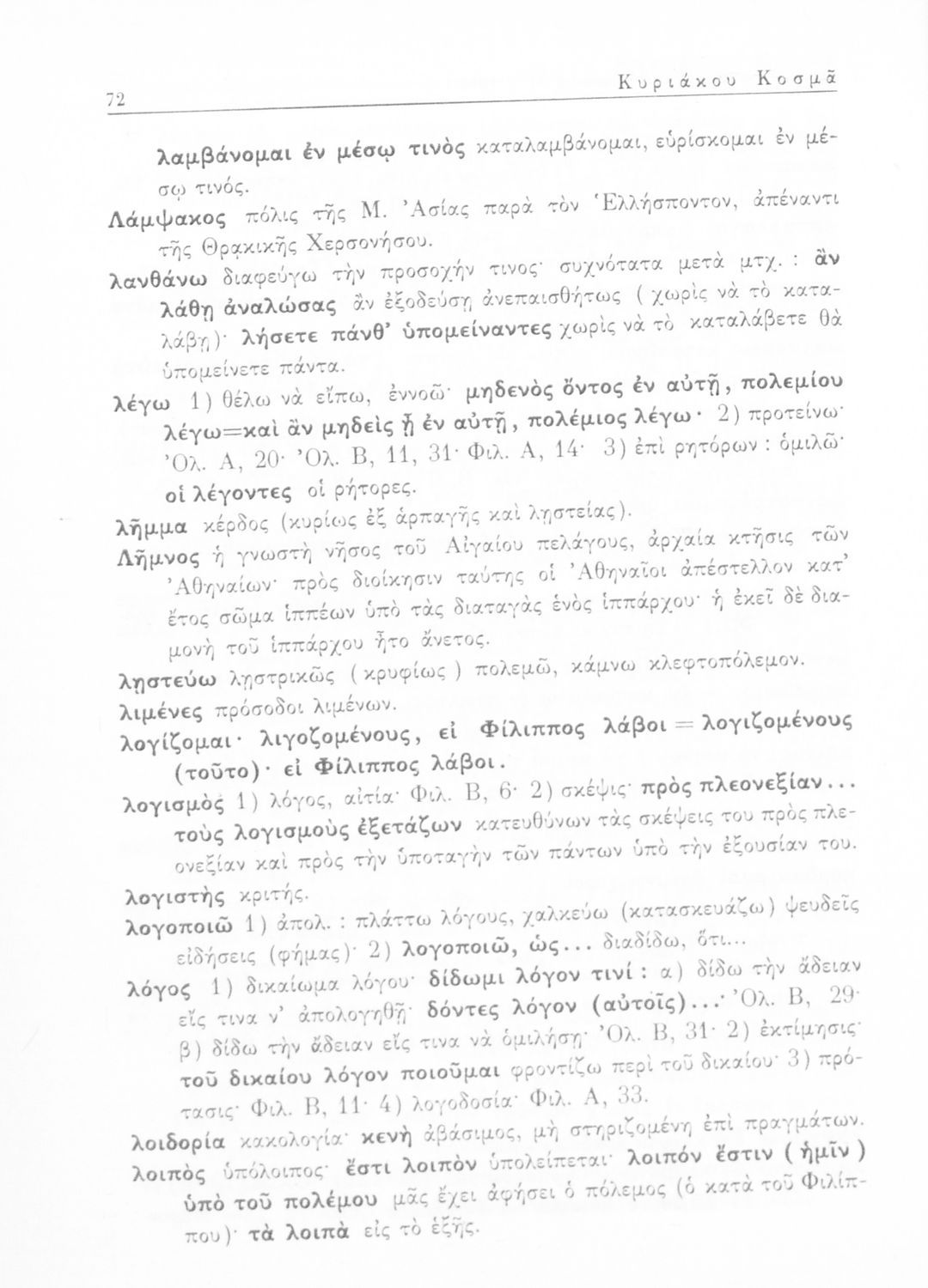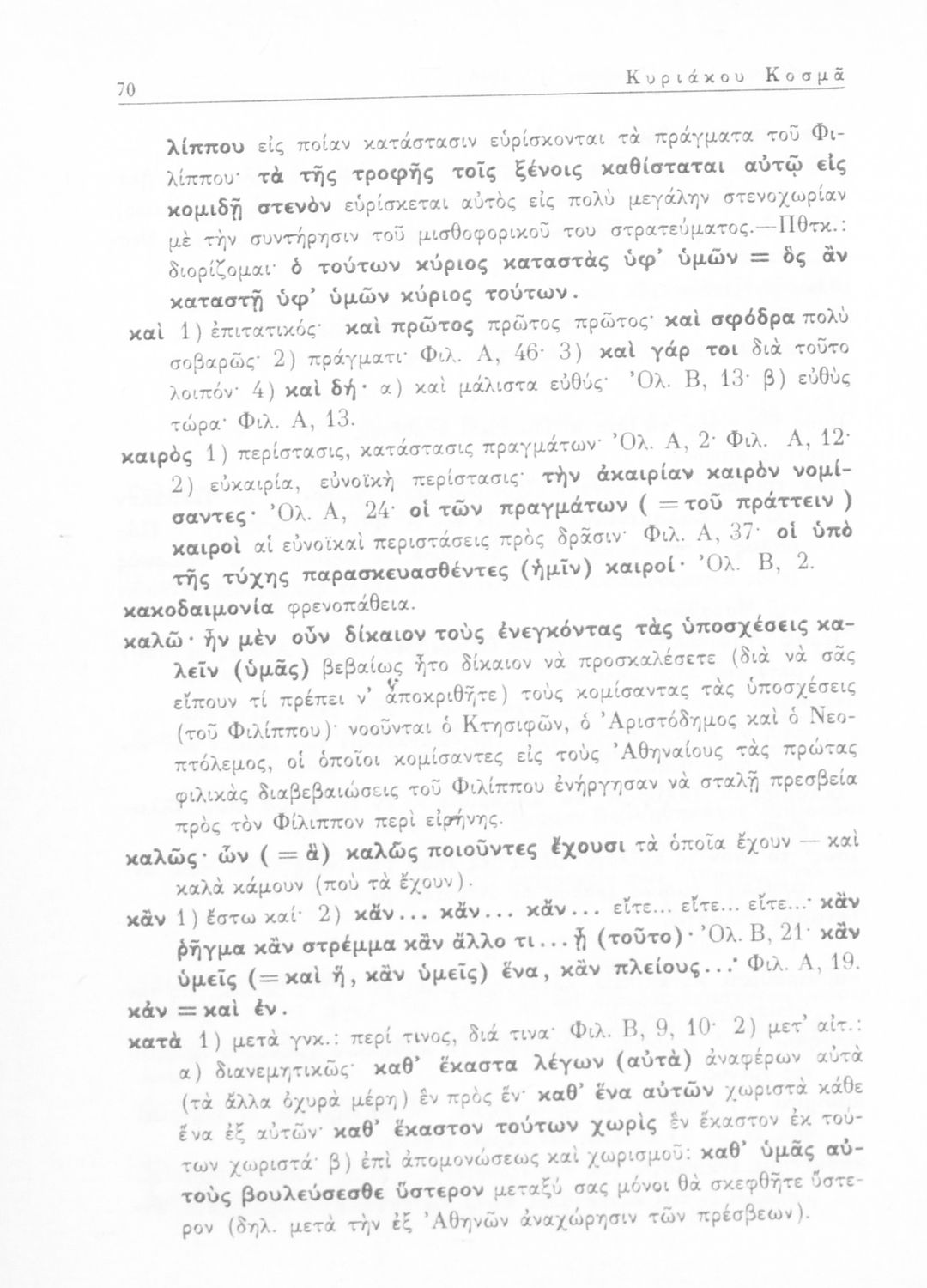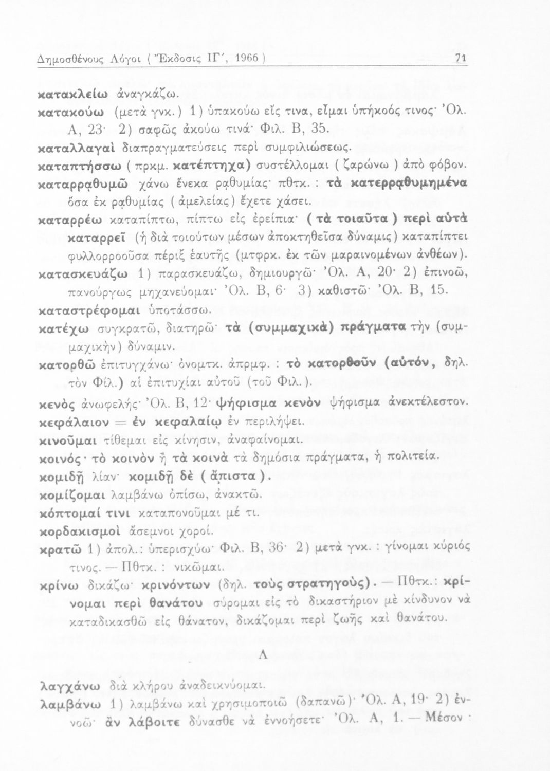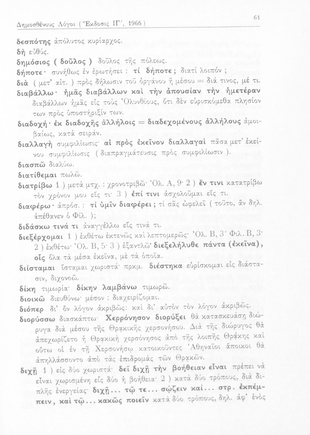 Σχολικό εγχειρίδιο Αρχαίων Ελληνικών Α΄ Λυκείου που περιέχει τους Ολυνθιακούς Α΄ και Β΄ και τους Φιλιππικούς Α΄ και Β΄ του Δημοσθένη, το Λόγο κατά Λεωκράτους του Λυκούργου και τις Επιστολές προς Φίλιππο του Ισοκράτη, και ερμηνευτικά και ετυμολογικά σχόλια.