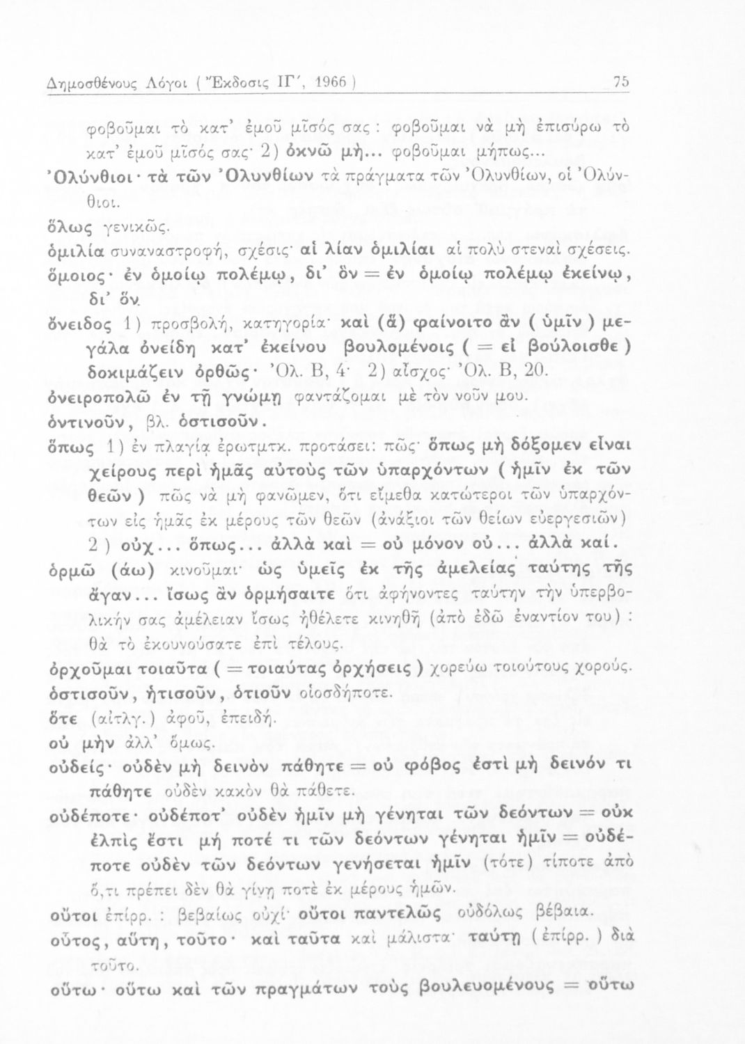 Βαθμίδα εκπαίδευσης: Δευτεροβάθμια Τάξη: Α' Λυκείου Μάθημα: Αρχαία Ελληνικά Γλώσσα: Καθαρεύουσα Παρουσίαση περιεχομένου: Σχολικό εγχειρίδιο Αρχαίων Ελληνικών Α΄ Λυκείου που περιέχει τους Ολυνθιακούς Α΄ και Β΄ και τους Φιλιππικούς Α΄ και Β΄ του Δημοσθένη, το Λόγο κατά Λεωκράτους του Λυκούργου και τις Επιστολές προς Φίλιππο του Ισοκράτη, και ερμηνευτικά και ετυμολογικά σχόλια. |