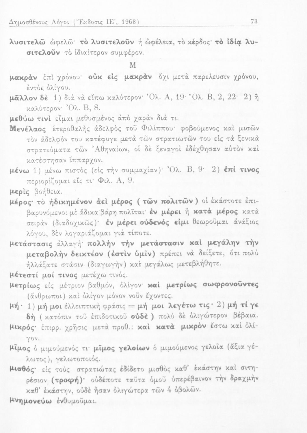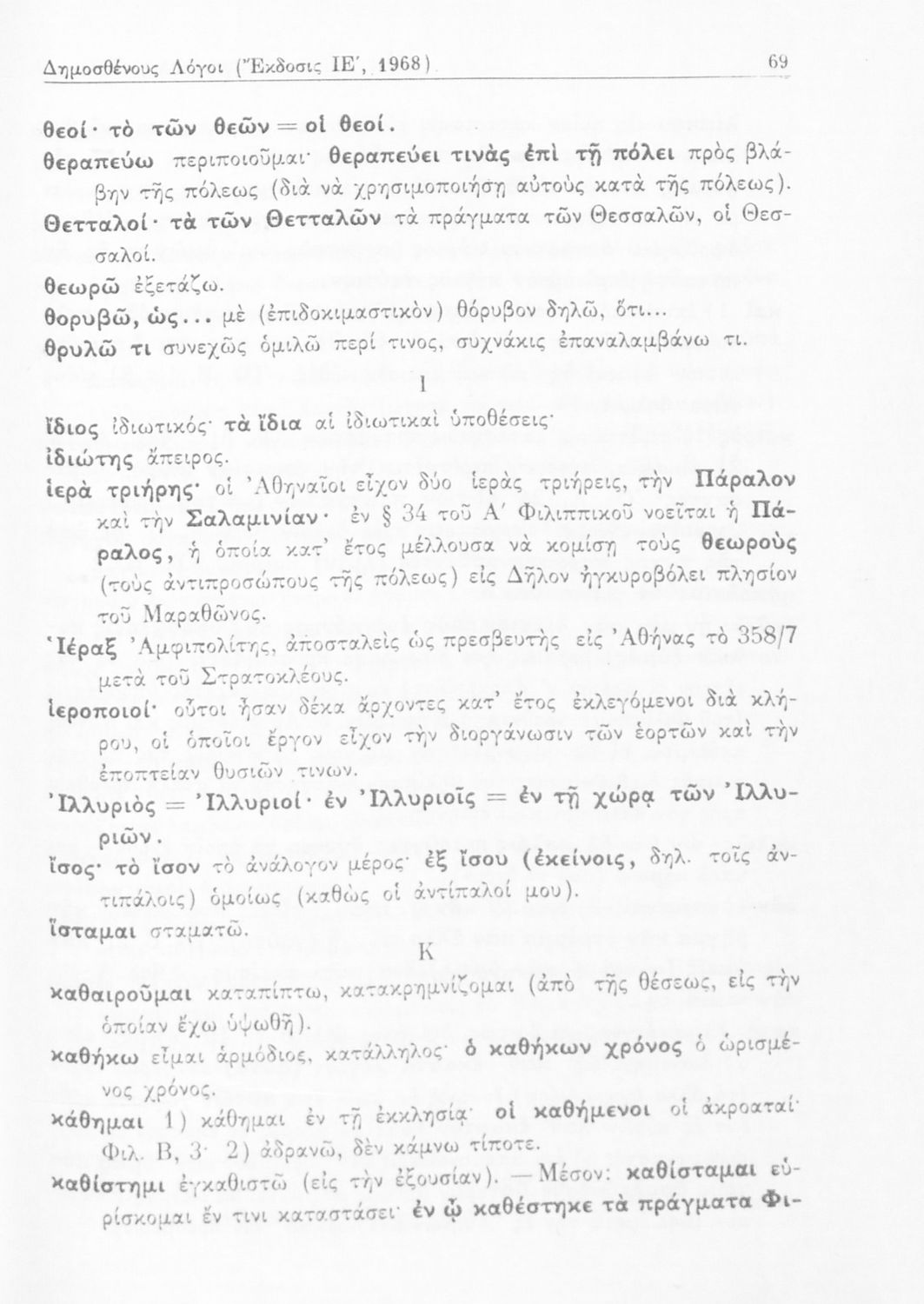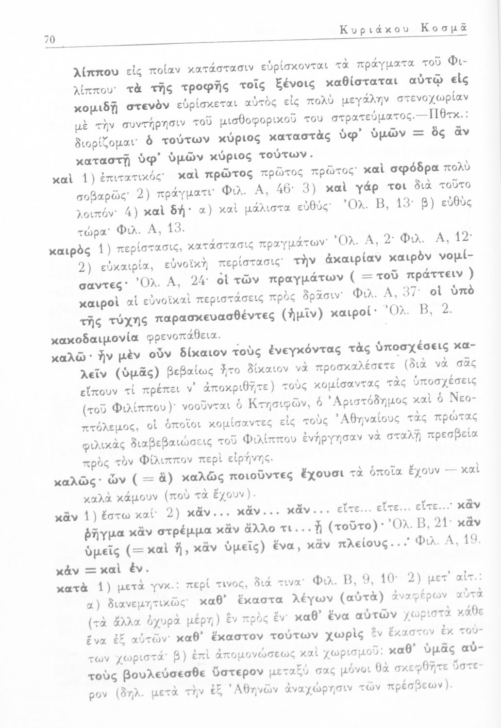 Δημοσθένης, Λυκούργος, Ισοκράτης, Κυριάκος Κοσμάς, Νικ. Φραγκίσκος, Μιχ. Περίδης, Γ. Παπαοικονόμου (σχόλια)