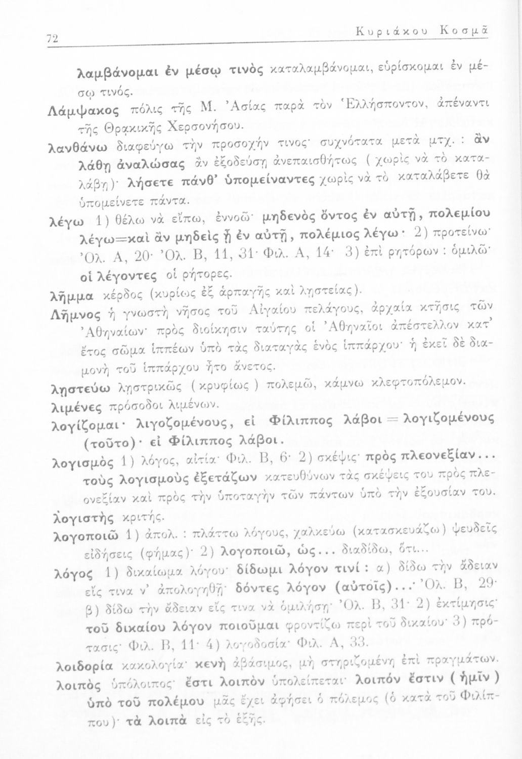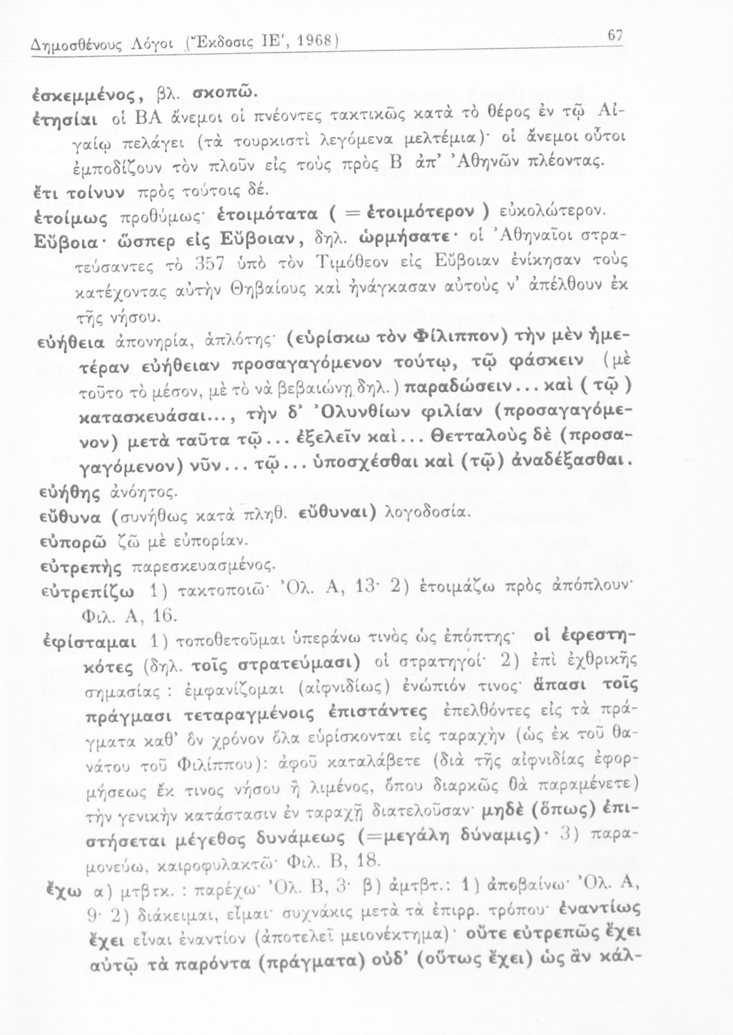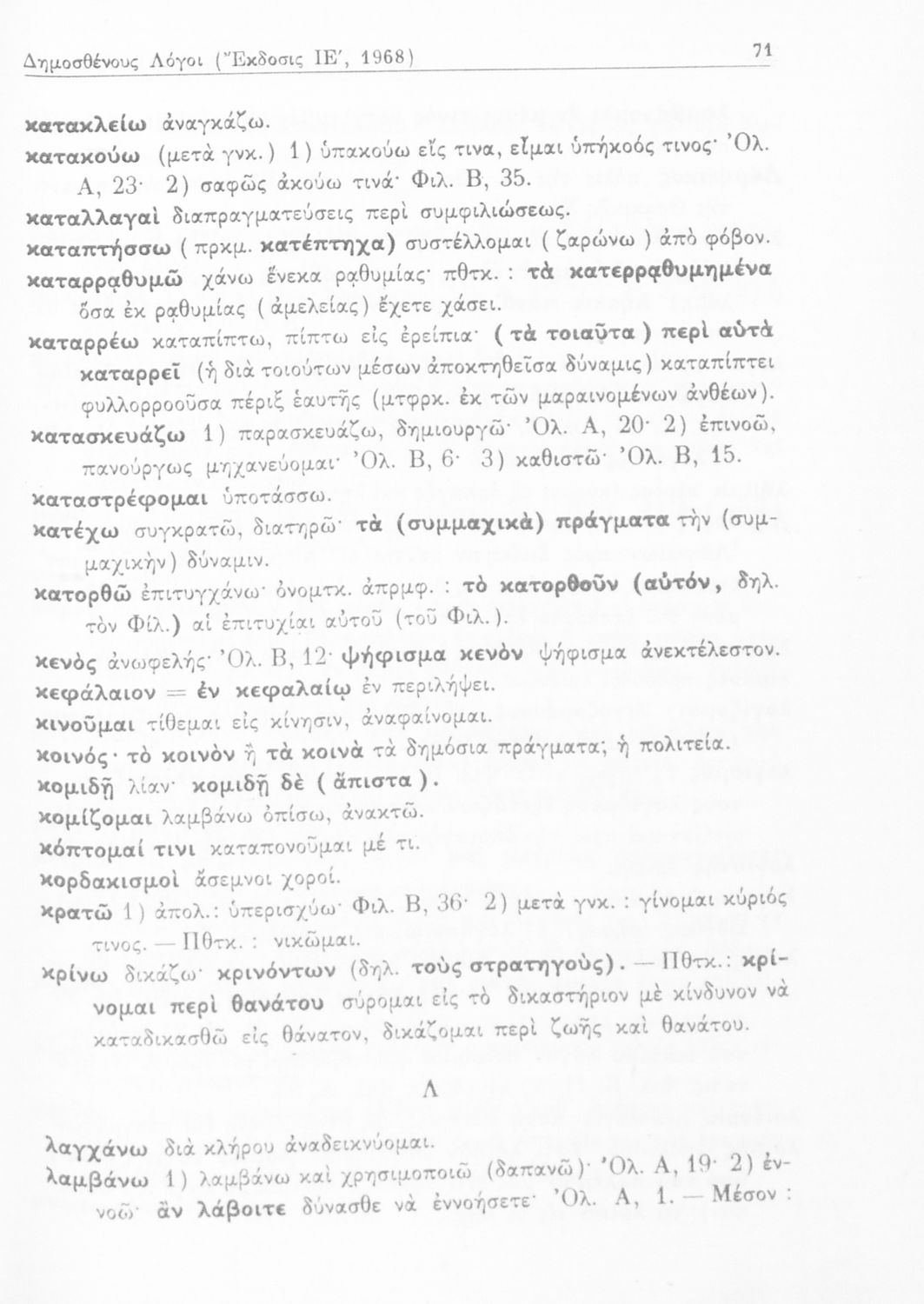 Δημοσθένης, Λυκούργος, Ισοκράτης, Κυριάκος Κοσμάς, Νικ. Φραγκίσκος, Μιχ. Περίδης, Γ. Παπαοικονόμου (σχόλια)