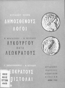 Συγγραφέας: Δημοσθένης, Λυκούργος, Ισοκράτης, Κυριάκος Κοσμάς, Ν. Φραγκίσκος, Μ. Πετρίδης, Γ. Παπαοικονόμου (εισαγωγή, σχόλια)