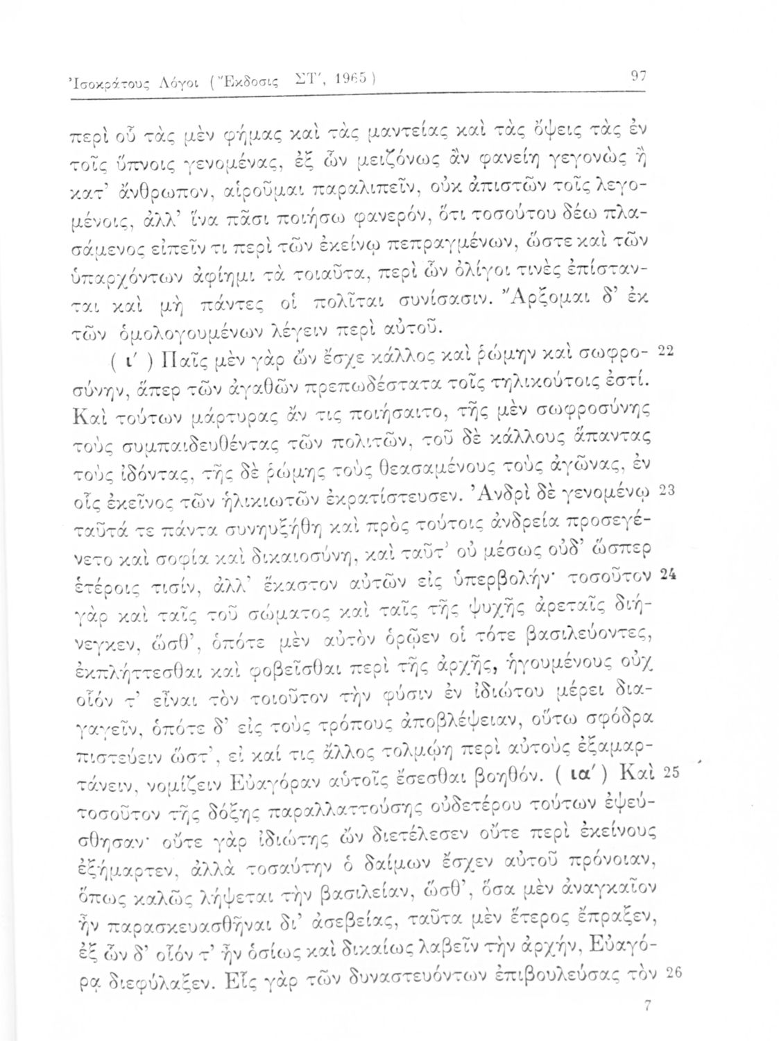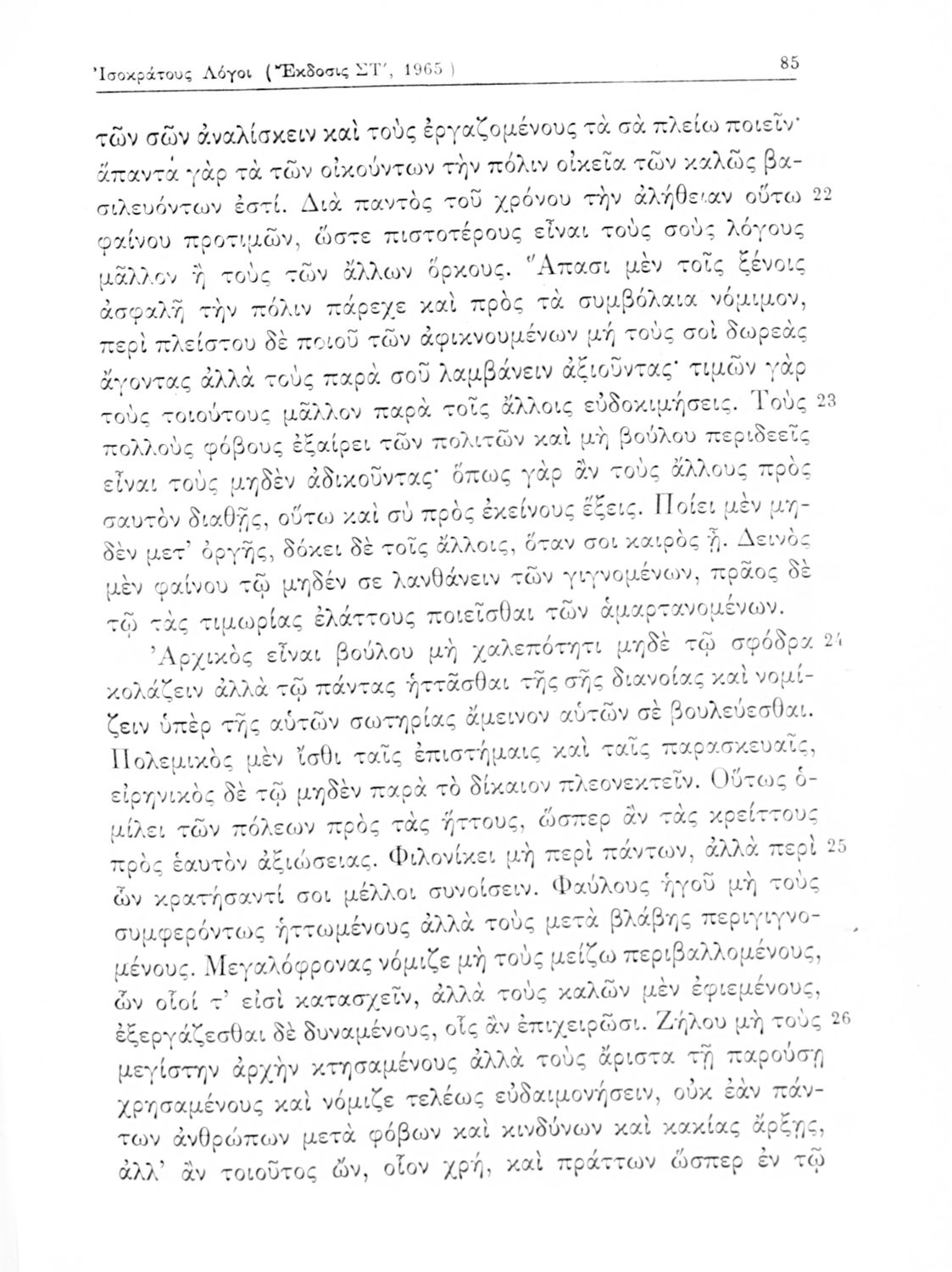 Σχολικό εγχειρίδιο Αρχαίων Ελληνικών που περιλαμβάνει τους Λόγους του Λυσία Περί του σηκού απολογία, Υπέρ του αδυνάτου, Κατά των σιτοπωλών και του Ισοκράτη Προς Δημόνικον, Προς Νικοκλέα και Ευαγόρας, εισαγωγή στους Λόγους και ερμηνευτικά σχόλια.