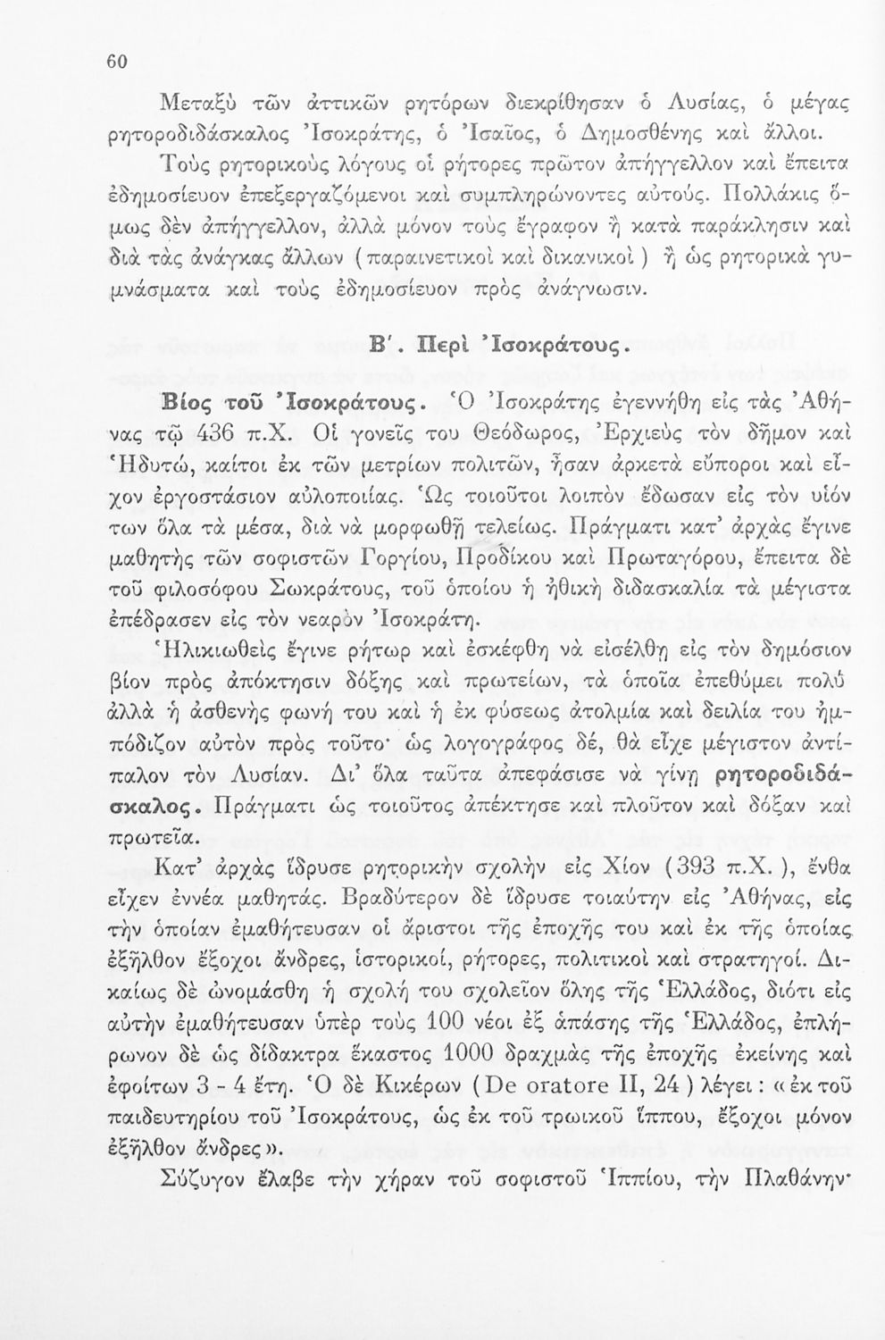 Σχολικό εγχειρίδιο Αρχαίων Ελληνικών Γ΄ Γυμνασίου που περιλαμβάνει σύντομο βιογραφικό σημείωμα του Ισοκράτη, τους Λόγους του Προς Νικοκλέα και Ευαγόρας και ερμηνευτικά και λεξιλογικά σχόλια.