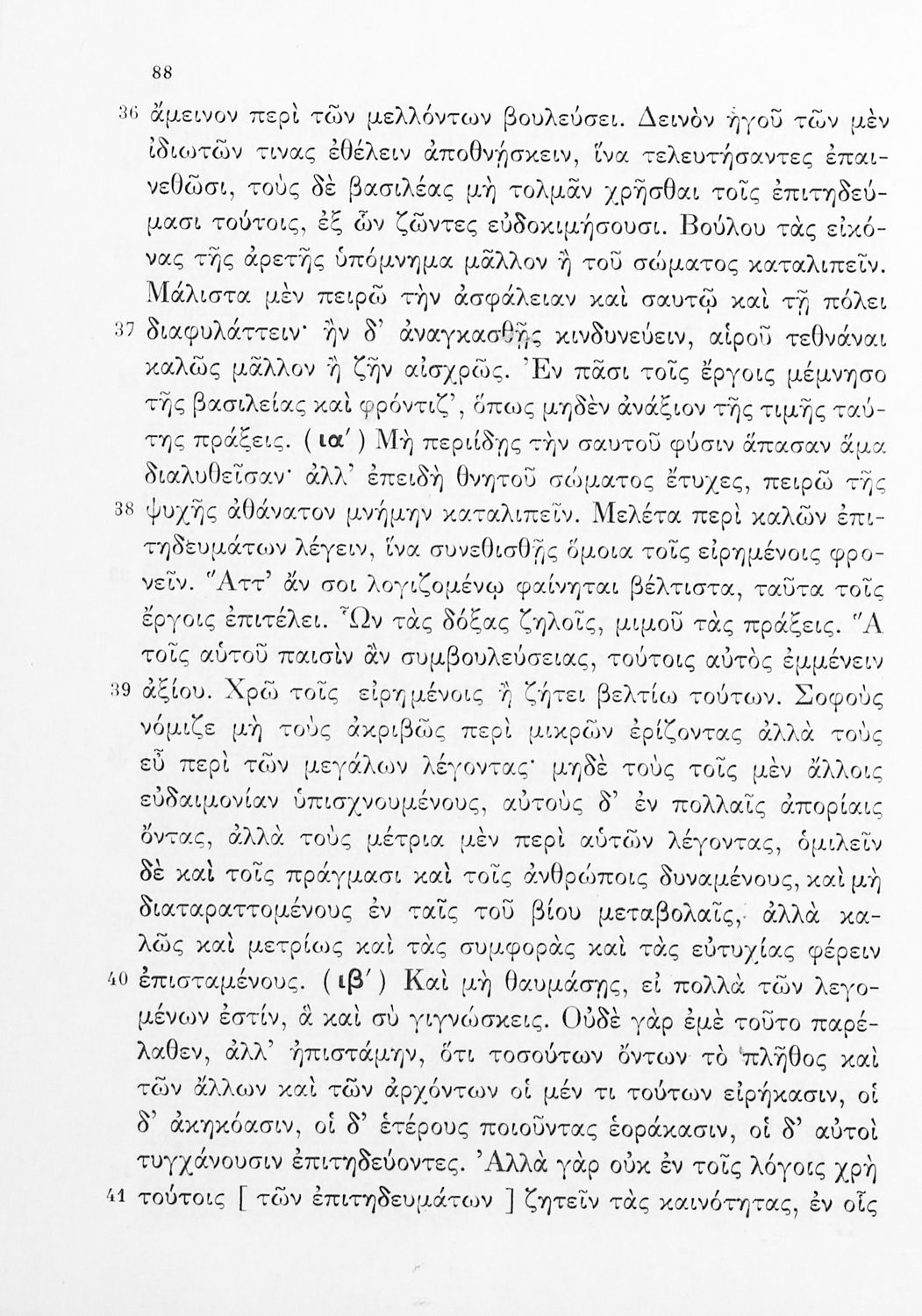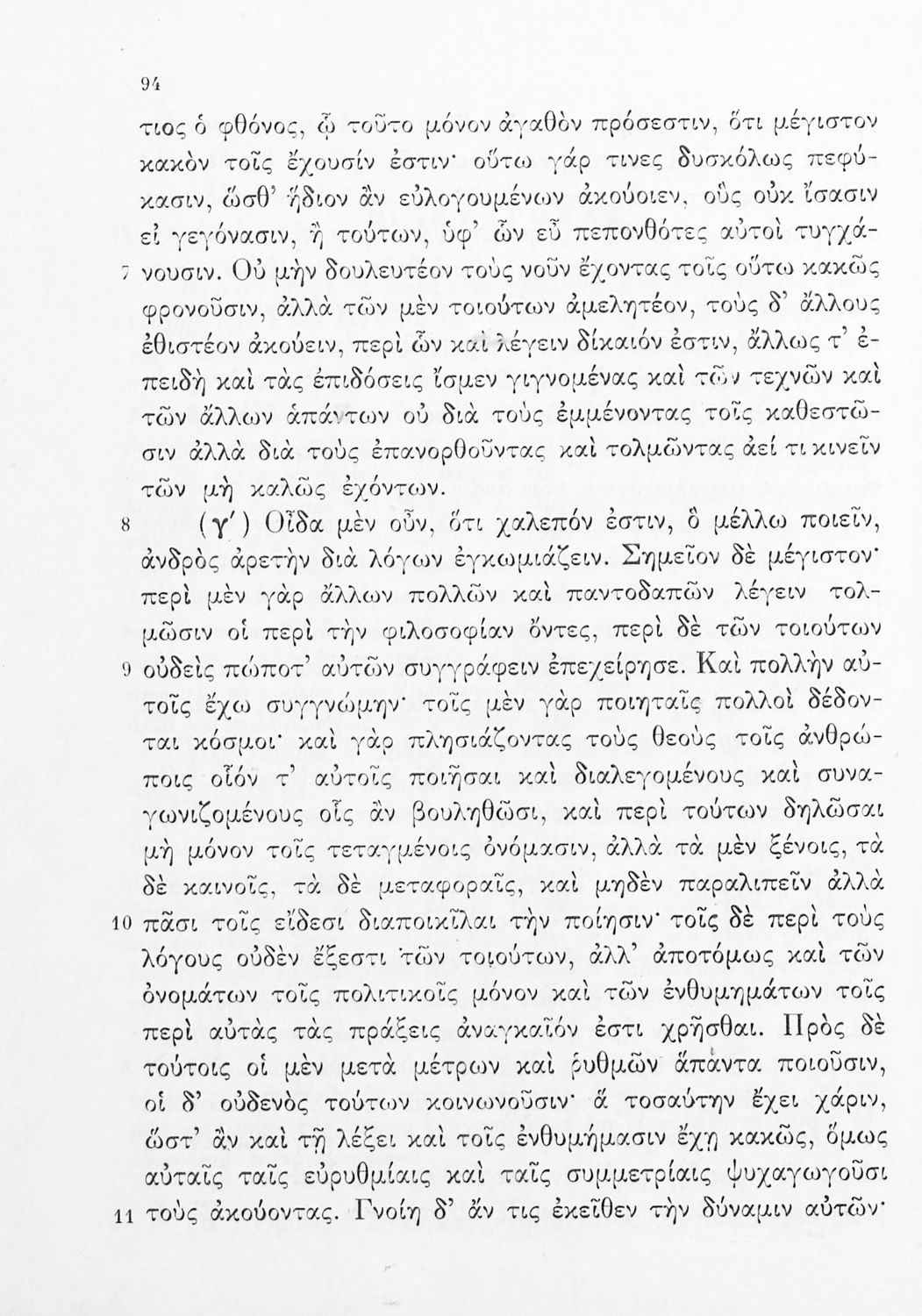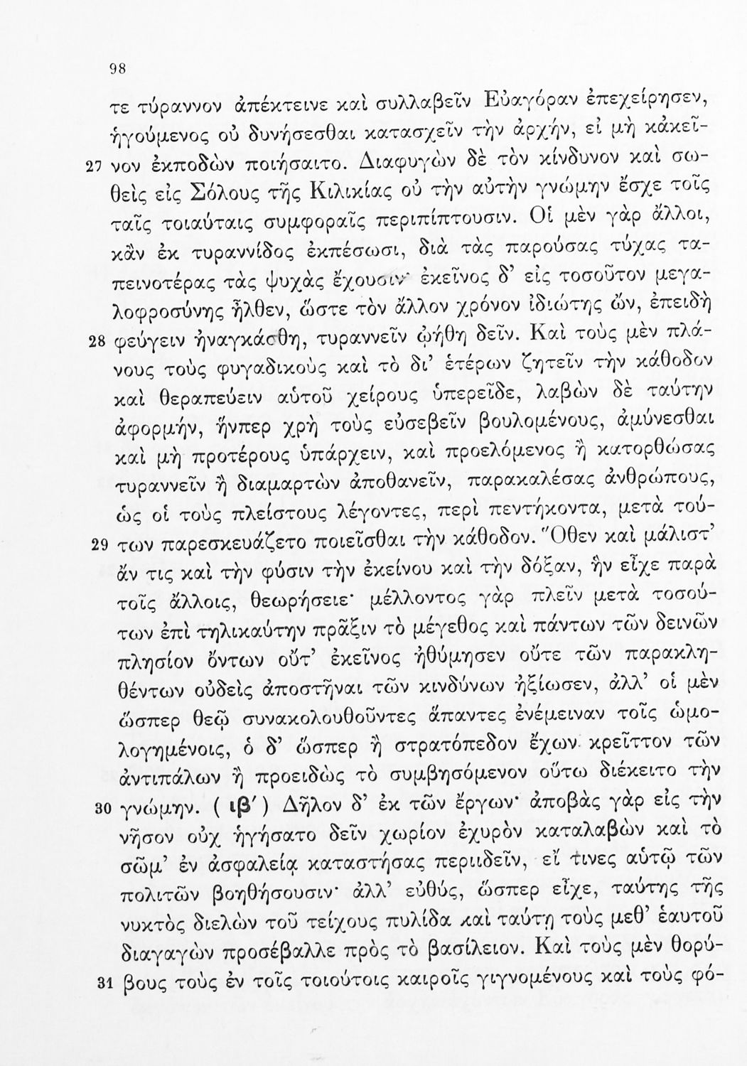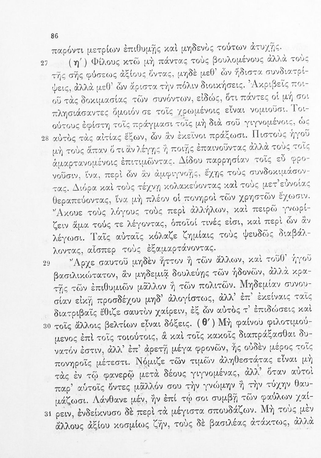 Σχολικό εγχειρίδιο Αρχαίων Ελληνικών Γ΄ Γυμνασίου που περιλαμβάνει τους Λόγους του Λυσία Περί του σηκού απολογία, Υπέρ του αδυνάτου, Κατά των σιτοπωλών και του Ισοκράτη Προς Δημόνικον, Προς Νικοκλέα και Ευαγόρας, εισαγωγή στους Λόγους και ερμηνευτικά σχόλια. Φέρει το σύμβολο της δικτατορίας.