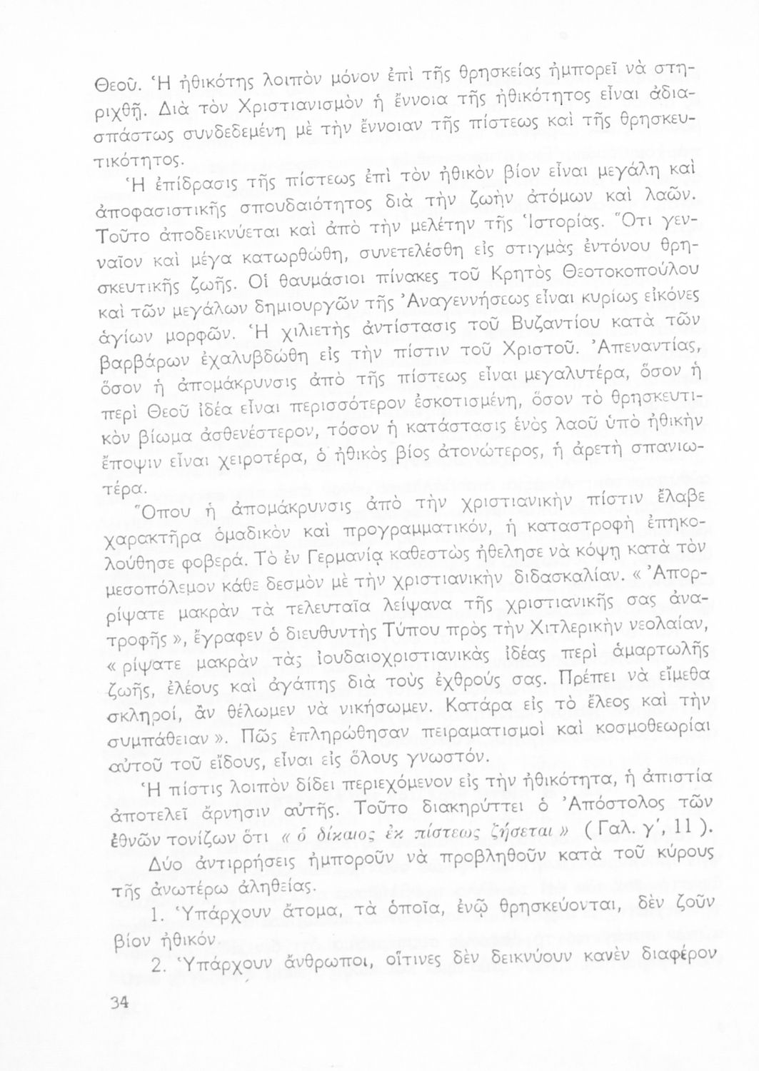 Σχολικό εγχειρίδιο Θρησκευτικών Γ΄ Λυκείου που πραγματεύεται την έννοια της αρετής και της ηθικής, της αμαρτίας και της λύτρωσης, της δικαιοσύνης και της αγάπης όπως αυτή ορίζεται από το Χριστιανισμό.