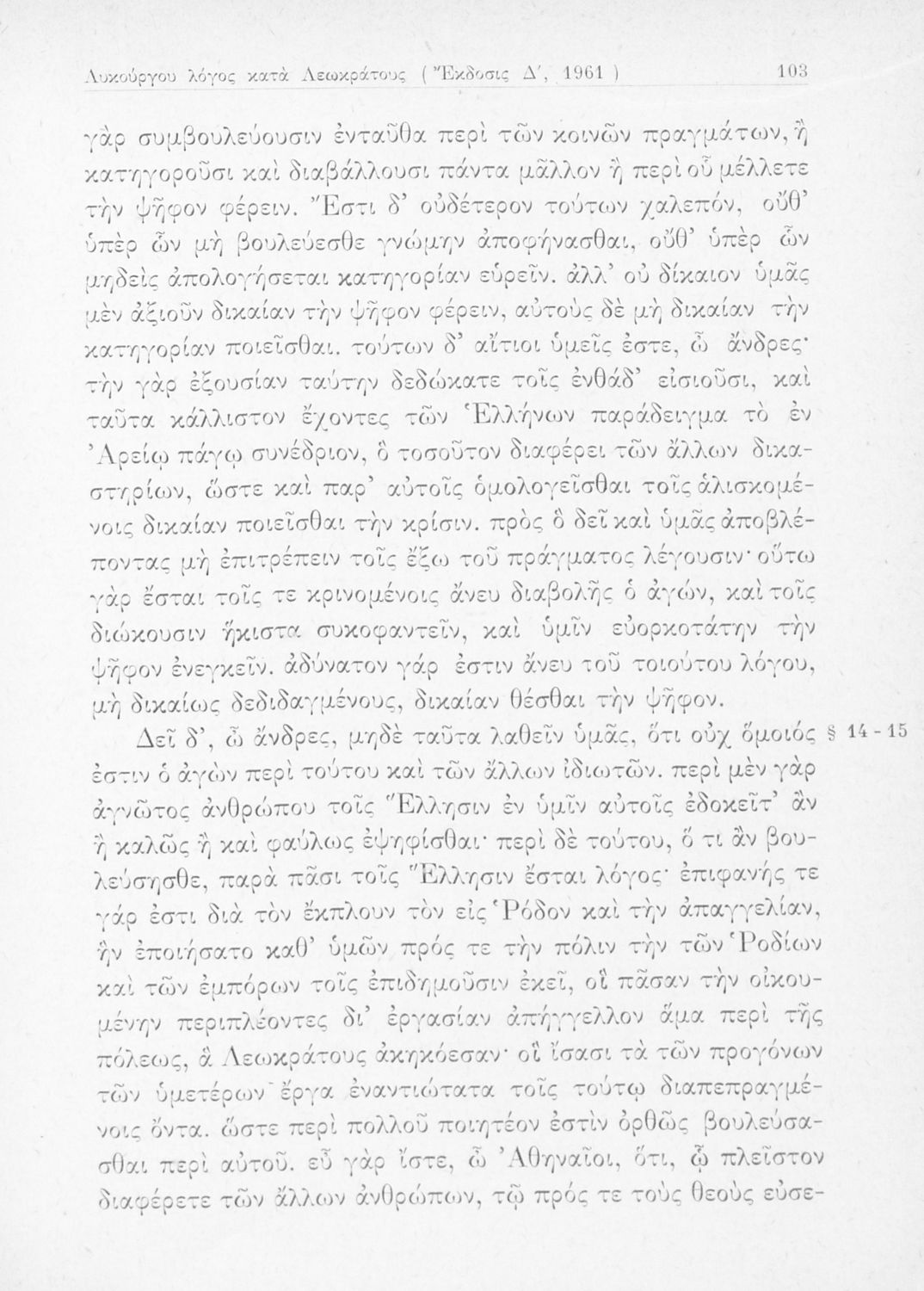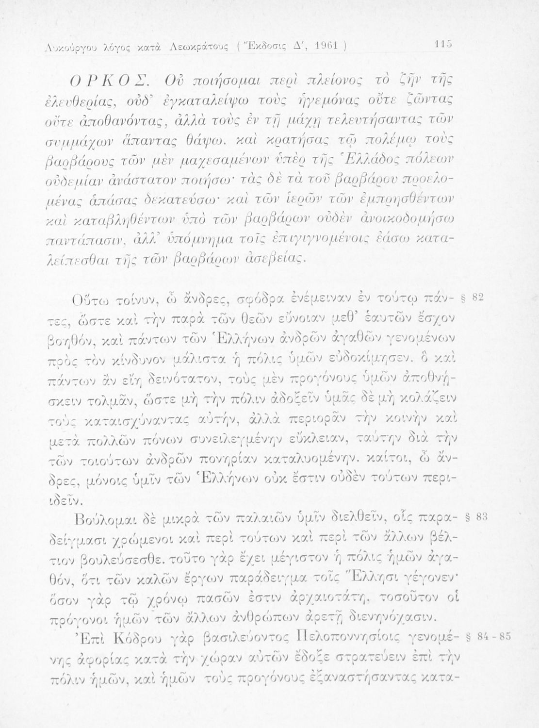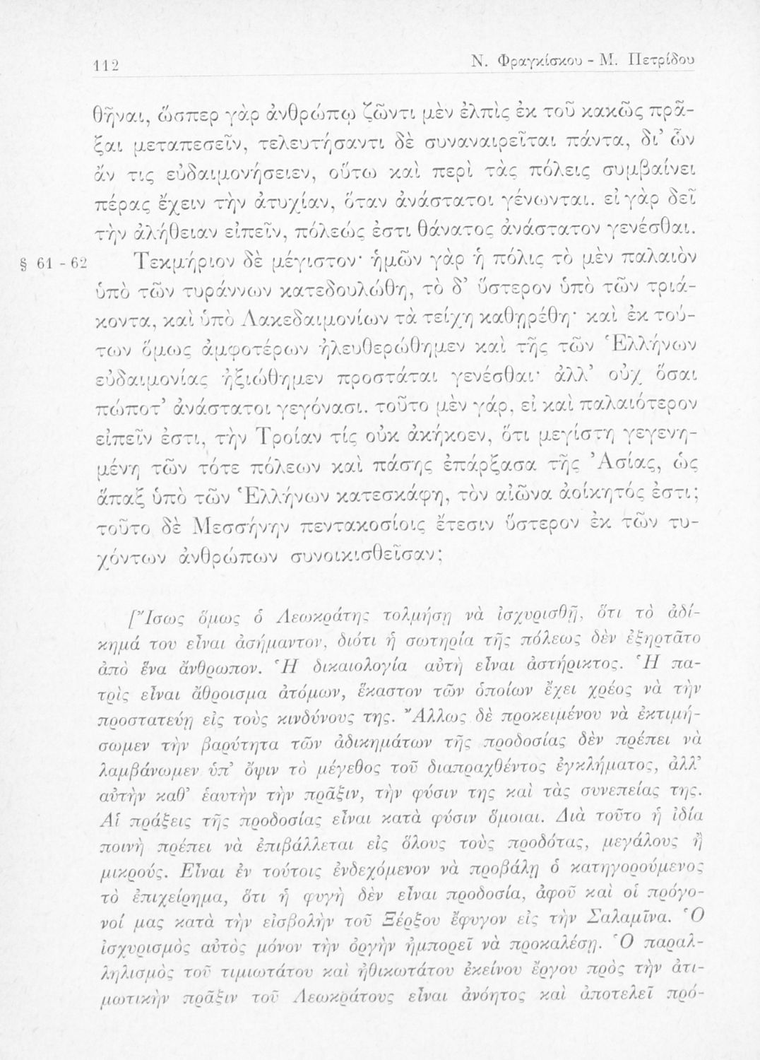 Λυκούργος, Ισοκράτης, Νικ. Εμμ. Φραγκίσκος (σχόλια)