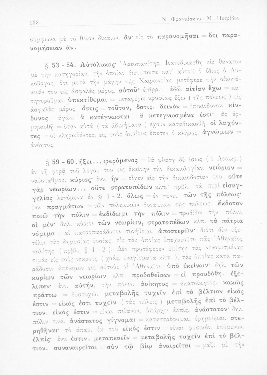 Λυκούργος, Νικόλαος Ε. Φραγκίσκος, Μιχαήλ Γ. Πετρίδης (σχόλια)