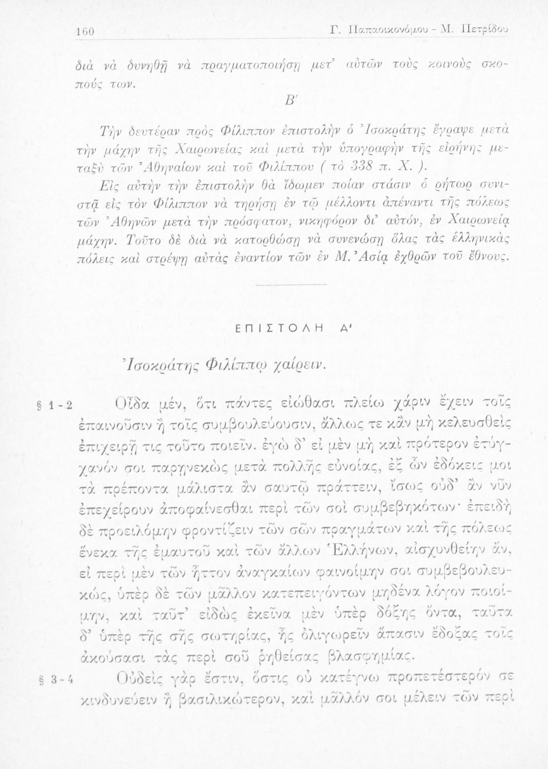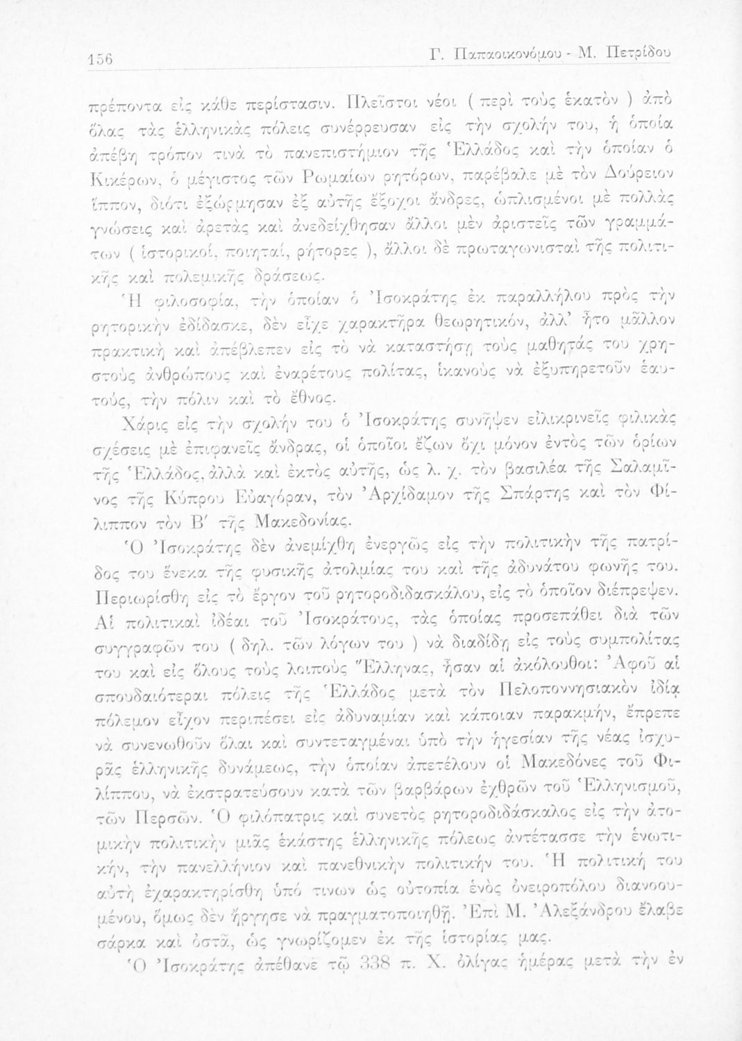 Ισοκράτης, Γεώργιος Παπαοικονόμου, Μιχαήλ Γ. Πετρίδης (σχόλια)