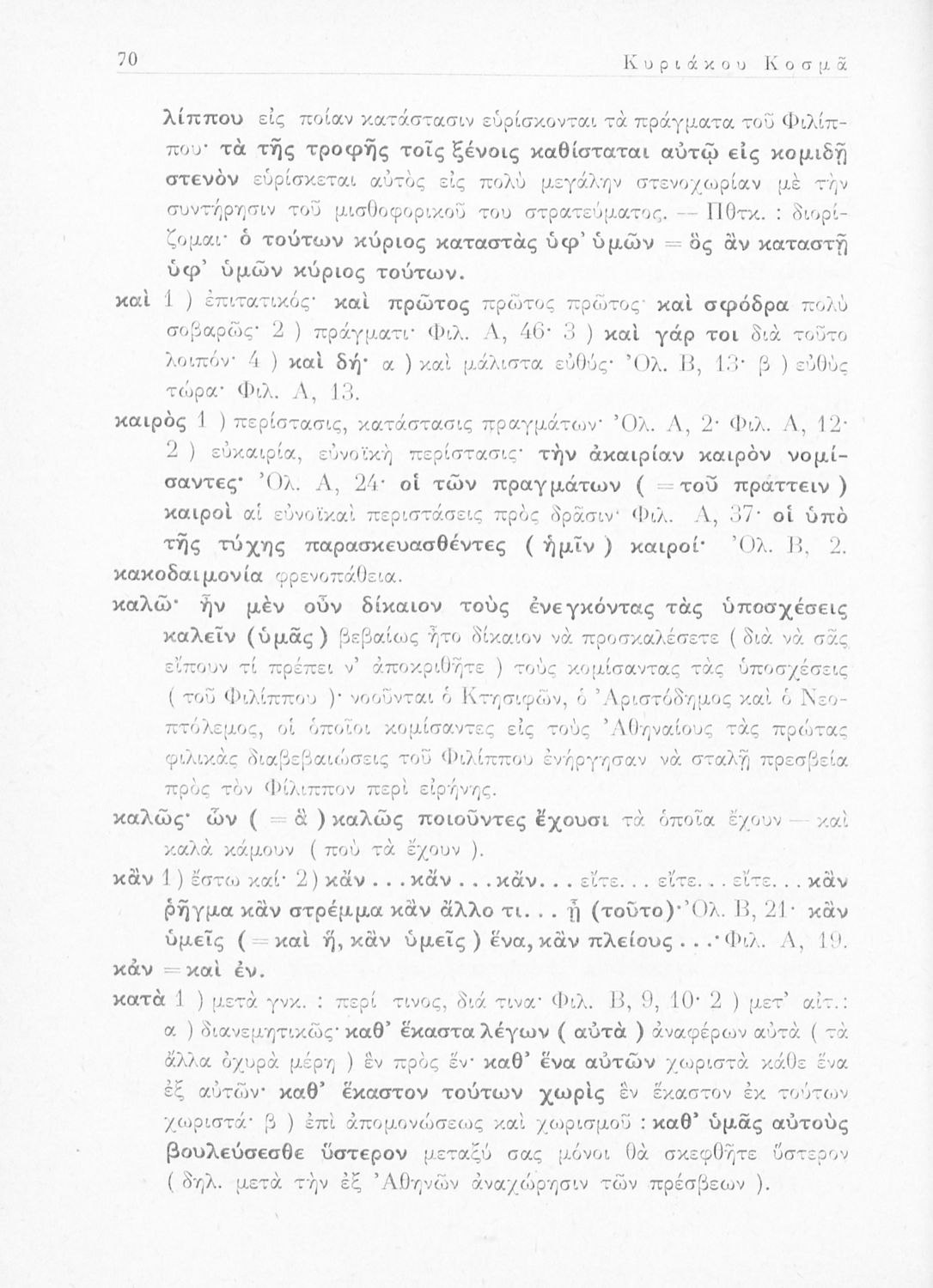 Δημοσθένης, Λυκούργος, Ισοκράτης, Κυριάκος Κοσμάς (σχόλια)