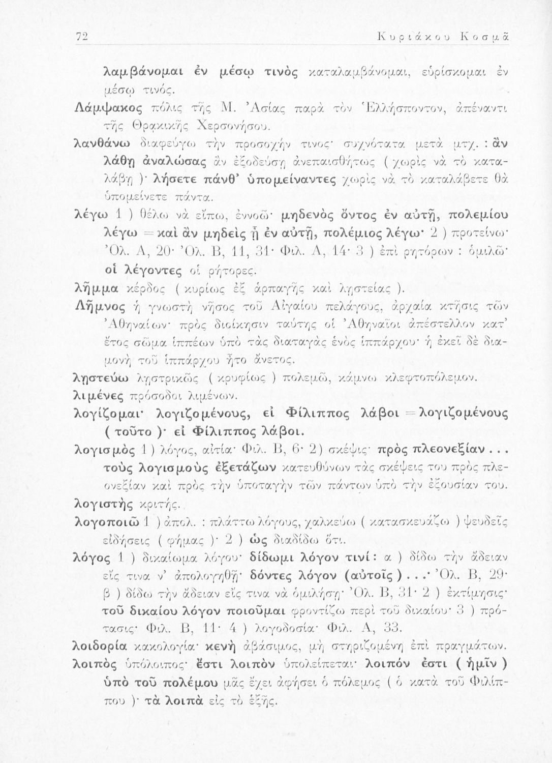 Λυκούργος, Ισοκράτης, Κυριάκος Κοσμάς (σχόλια)