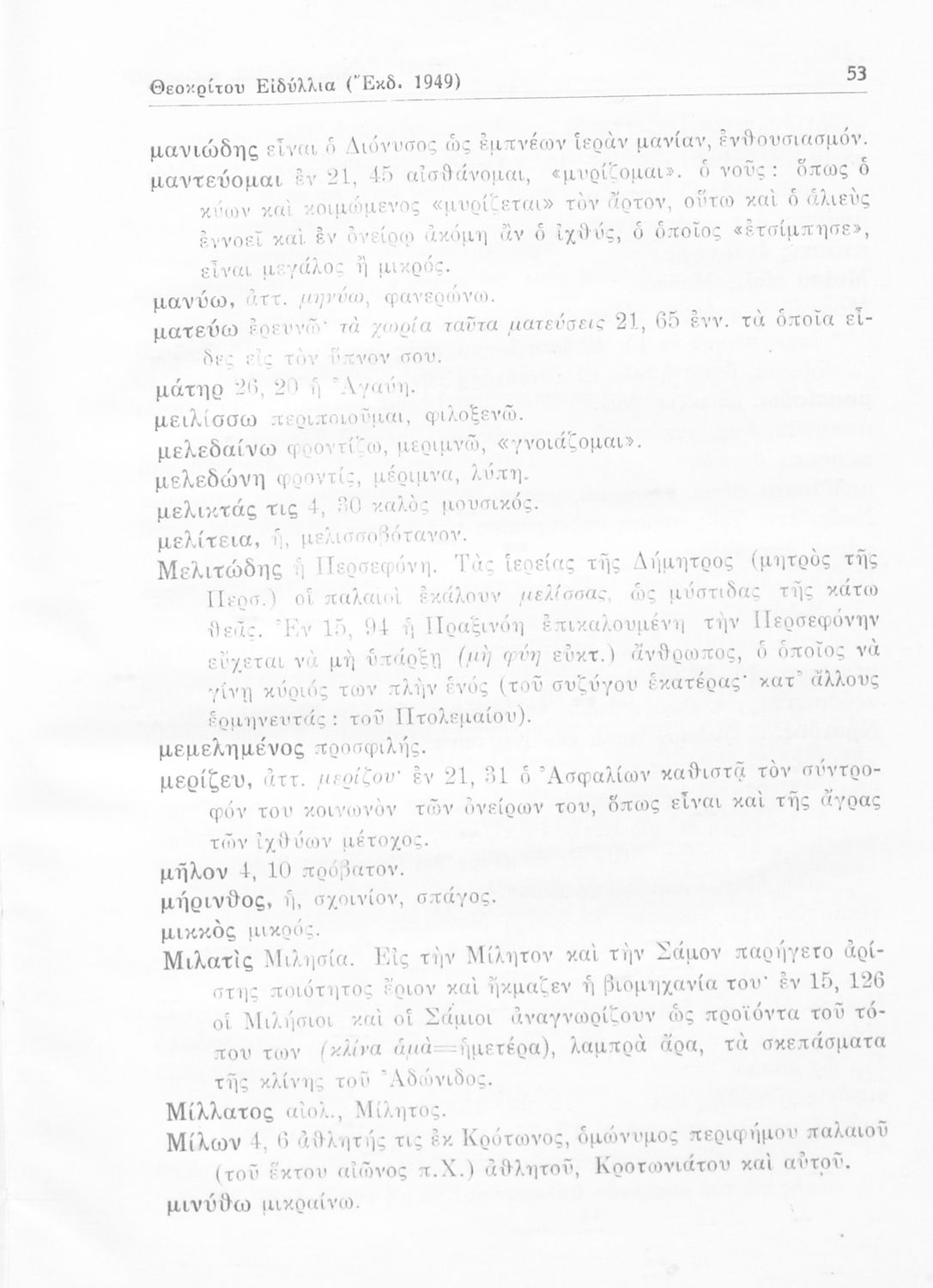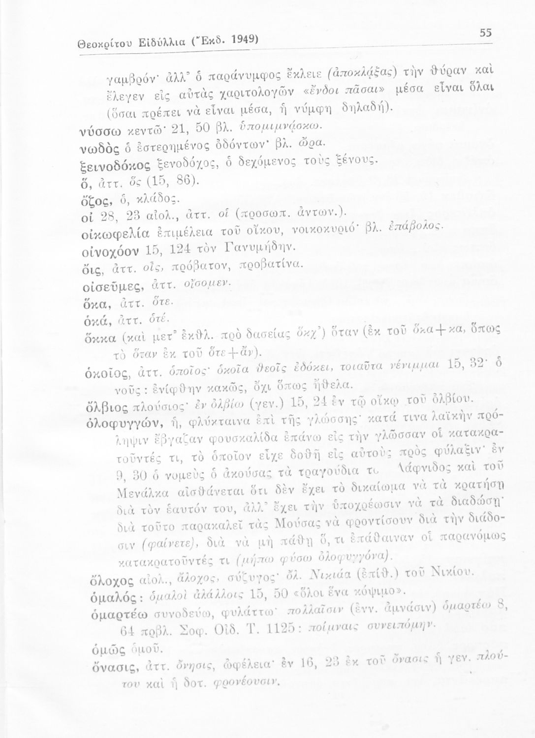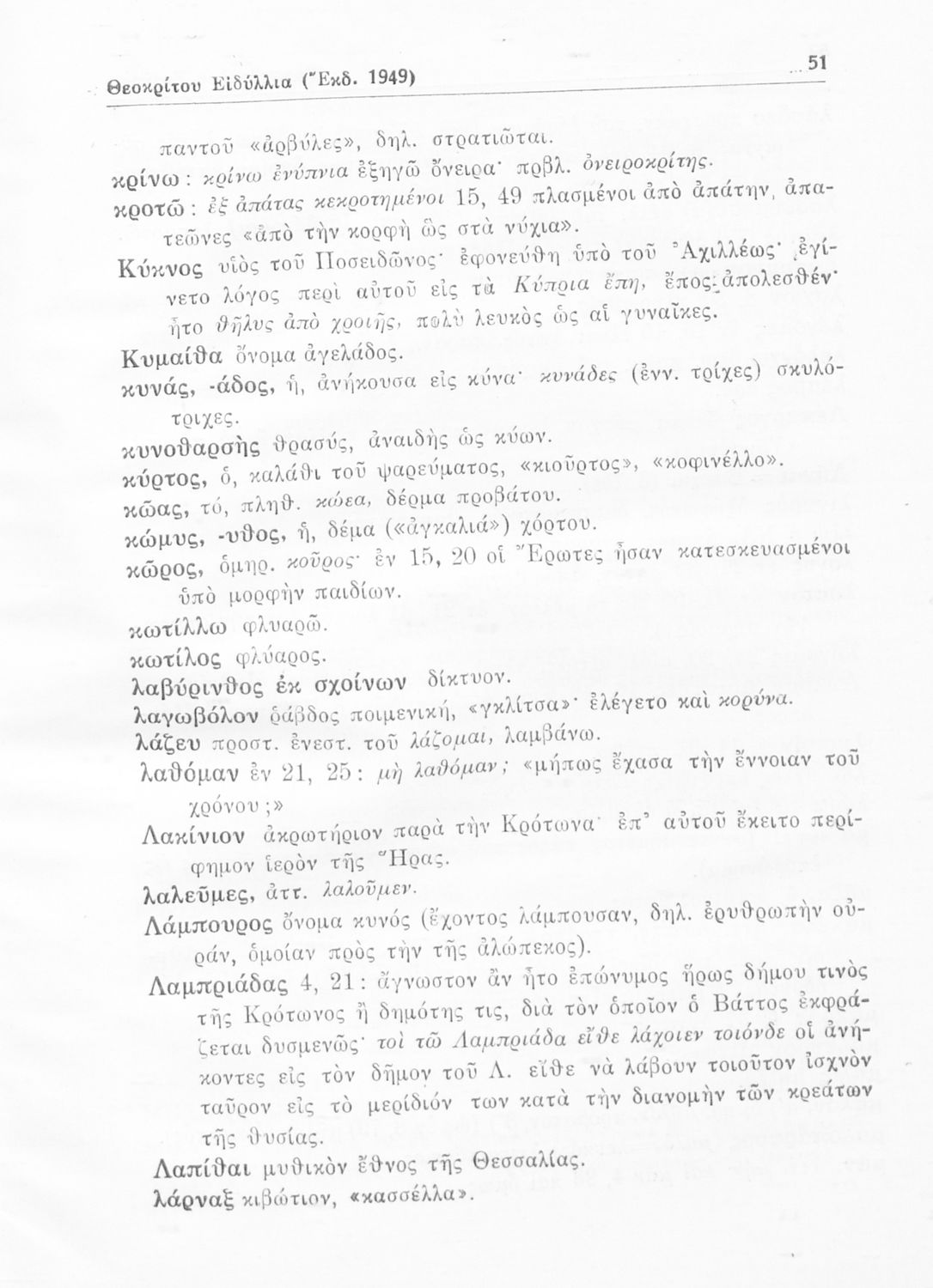 Θεόκριτος, Χρ. Β. Λώλος (σχόλια)
