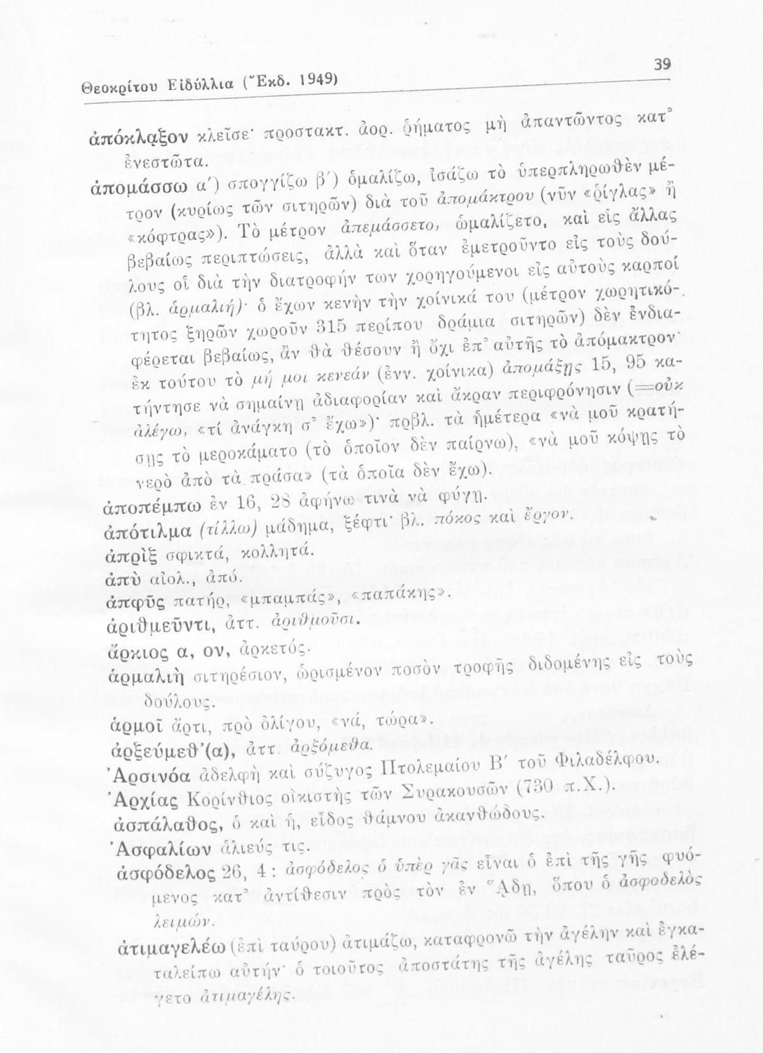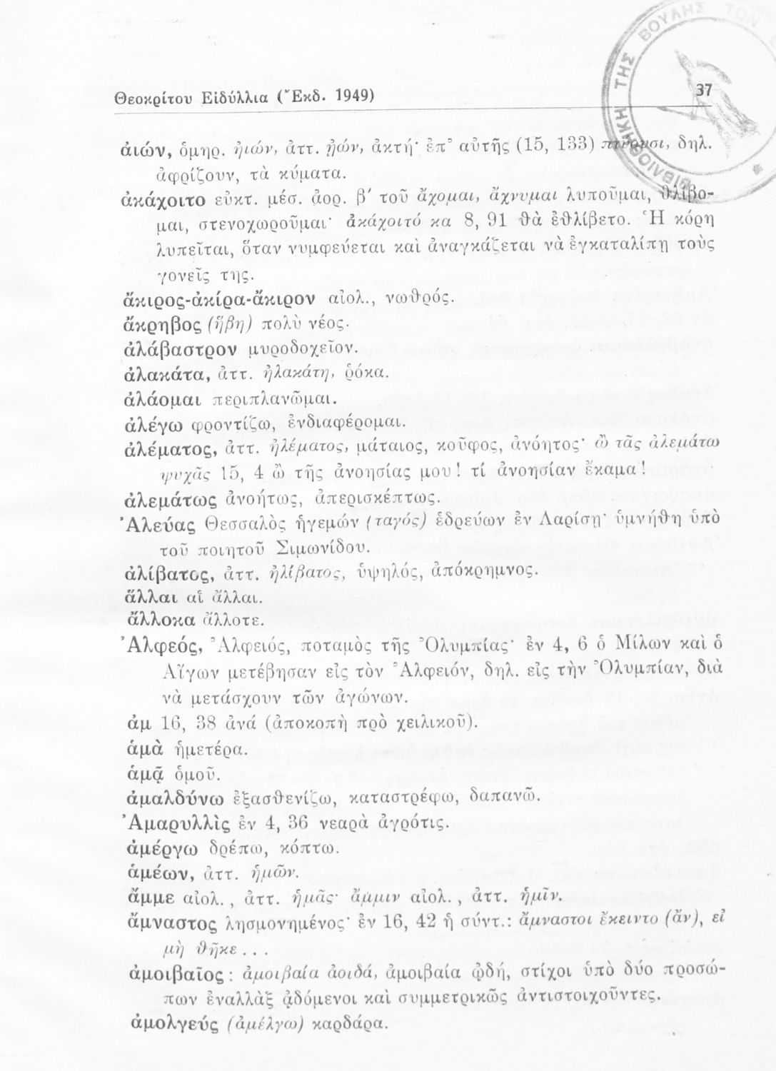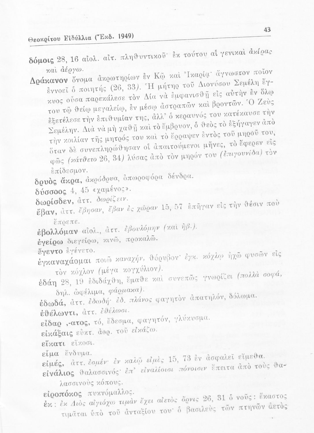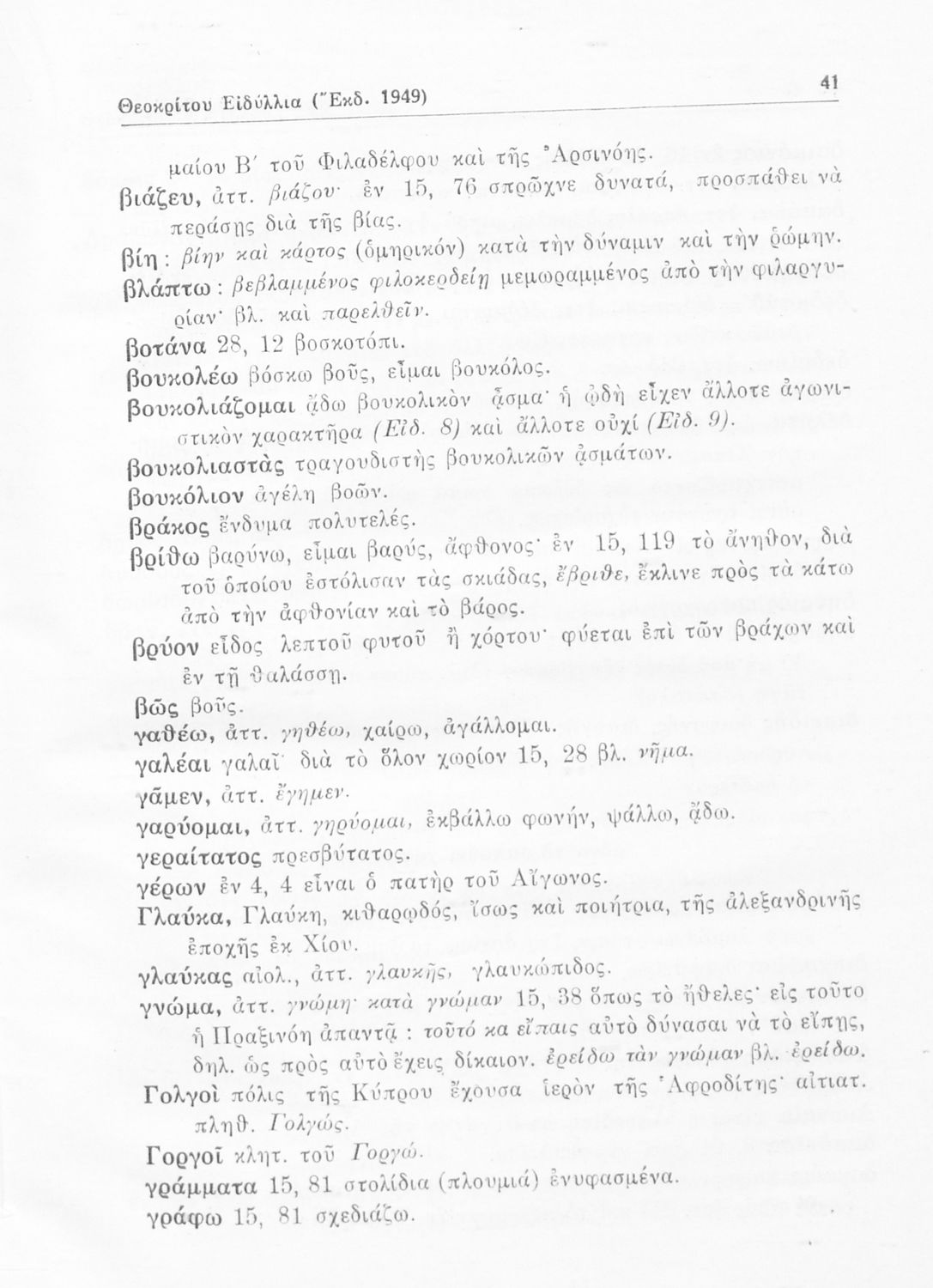 Θεόκριτος, Χρ. Β. Λώλος (σχόλια)