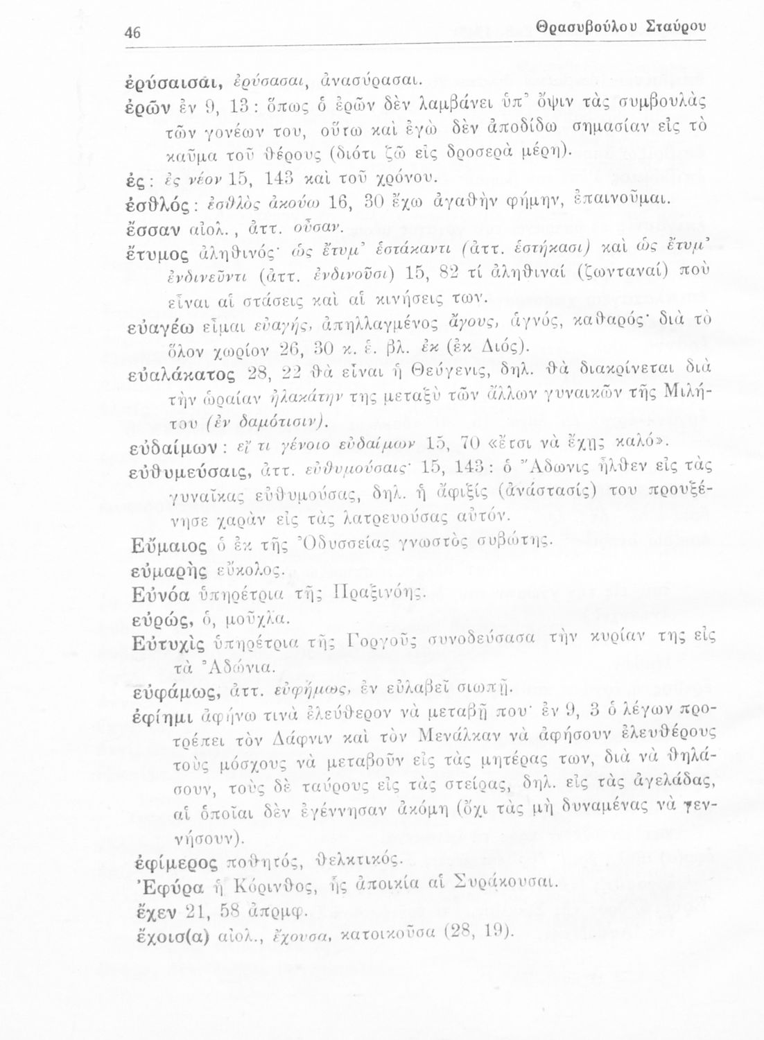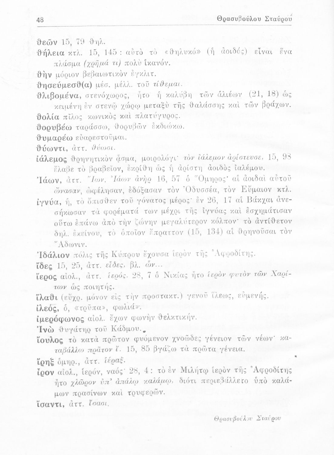 Θεόκριτος, Θρασύβουλος Σταύρου (σχόλια)