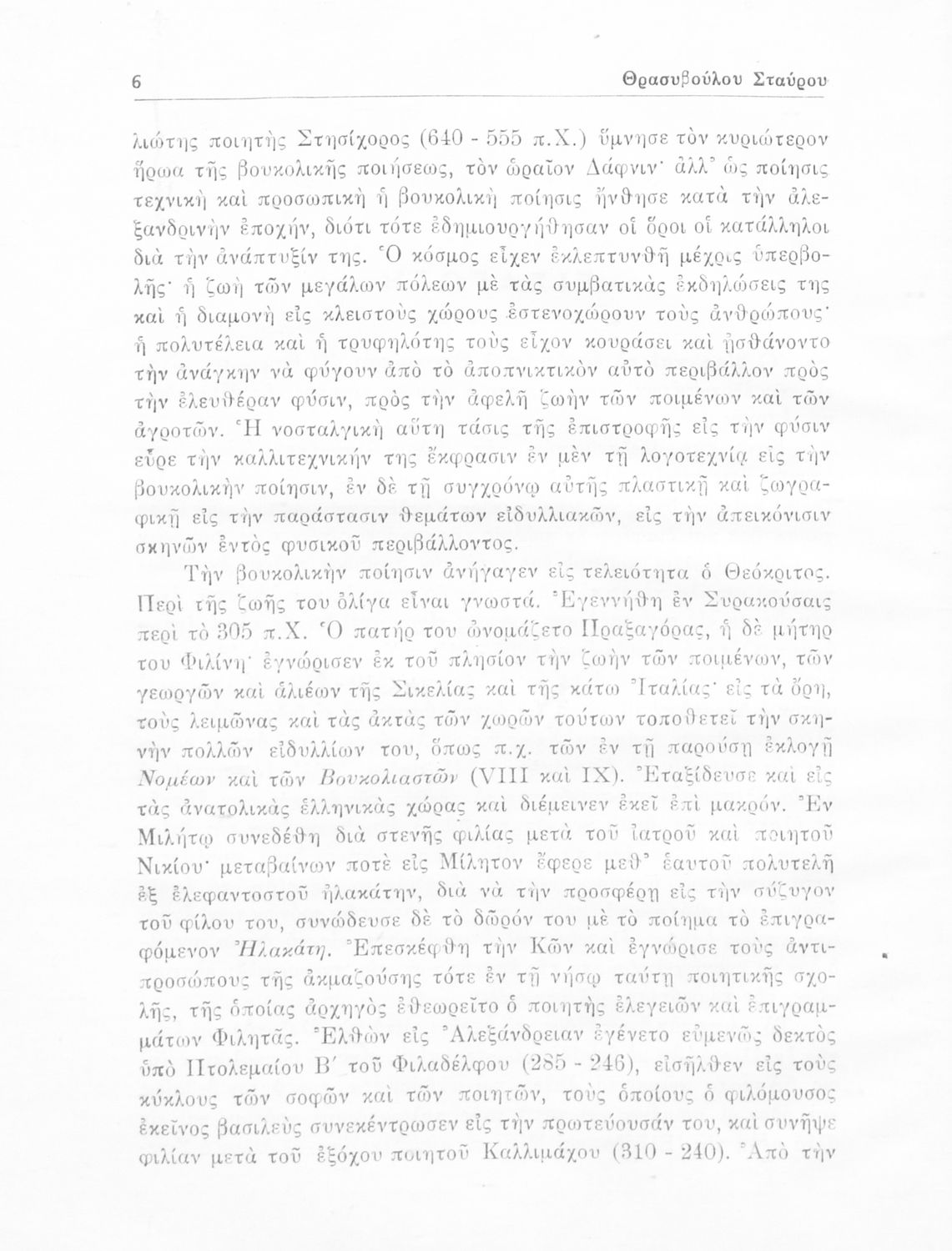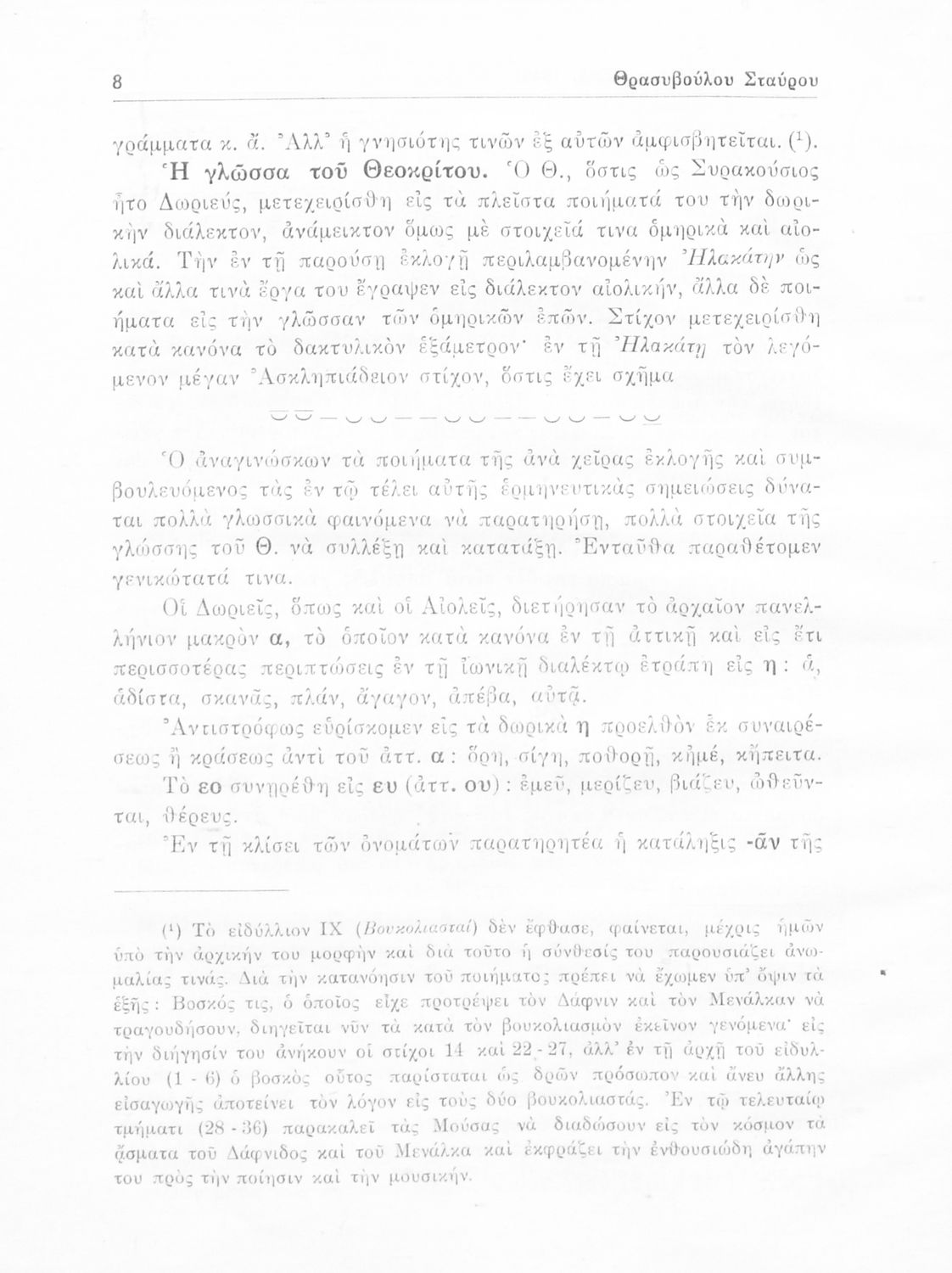 Θεόκριτος, Θρασύβουλος Σταύρου (σχόλια)