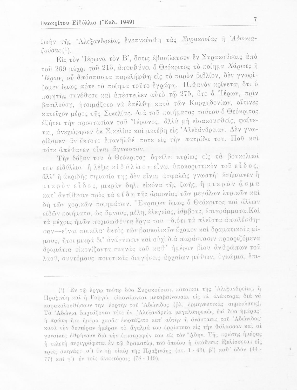 Θεόκριτος, Χρ. Β. Λώλος (σχόλια)