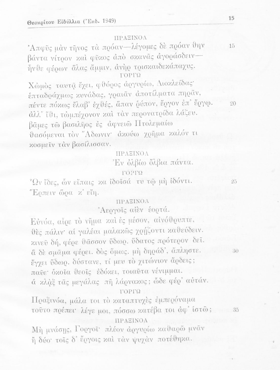 Θεοκρίτου Ειδύλλια Γ΄ Γυμνασίου