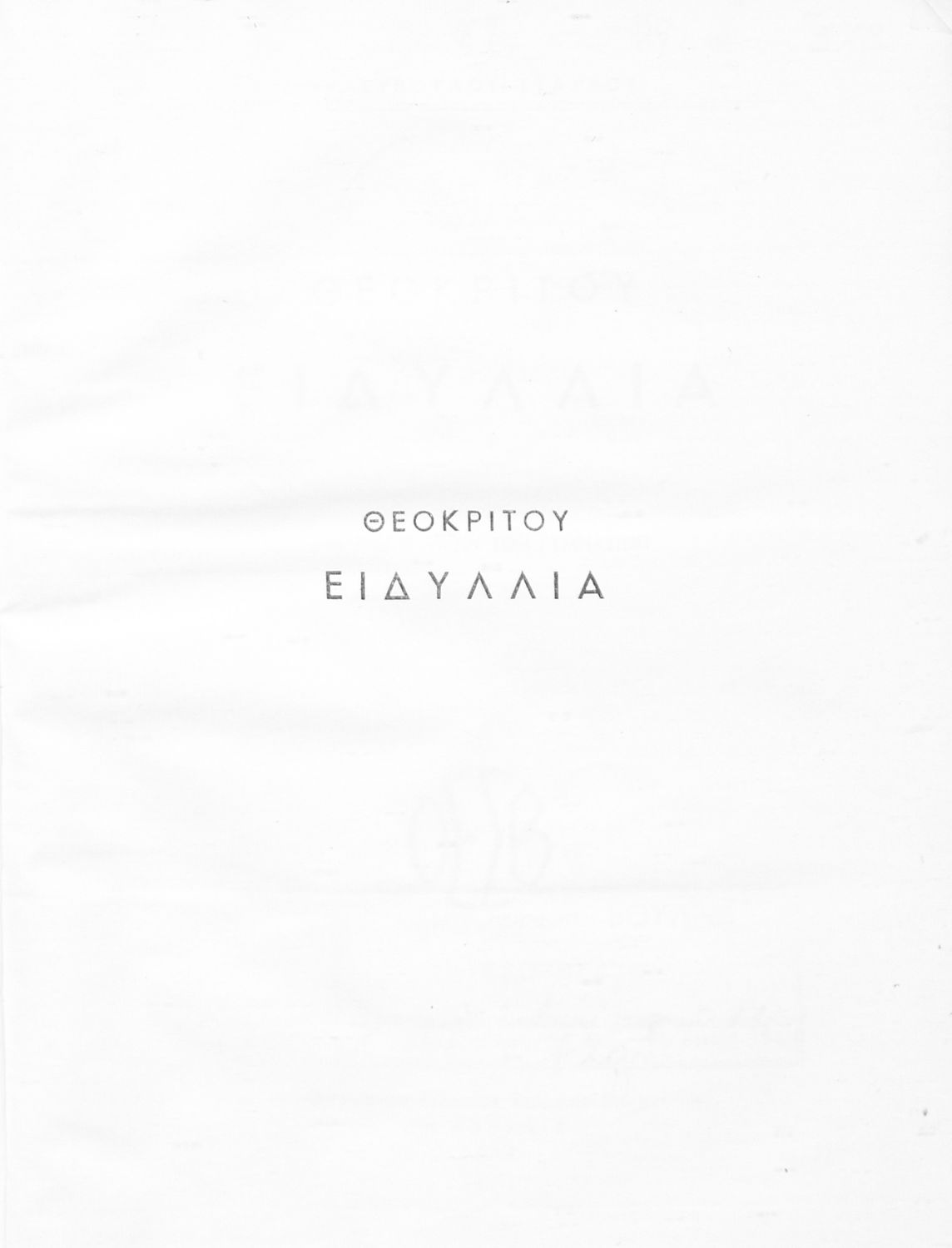 Σχολικό εγχειρίδιο Αρχαίων Ελληνικών Γ΄ Γυμνασίου που περιλαμβάνει εισαγωγή στη ζωή και το έργο του Θεόκριτου, τα Ειδύλλιά του και ερμηνευτικά σχόλια.