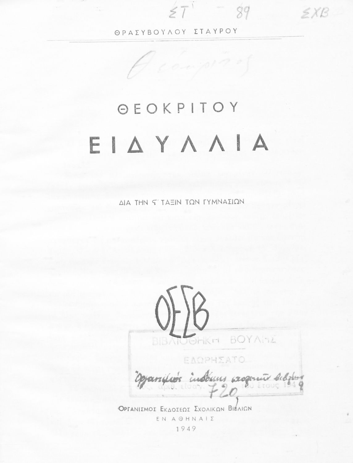 Τίτλος: Θεοκρίτου Ειδύλλια Γ΄ Γυμνασίου