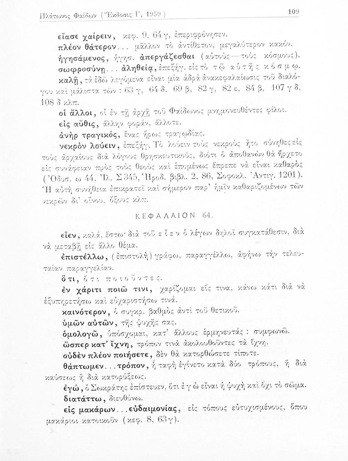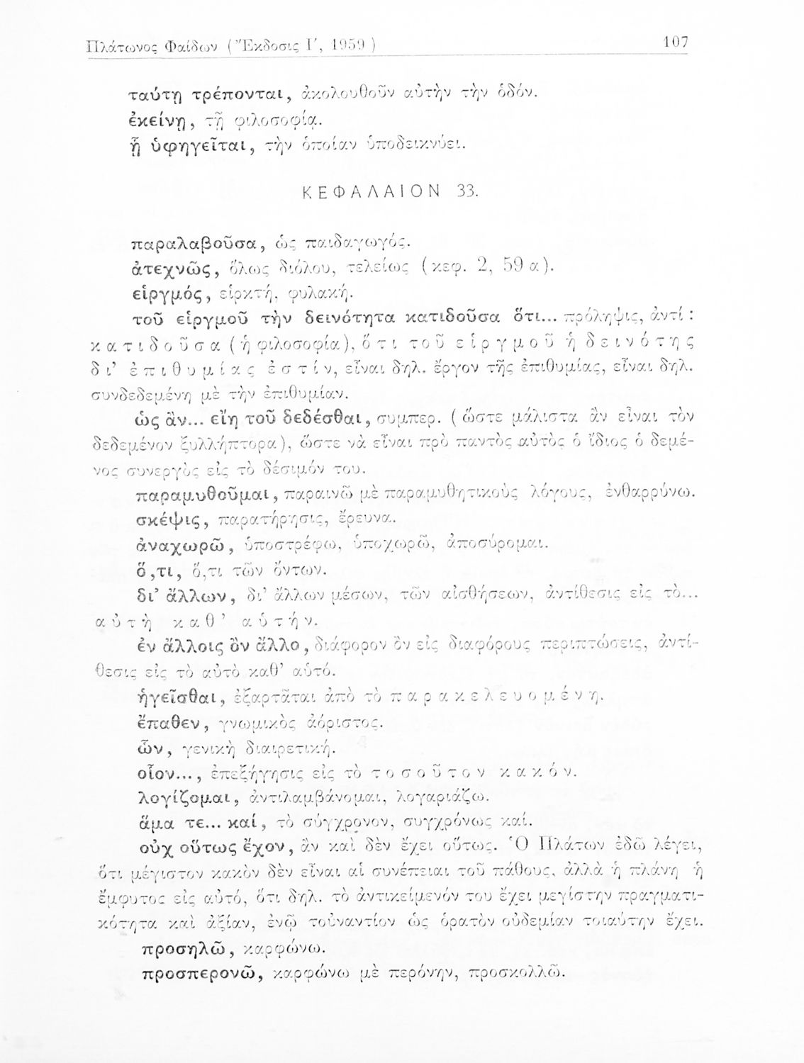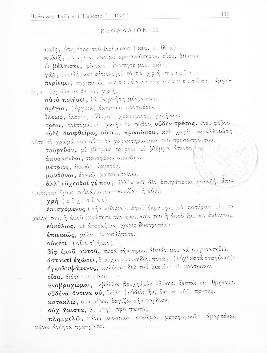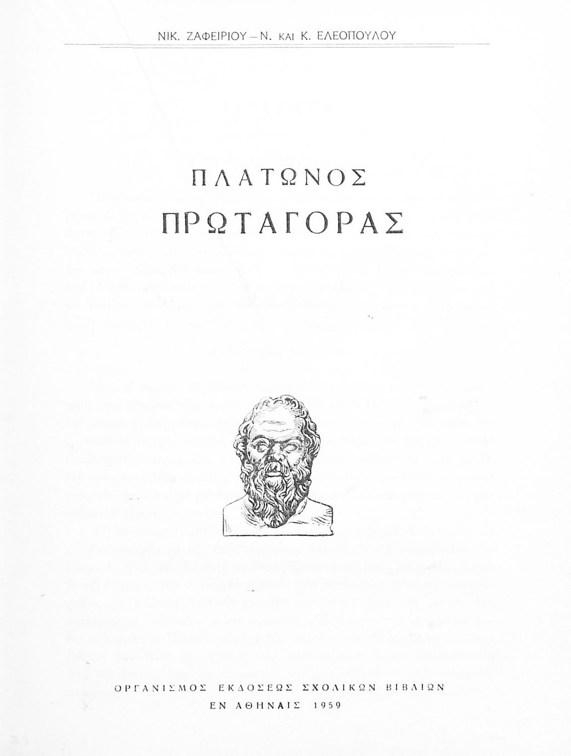 Σχολικό εγχειρίδιο Αρχαίων Ελληνικών του Γυμνασίου. Το βιβλίο παρουσιάζει δύο έργα του Πλάτωνα, Φαίδων και Πρωταγόρας. Το βιβλίο αρχίζει με μια εισαγωγή στην εποχή και το έργο του Πλάτωνα. Στη συνέχεια παρουσιάζει τα κείμενα από το πρωτότυπο και ολοκληρώνει με λεξιλογικές και ερμηνευτικές αναλύσεις