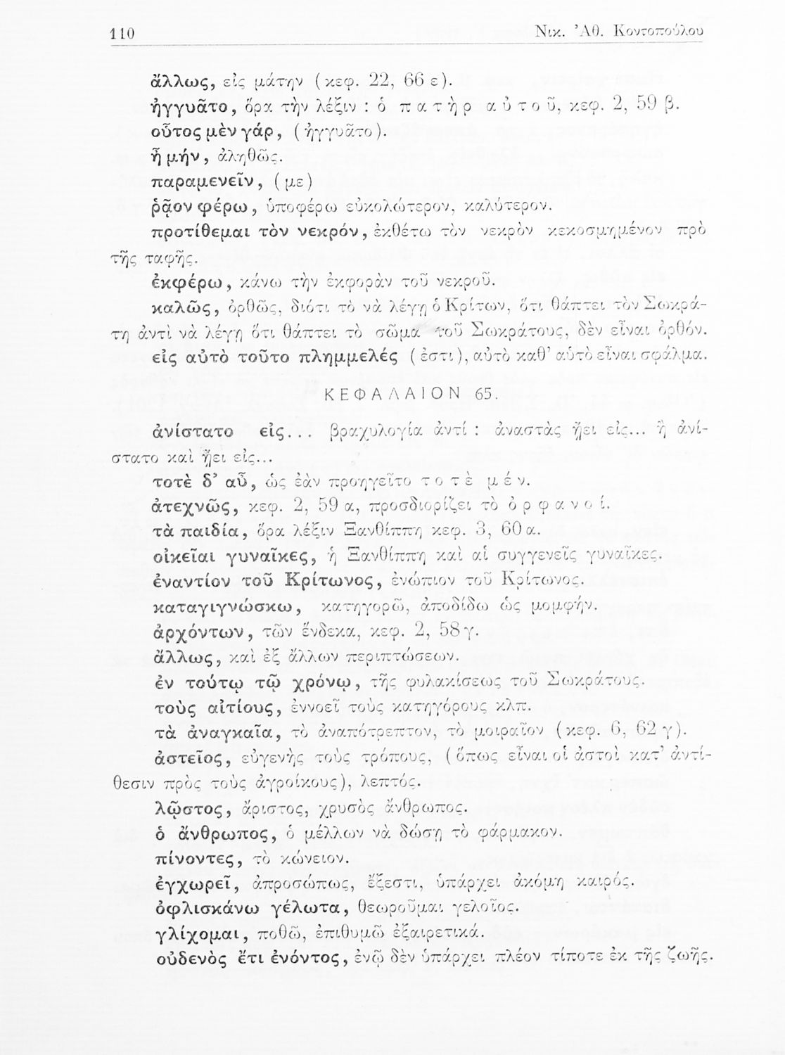Πλάτων, Νικ. Αθ. Κοντόπουλος (σχόλια)