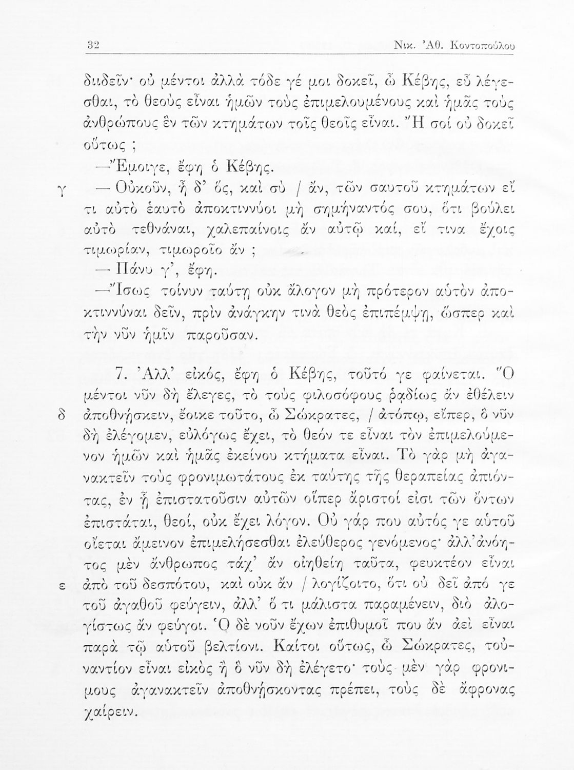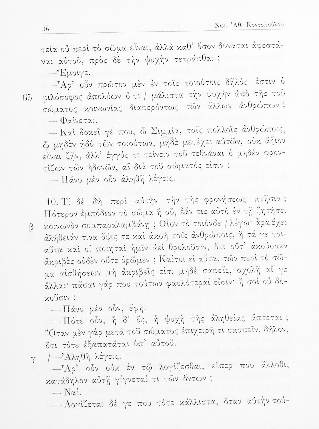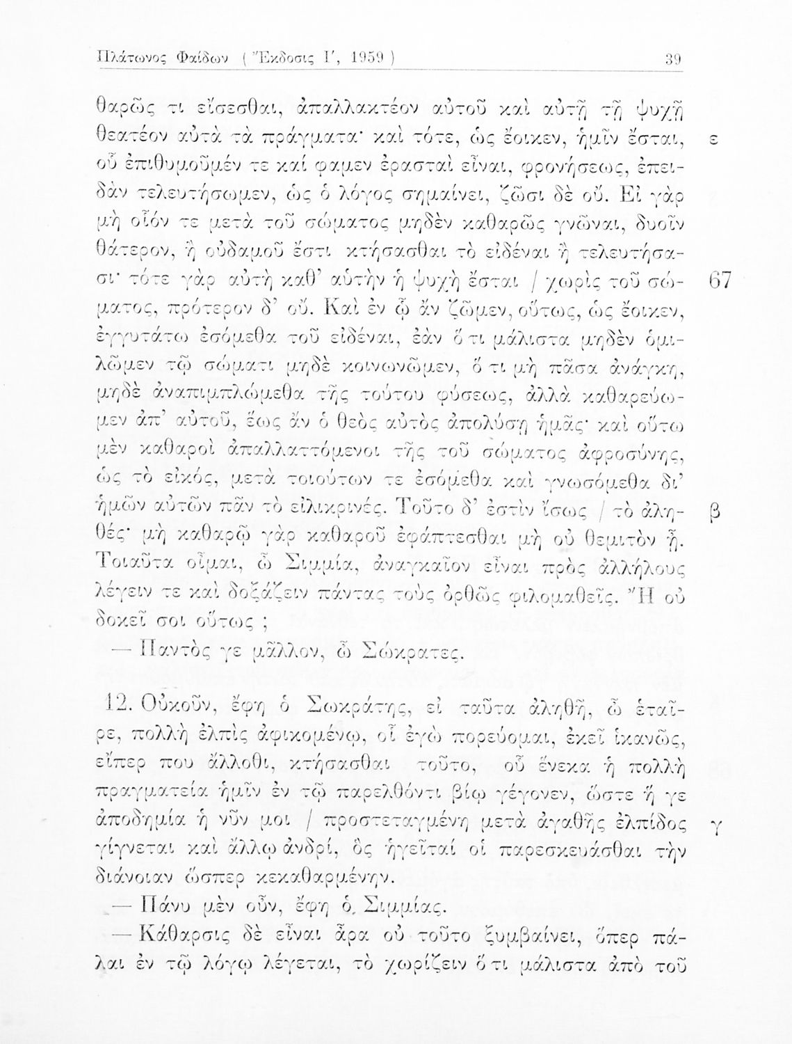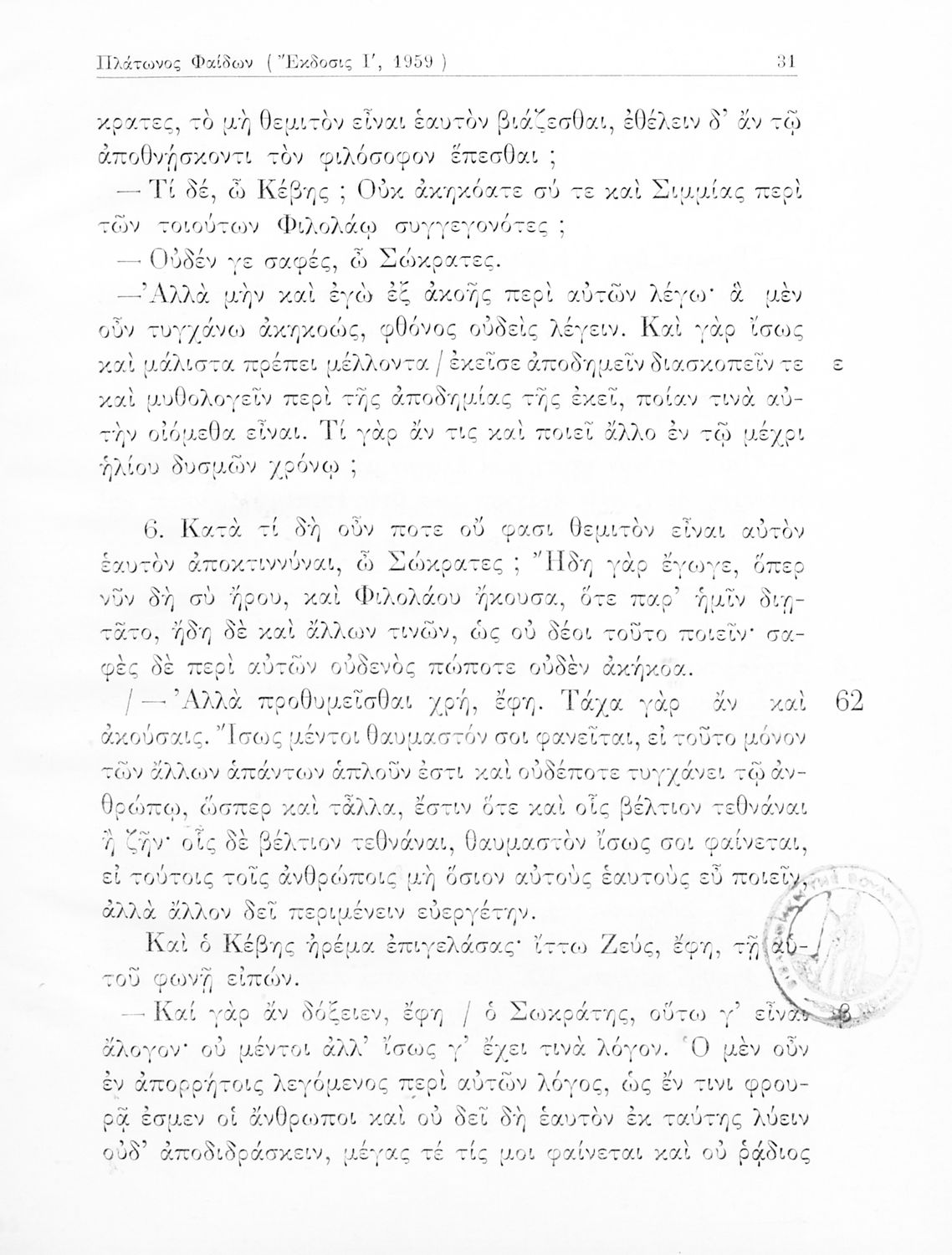 520 ## _aΣχολικό εγχειρίδιο Αρχαίων Ελληνικών του Γυμνασίου. Το βιβλίο παρουσιάζει δύο έργα του Πλάτωνα, Φαίδων και Πρωταγόρας. Το βιβλίο αρχίζει με μια εισαγωγή στην εποχή και το έργο του Πλάτωνα. Στη συνέχεια παρουσιάζει τα κείμενα από το πρωτότυπο και ολοκληρώνει με λεξιλογικές και ερμηνευτικές αναλύσεις