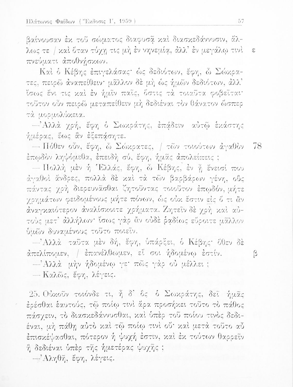 Σχολικό εγχειρίδιο Αρχαίων Ελληνικών του Γυμνασίου. Το βιβλίο παρουσιάζει δύο έργα του Πλάτωνα, Φαίδων και Πρωταγόρας. Το βιβλίο αρχίζει με μια εισαγωγή στην εποχή και το έργο του Πλάτωνα. Στη συνέχεια παρουσιάζει τα κείμενα από το πρωτότυπο και ολοκληρώνει με λεξιλογικές και ερμηνευτικές αναλύσεις