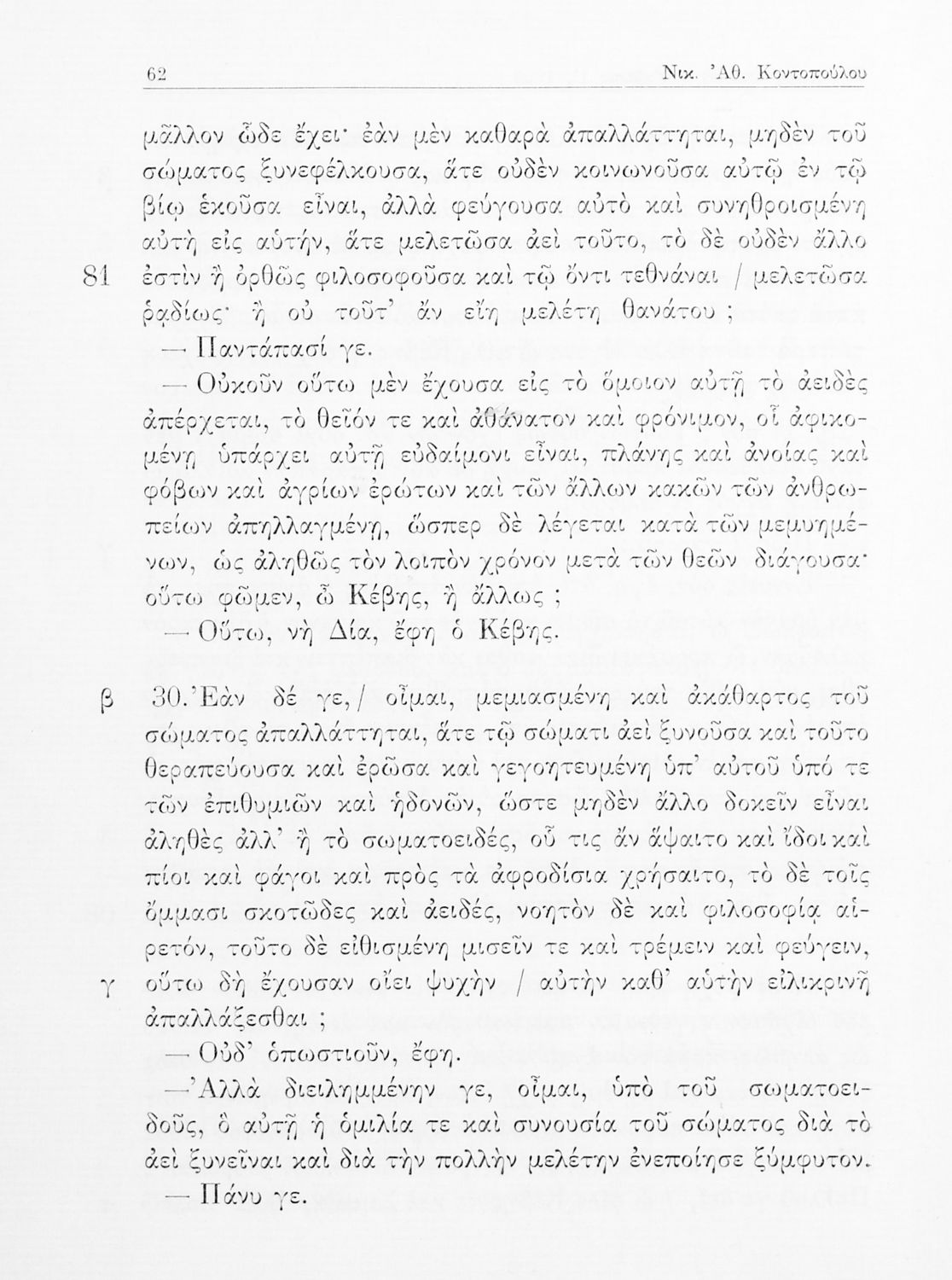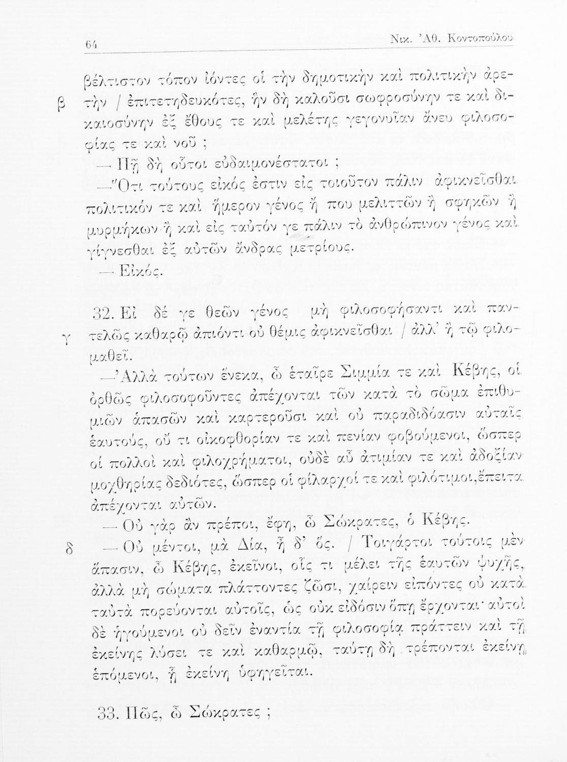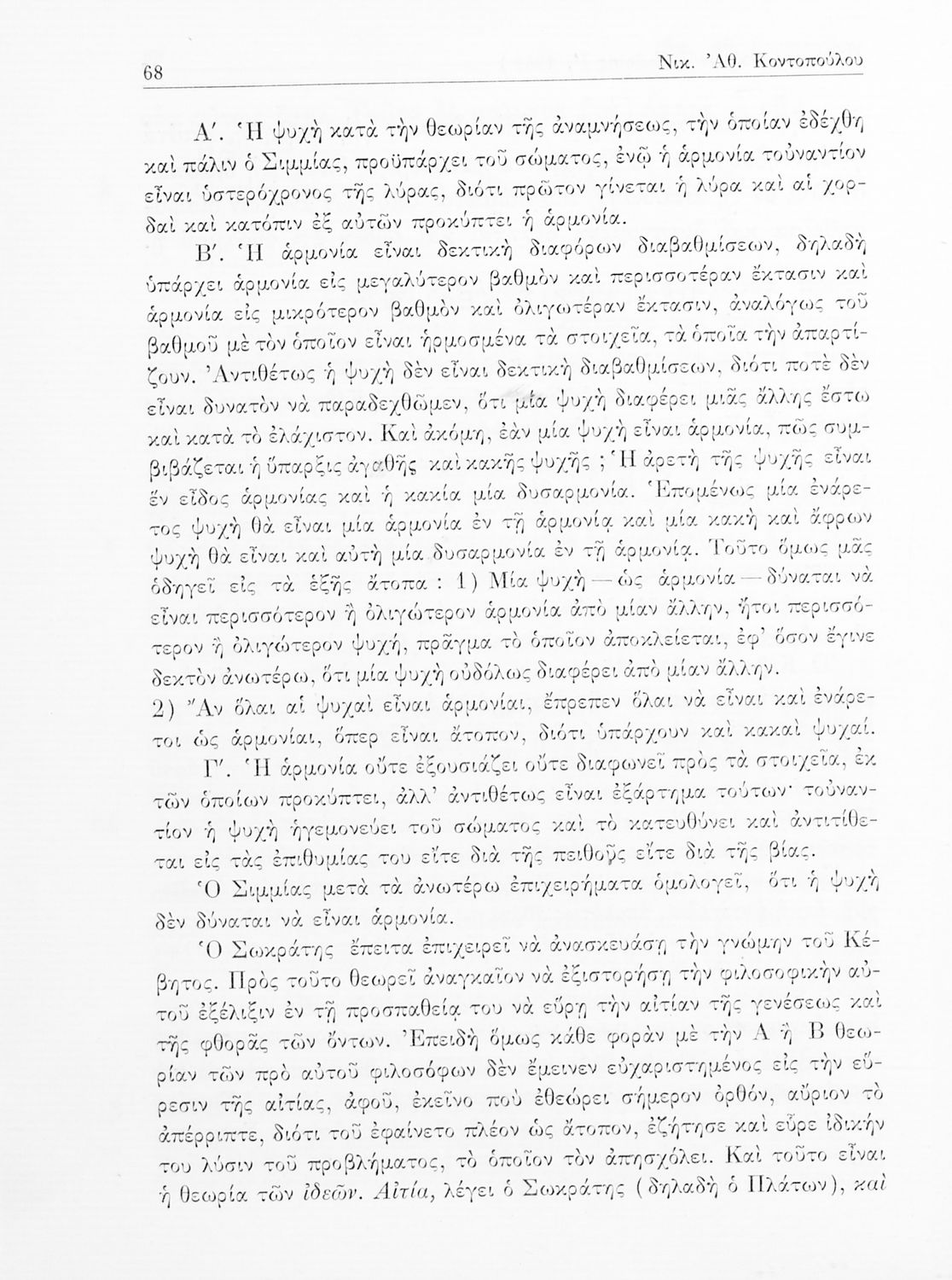 Πλάτων, Νικ. Αθ. Κοντόπουλος (σχόλια)