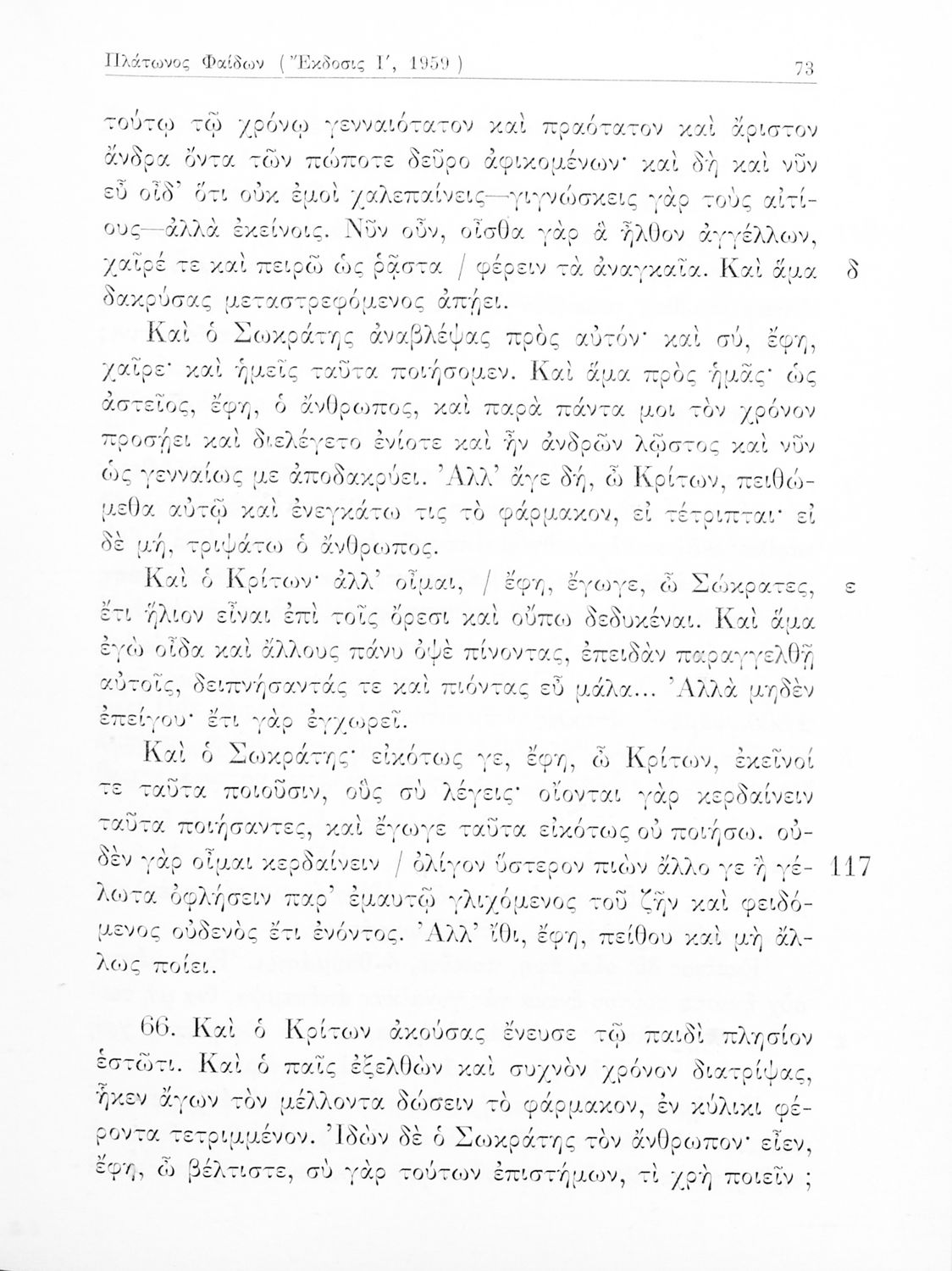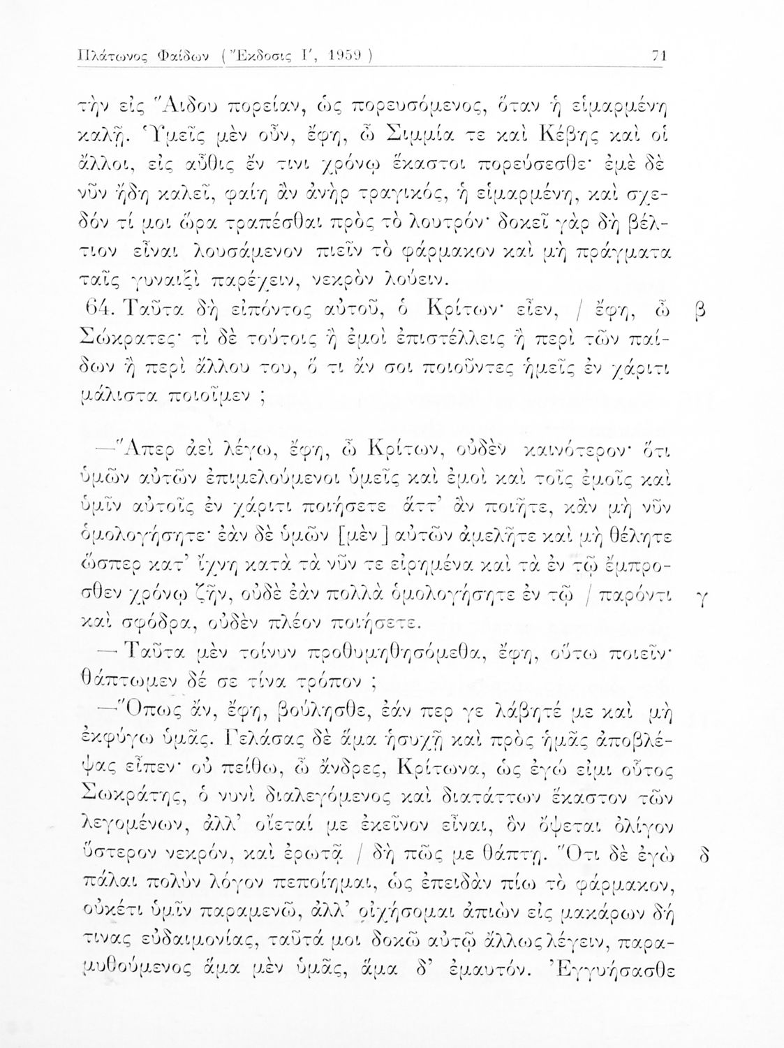 Σχολικό εγχειρίδιο Αρχαίων Ελληνικών για την ΣΤ΄ Γυμνασίου. Πρόκειται για βιβλίο με το πρωτότυπο κείμενο του Πλάτωνα. Υπάρχουν ερμηνευτικά σχόλια και εισαγωγή στη καθαρεύουσα. Το βιβλίο έχει εισαγωγές και ...