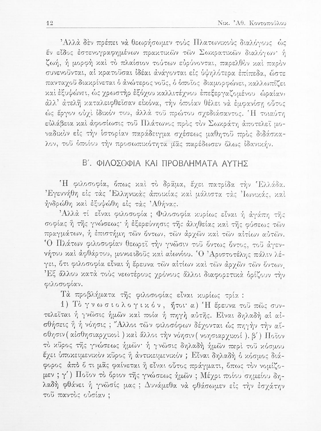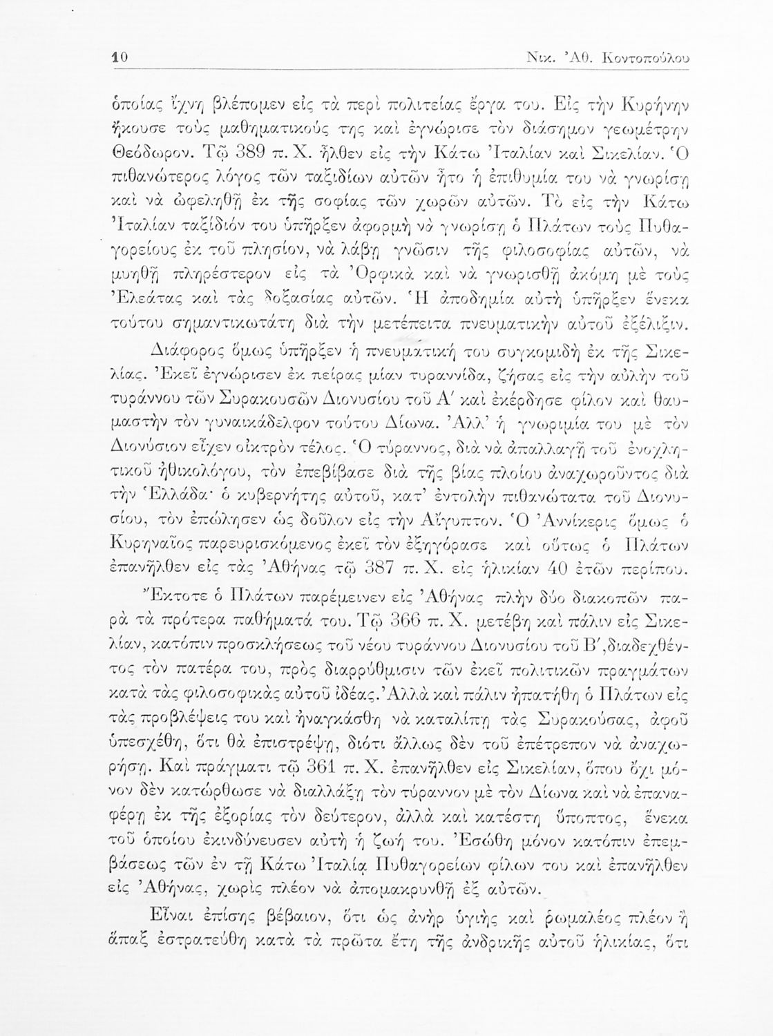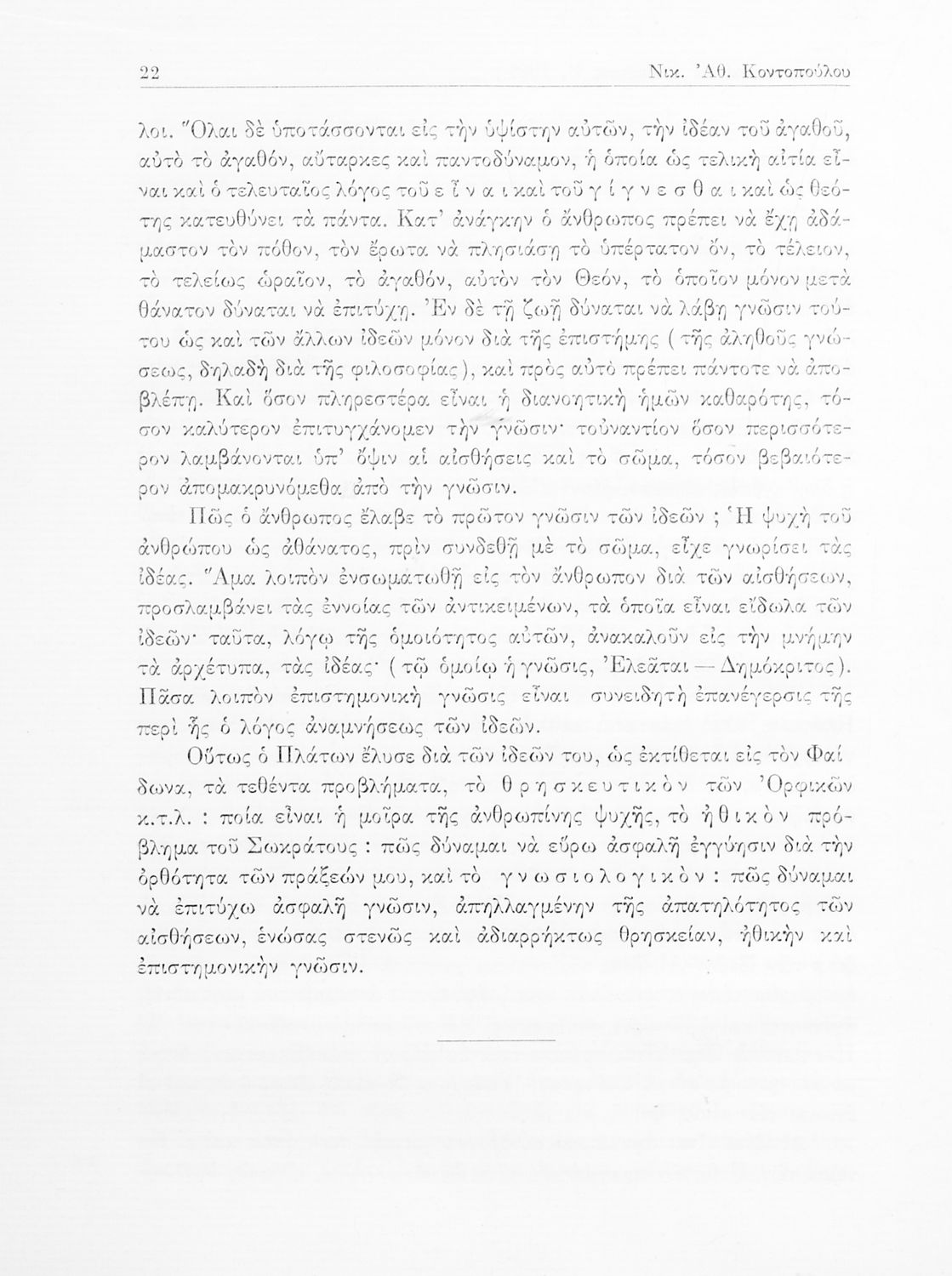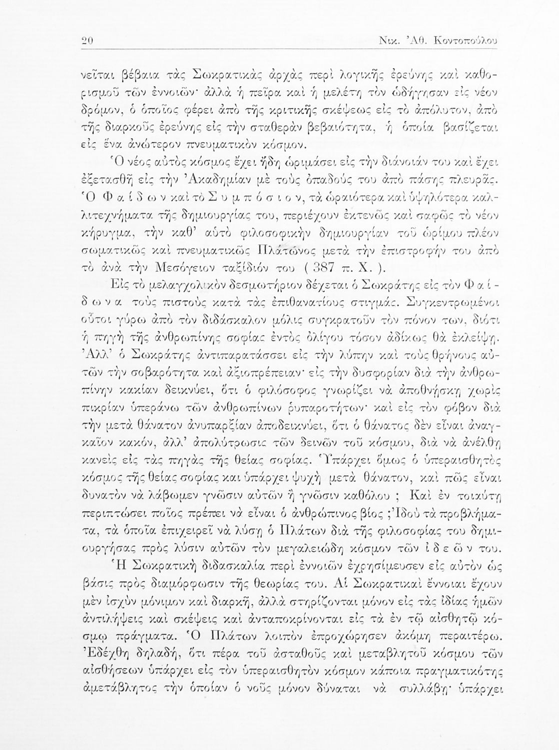 Πλάτων, Νικ. Αθ. Κοντόπουλος (σχόλια)