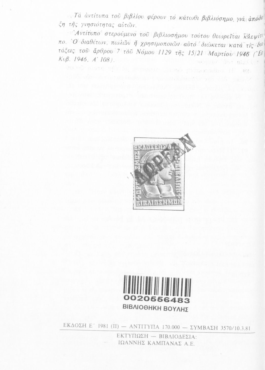 Εντοπισμός πρωτοτύπου: Βιβλιοθήκη της Βουλής των Ελλήνων