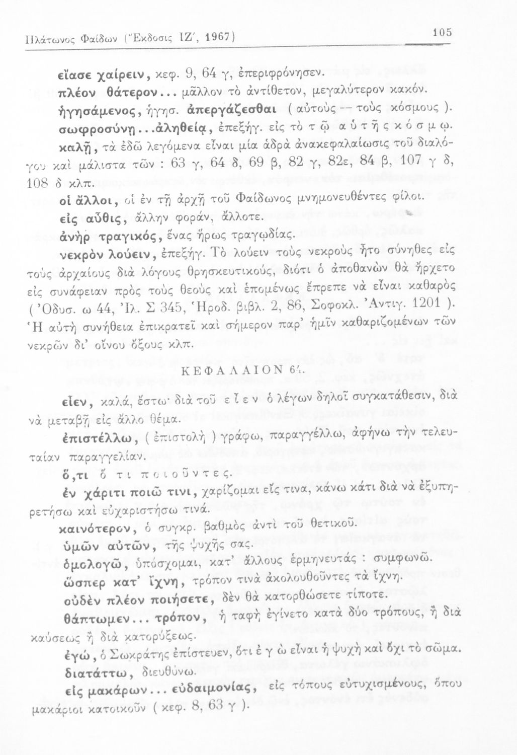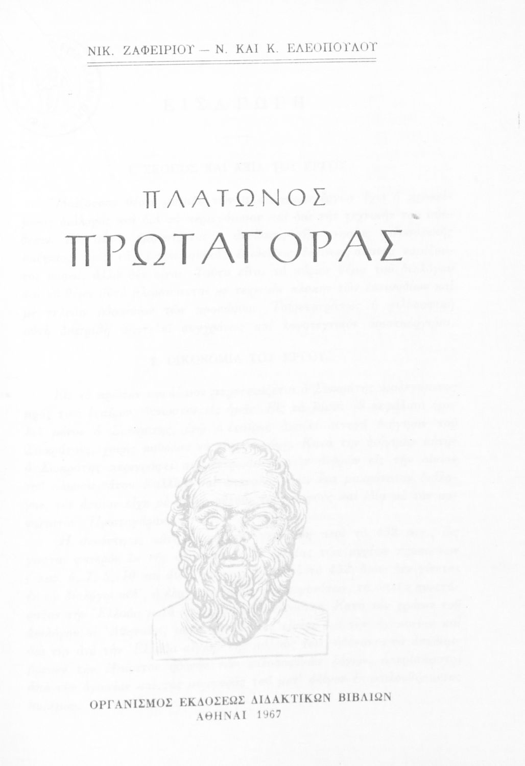 Βαθμίδα εκπαίδευσης: Δευτεροβάθμια Τάξη: Γ' Λυκείου Μάθημα: Αρχαία Ελληνικά Γλώσσα: Καθαρεύουσα Παρουσίαση περιεχομένου: Σχολικό εγχειρίδιο Αρχαίων Ελληνικών της Γ΄ Λυκείου. Το βιβλίο περιέχει δύο έργα του Πλάτωνα, Φαίδων και Πρωταγόρας, όπου ο Σωκράτης συνομιλεί για την έννοια και τις ιδέες της φιλοσοφίας |
