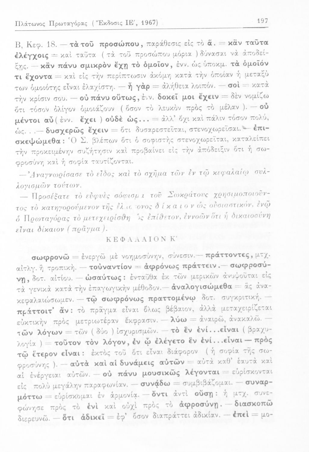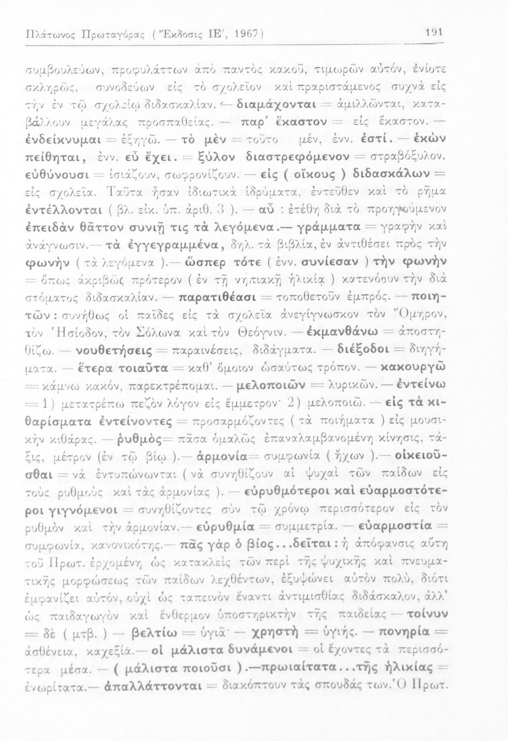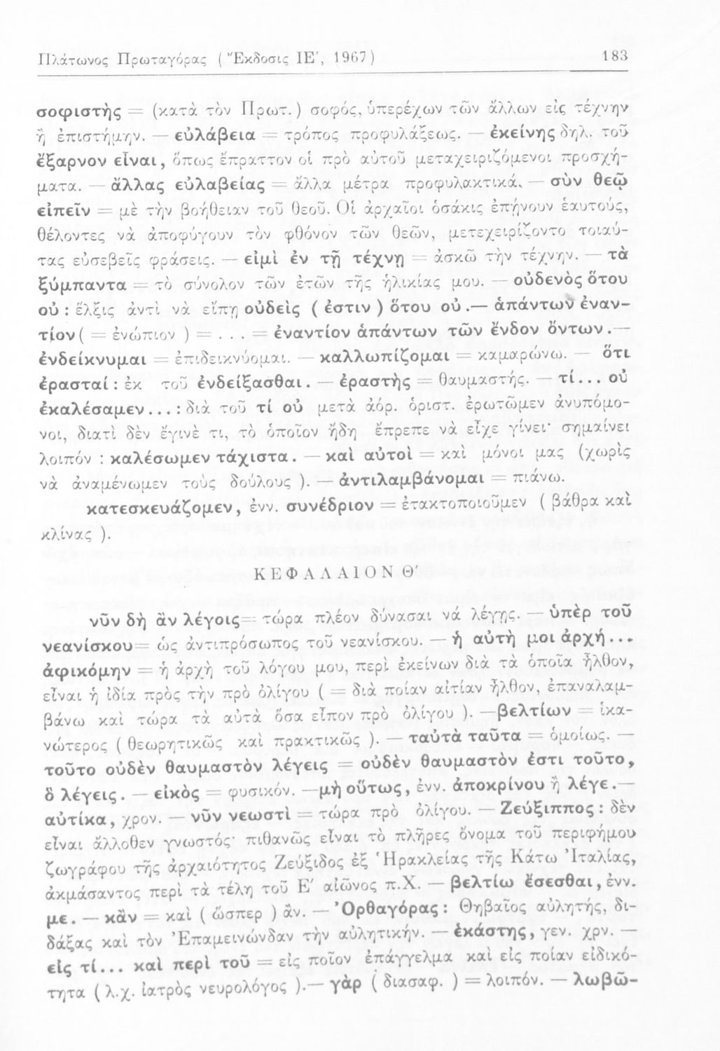Βαθμίδα εκπαίδευσης: Δευτεροβάθμια Τάξη: Γ' Λυκείου Μάθημα: Αρχαία Ελληνικά Γλώσσα: Καθαρεύουσα Παρουσίαση περιεχομένου: Σχολικό εγχειρίδιο Αρχαίων Ελληνικών της Γ΄ Λυκείου. Το βιβλίο περιέχει δύο έργα του Πλάτωνα, Φαίδων και Πρωταγόρας, όπου ο Σωκράτης συνομιλεί για την έννοια και τις ιδέες της φιλοσοφίας |