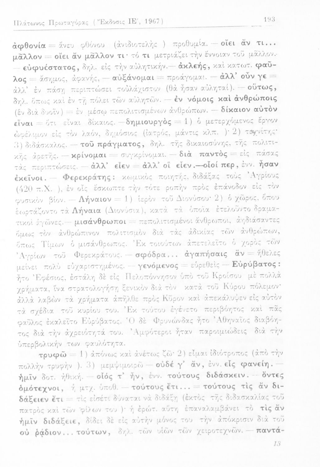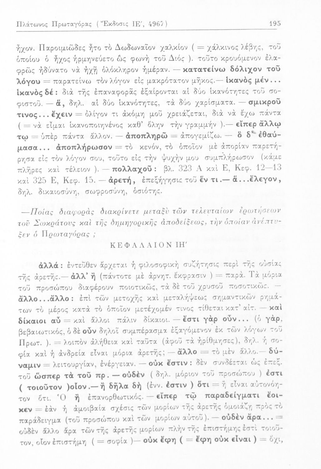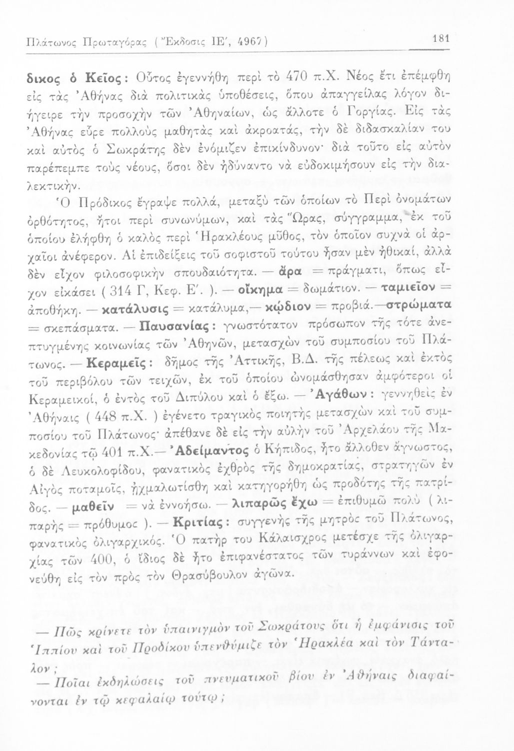 Βαθμίδα εκπαίδευσης: Δευτεροβάθμια Τάξη: Γ' Λυκείου Μάθημα: Αρχαία Ελληνικά Γλώσσα: Καθαρεύουσα Παρουσίαση περιεχομένου: Σχολικό εγχειρίδιο Αρχαίων Ελληνικών της Γ΄ Λυκείου. Το βιβλίο περιέχει δύο έργα του Πλάτωνα, Φαίδων και Πρωταγόρας, όπου ο Σωκράτης συνομιλεί για την έννοια και τις ιδέες της φιλοσοφίας |