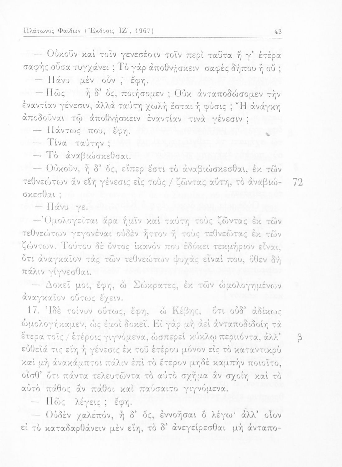 Βαθμίδα εκπαίδευσης: Δευτεροβάθμια Τάξη: Γ' Λυκείου Μάθημα: Αρχαία Ελληνικά Γλώσσα: Καθαρεύουσα Παρουσίαση περιεχομένου: Σχολικό εγχειρίδιο Αρχαίων Ελληνικών της Γ΄ Λυκείου. Το βιβλίο περιέχει δύο έργα του Πλάτωνα, Φαίδων και Πρωταγόρας, όπου ο Σωκράτης συνομιλεί για την έννοια και τις ιδέες της φιλοσοφίας |