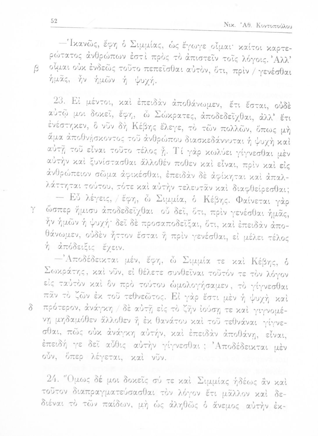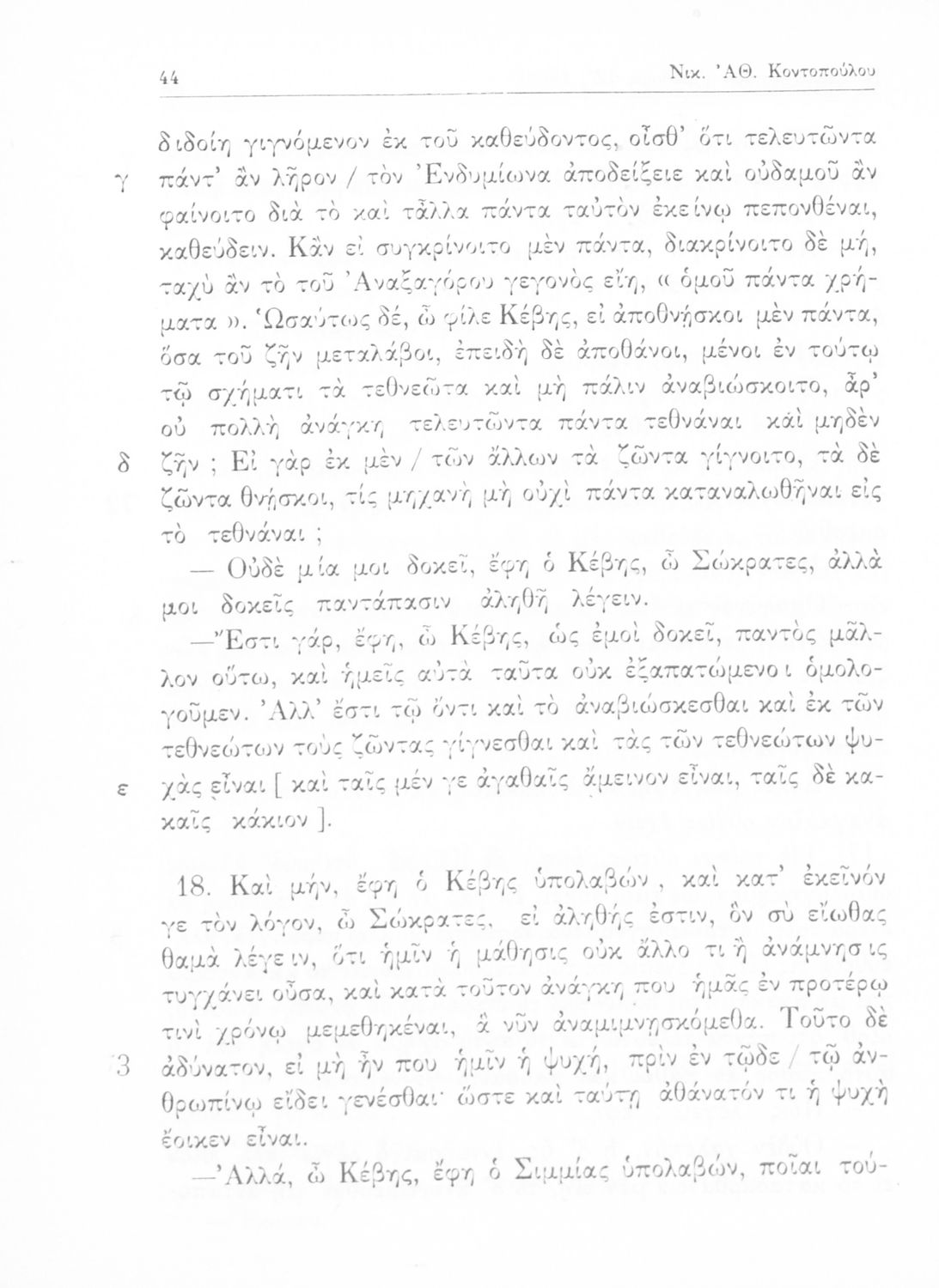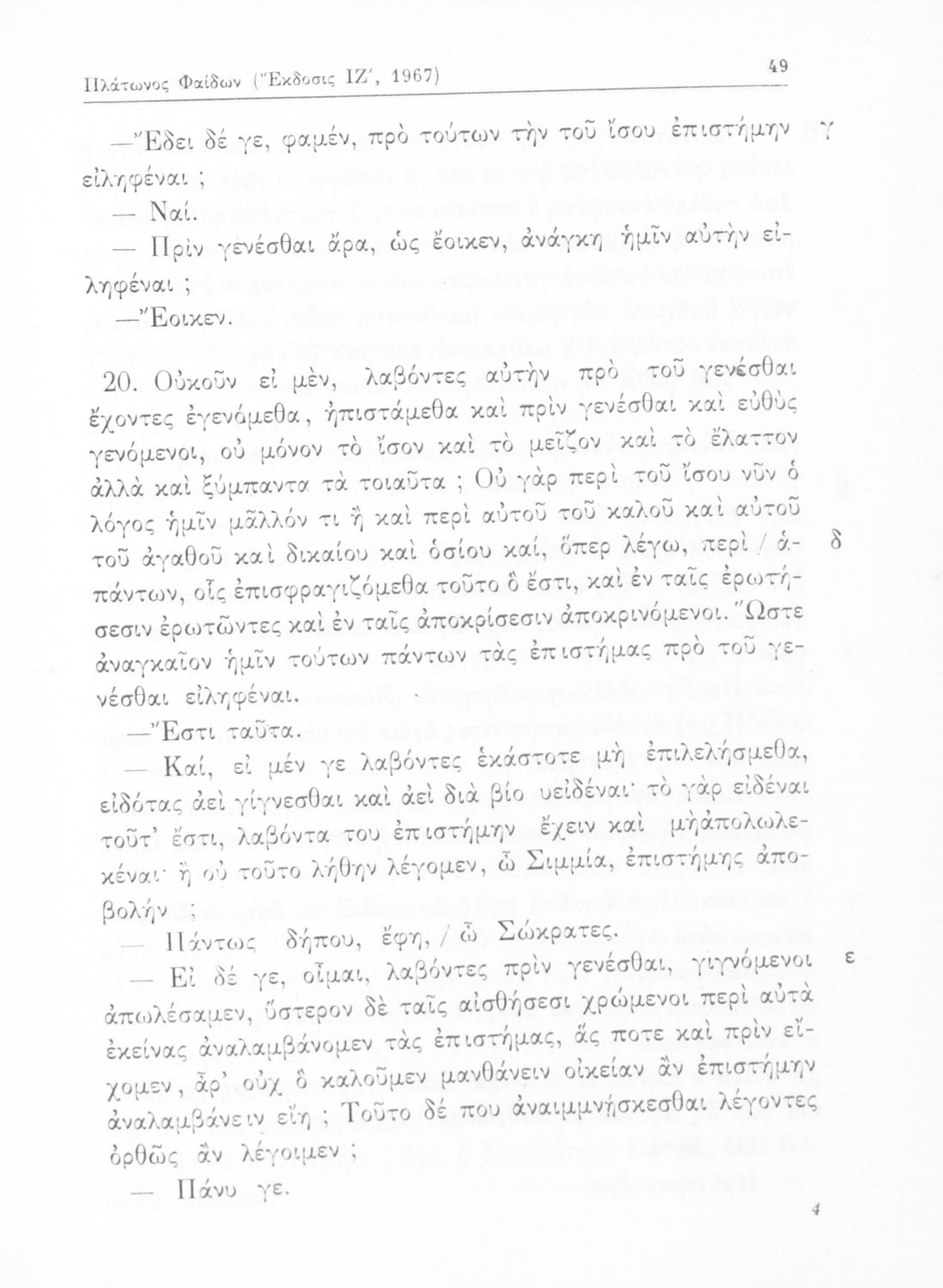 Σχολικό εγχειρίδιο Αρχαίων Ελληνικών της Γ΄ Λυκείου. Το βιβλίο περιέχει δύο έργα του Πλάτωνα, Φαίδων και Πρωταγόρας, όπου ο Σωκράτης συνομιλεί για την έννοια και τις ιδέες της φιλοσοφίας