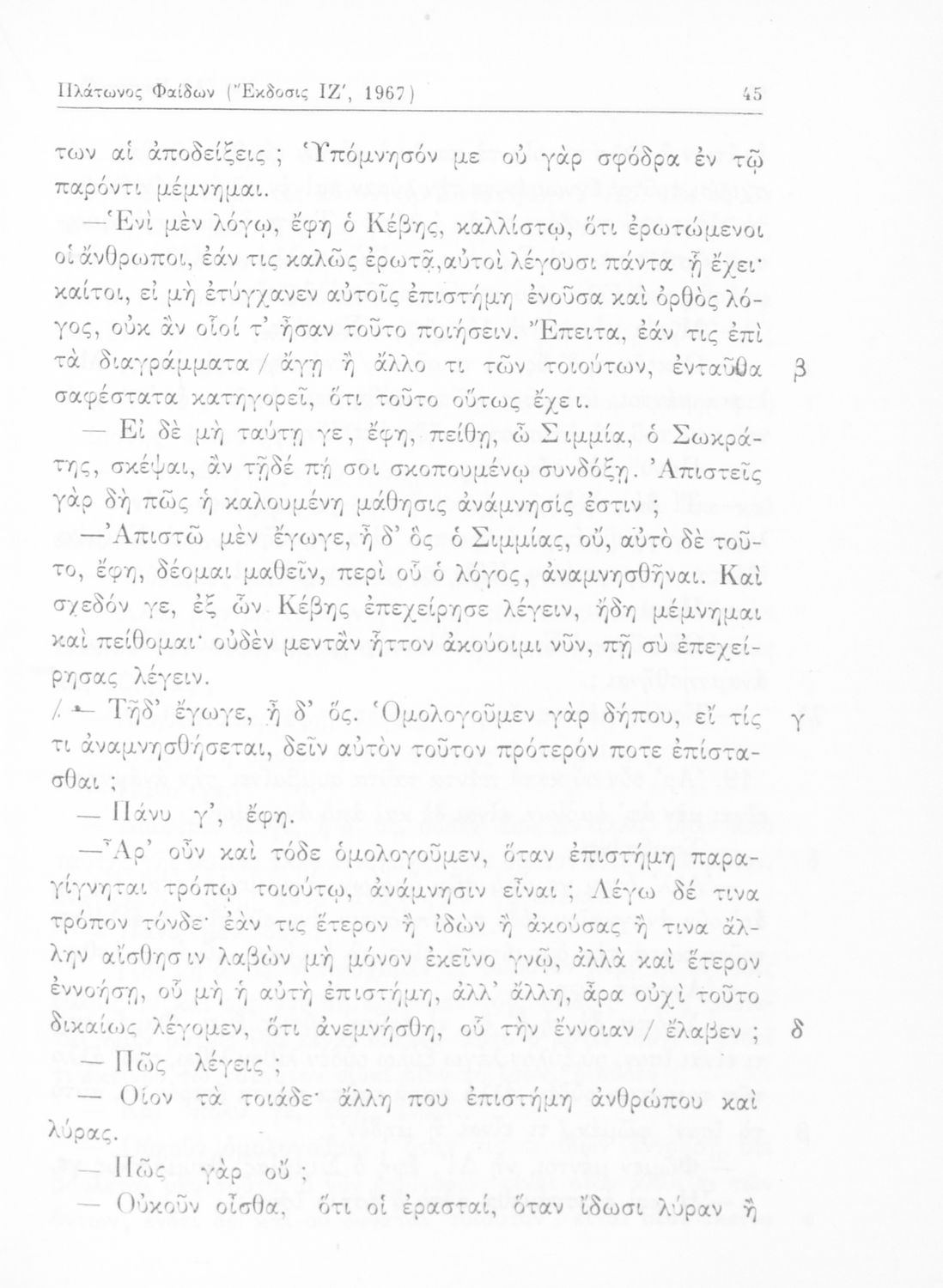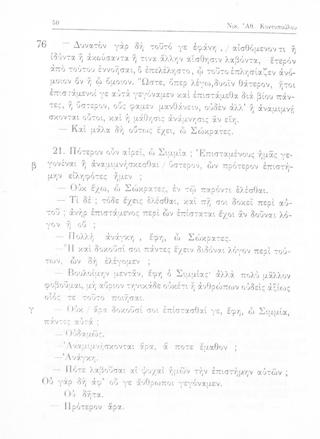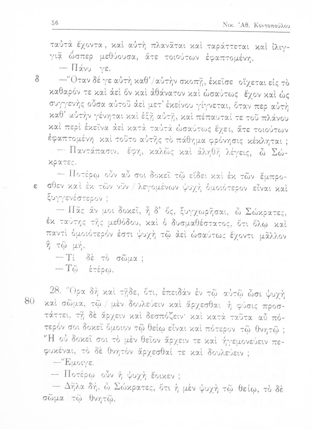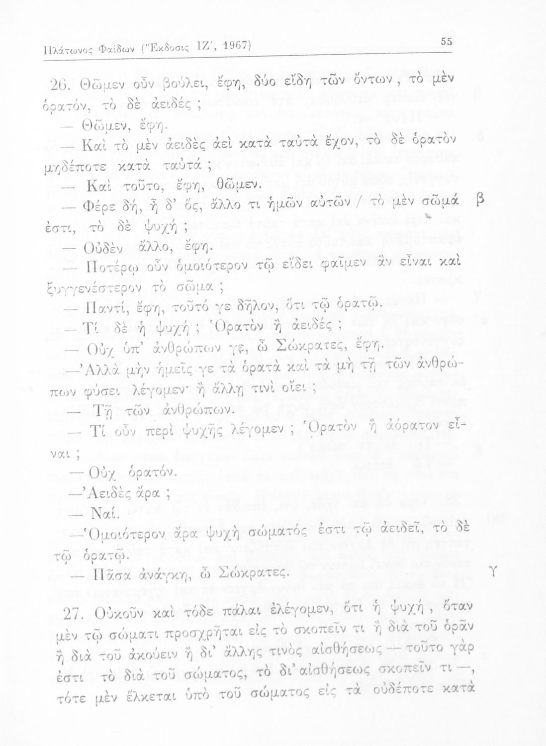 LDR 01246 2200217 4500 035 ## _a03-20556586 040 ## _aΒιβλιοθήκη της Βουλής των Ελλήνων 041 ## _ael 100 ## _aΠλάτων _aΝ. Κοντόπουλος _aΝ. Ζαφειρίου _aΝ. Ελεόπουλος _aΕ. Ελεοπούλου 110 ## _a20556586 245 0# _aΠλάτωνας Διάλογοι Φαίδων – Πρωταγόρας Γ ́ Λυκείου 250 ## _a16η Έκδοση 260 ## _aΑθήνα _bΟργανισμός Εκδόσεως Διδακτικών Βιβλίων _c1967 300 ## _a214 520 ## _aΣχολικό εγχειρίδιο Αρχαίων Ελληνικών της Γ΄ Λυκείου. Το βιβλίο περιέχει δύο έργα του Πλάτωνα, Φαίδων και Πρωταγόρας, όπου ο Σωκράτης συνομιλεί για την έννοια και τις ιδέες της φιλοσοφίας 521 ## _aΓ' Λυκείου 522 ## _aΕλλάδα 546 ## _aΚαθαρεύουσα 563 ## _aΜαλακό Εξώφυλλο 583 ## _a1506/27-3-1967, 1531/12-4-1967 _c1967 650 #4 _aΑρχαία Ελλάδα _aΠλάτωνας _aΣωκράτης _aΦιλοσοφία