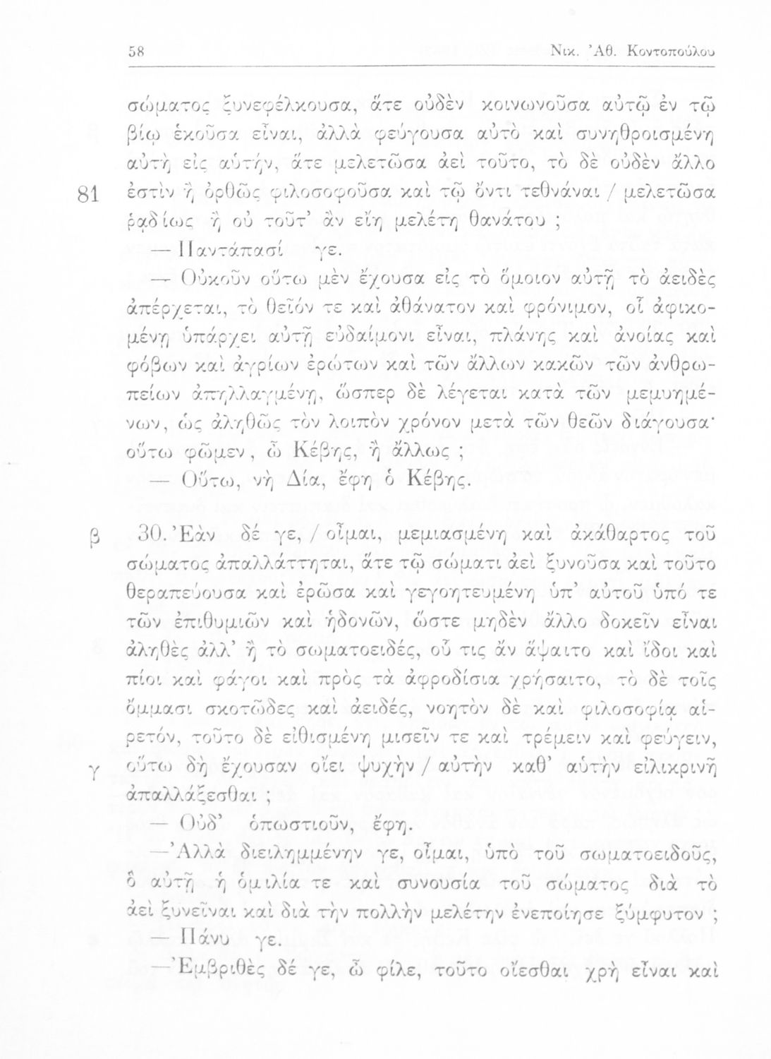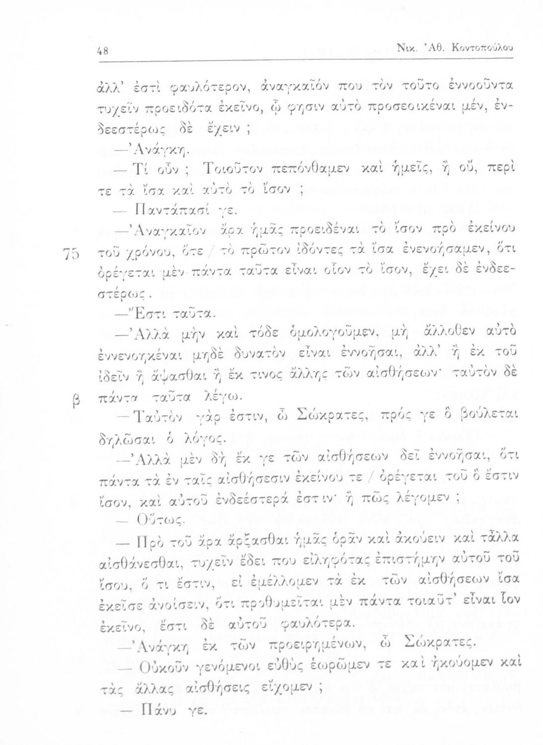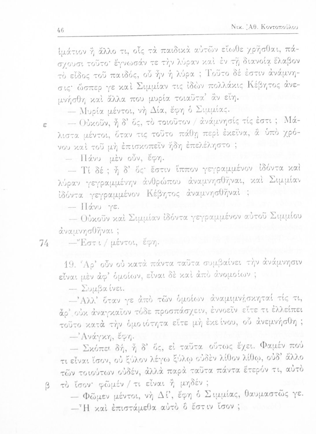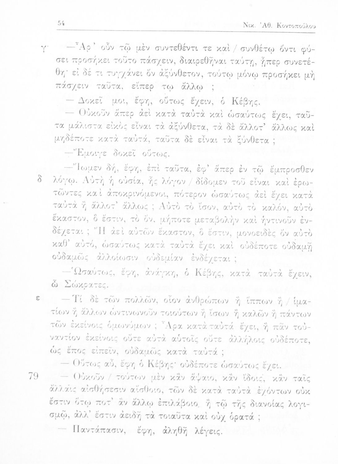 LDR 01246 2200217 4500 035 ## _a03-20556586 040 ## _aΒιβλιοθήκη της Βουλής των Ελλήνων 041 ## _ael 100 ## _aΠλάτων _aΝ. Κοντόπουλος _aΝ. Ζαφειρίου _aΝ. Ελεόπουλος _aΕ. Ελεοπούλου 110 ## _a20556586 245 0# _aΠλάτωνας Διάλογοι Φαίδων – Πρωταγόρας Γ ́ Λυκείου 250 ## _a16η Έκδοση 260 ## _aΑθήνα _bΟργανισμός Εκδόσεως Διδακτικών Βιβλίων _c1967 300 ## _a214 520 ## _aΣχολικό εγχειρίδιο Αρχαίων Ελληνικών της Γ΄ Λυκείου. Το βιβλίο περιέχει δύο έργα του Πλάτωνα, Φαίδων και Πρωταγόρας, όπου ο Σωκράτης συνομιλεί για την έννοια και τις ιδέες της φιλοσοφίας 521 ## _aΓ' Λυκείου 522 ## _aΕλλάδα 546 ## _aΚαθαρεύουσα 563 ## _aΜαλακό Εξώφυλλο 583 ## _a1506/27-3-1967, 1531/12-4-1967 _c1967 650 #4 _aΑρχαία Ελλάδα _aΠλάτωνας _aΣωκράτης _aΦιλοσοφία