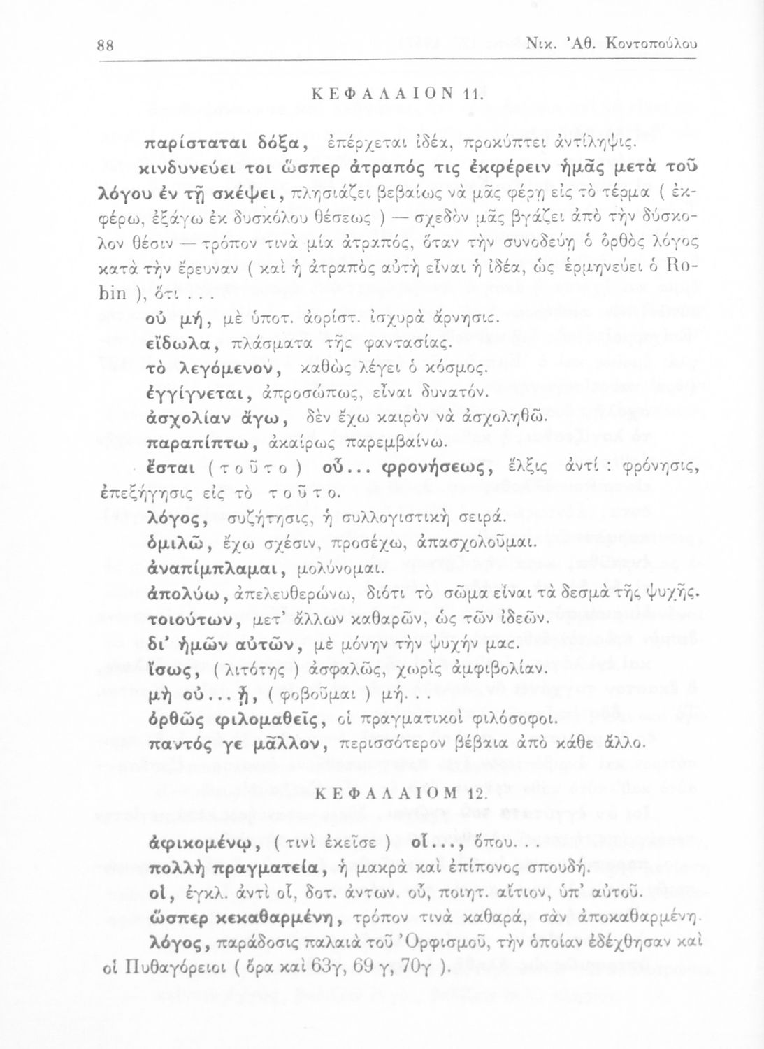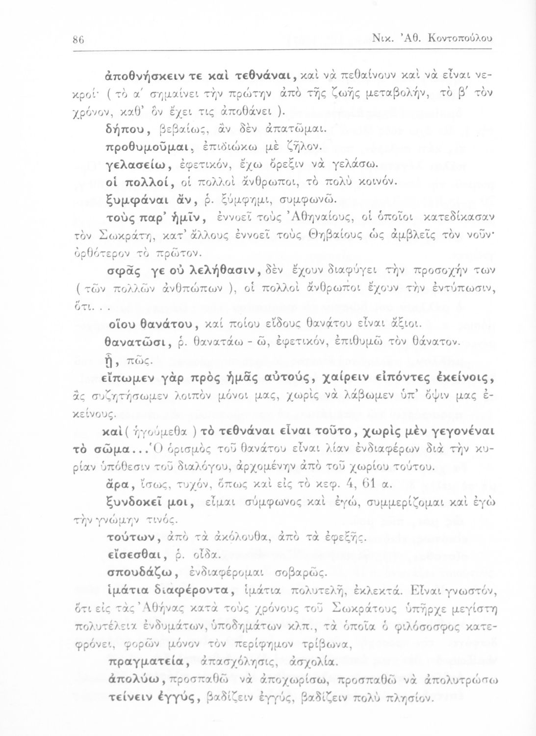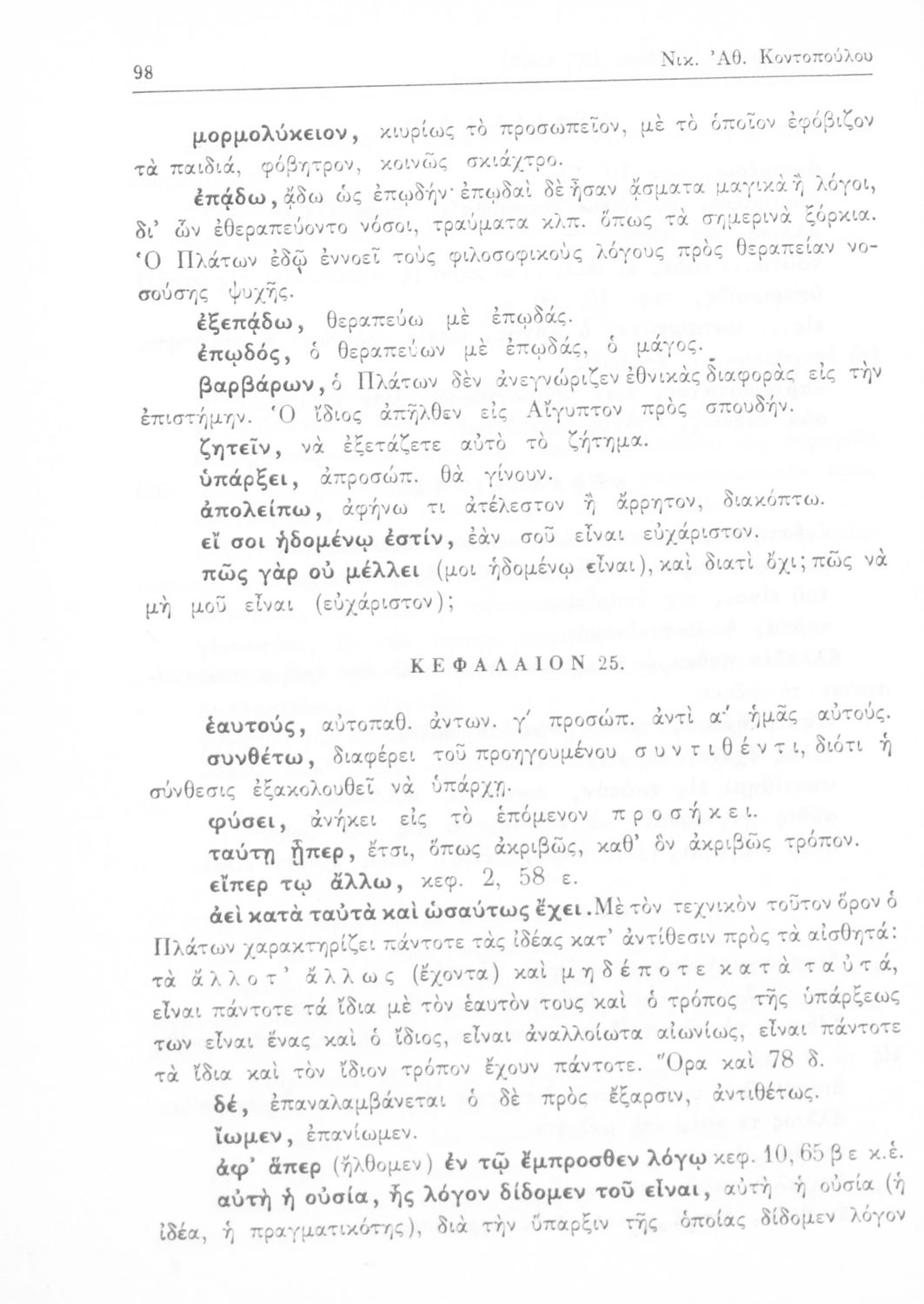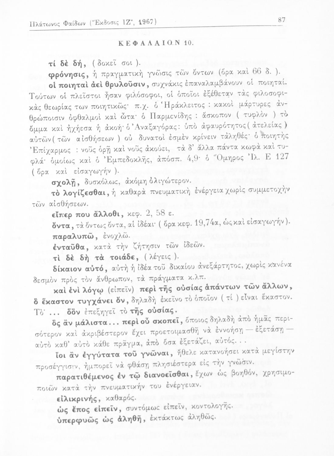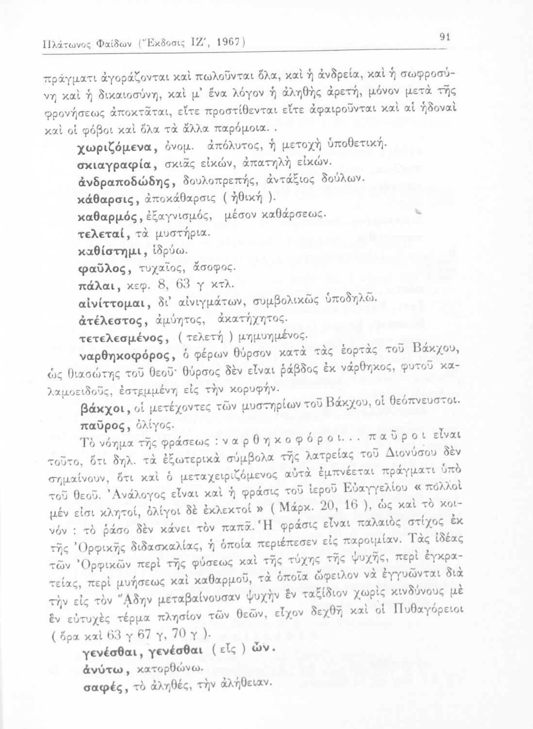 Βαθμίδα εκπαίδευσης: Δευτεροβάθμια Τάξη: Γ' Λυκείου Μάθημα: Αρχαία Ελληνικά Γλώσσα: Καθαρεύουσα Παρουσίαση περιεχομένου: Σχολικό εγχειρίδιο Αρχαίων Ελληνικών της Γ΄ Λυκείου. Το βιβλίο περιέχει δύο έργα του Πλάτωνα, Φαίδων και Πρωταγόρας, όπου ο Σωκράτης συνομιλεί για την έννοια και τις ιδέες της φιλοσοφίας |