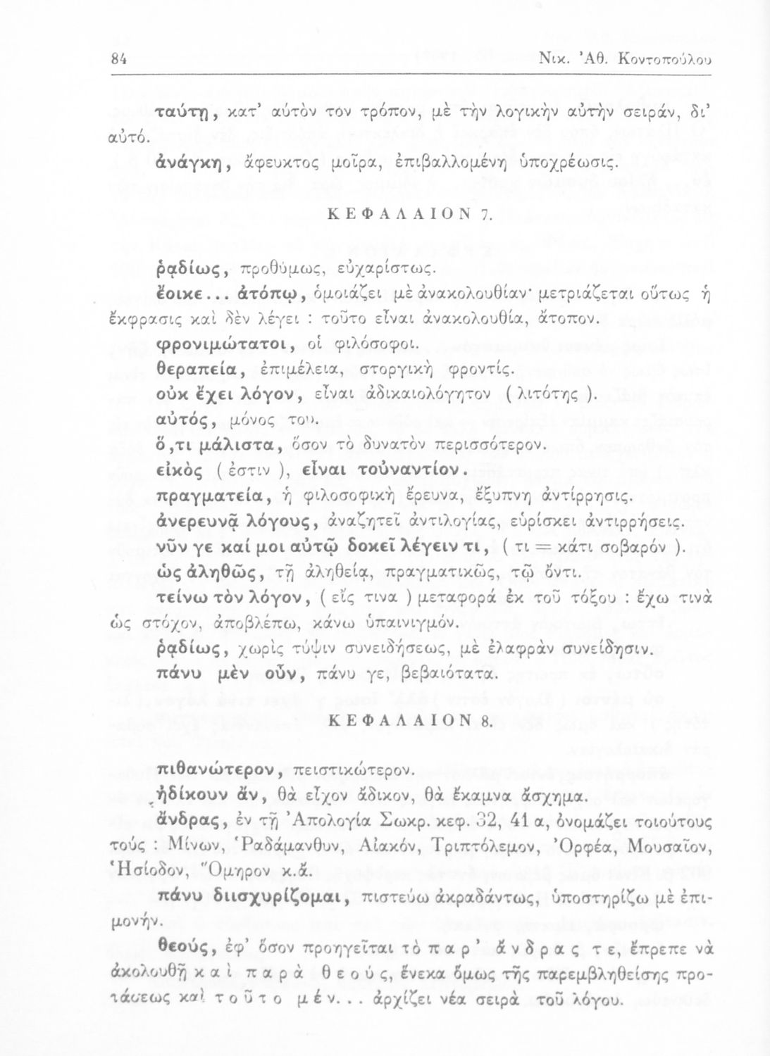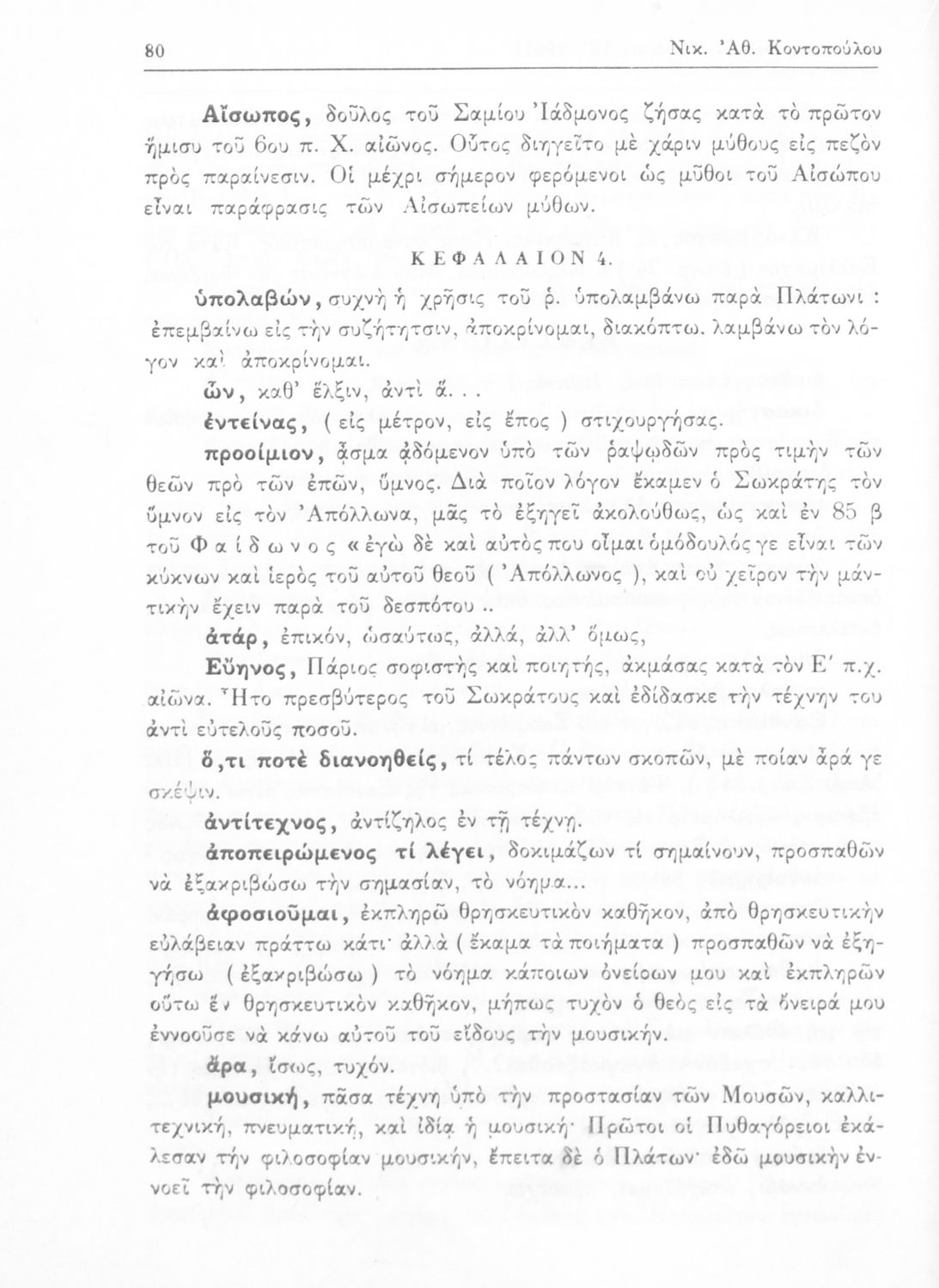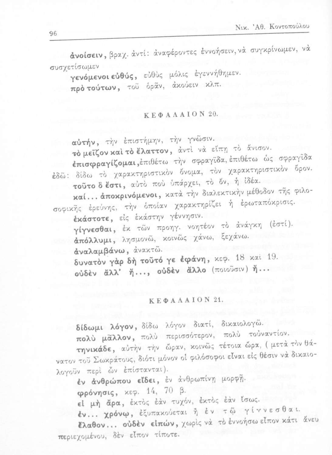 LDR 01246 2200217 4500 035 ## _a03-20556586 040 ## _aΒιβλιοθήκη της Βουλής των Ελλήνων 041 ## _ael 100 ## _aΠλάτων _aΝ. Κοντόπουλος _aΝ. Ζαφειρίου _aΝ. Ελεόπουλος _aΕ. Ελεοπούλου 110 ## _a20556586 245 0# _aΠλάτωνας Διάλογοι Φαίδων – Πρωταγόρας Γ ́ Λυκείου 250 ## _a16η Έκδοση 260 ## _aΑθήνα _bΟργανισμός Εκδόσεως Διδακτικών Βιβλίων _c1967 300 ## _a214 520 ## _aΣχολικό εγχειρίδιο Αρχαίων Ελληνικών της Γ΄ Λυκείου. Το βιβλίο περιέχει δύο έργα του Πλάτωνα, Φαίδων και Πρωταγόρας, όπου ο Σωκράτης συνομιλεί για την έννοια και τις ιδέες της φιλοσοφίας 521 ## _aΓ' Λυκείου 522 ## _aΕλλάδα 546 ## _aΚαθαρεύουσα 563 ## _aΜαλακό Εξώφυλλο 583 ## _a1506/27-3-1967, 1531/12-4-1967 _c1967 650 #4 _aΑρχαία Ελλάδα _aΠλάτωνας _aΣωκράτης _aΦιλοσοφία