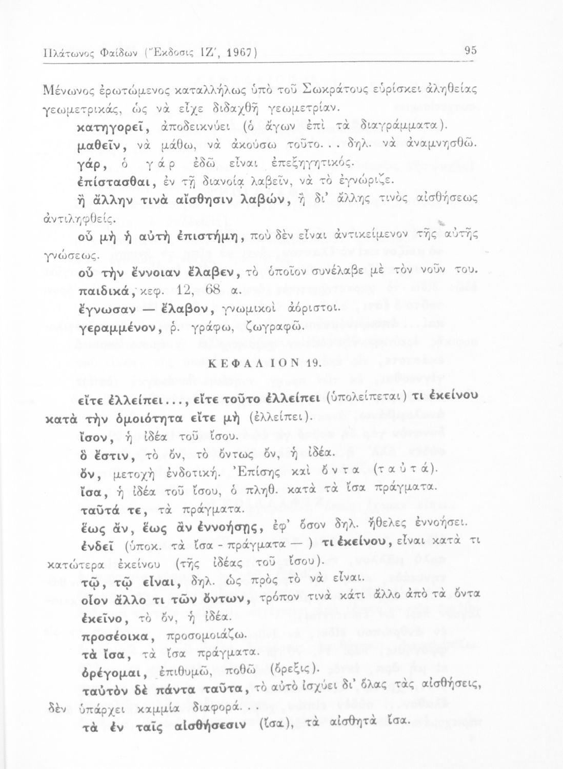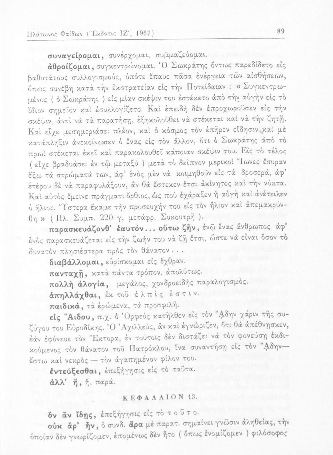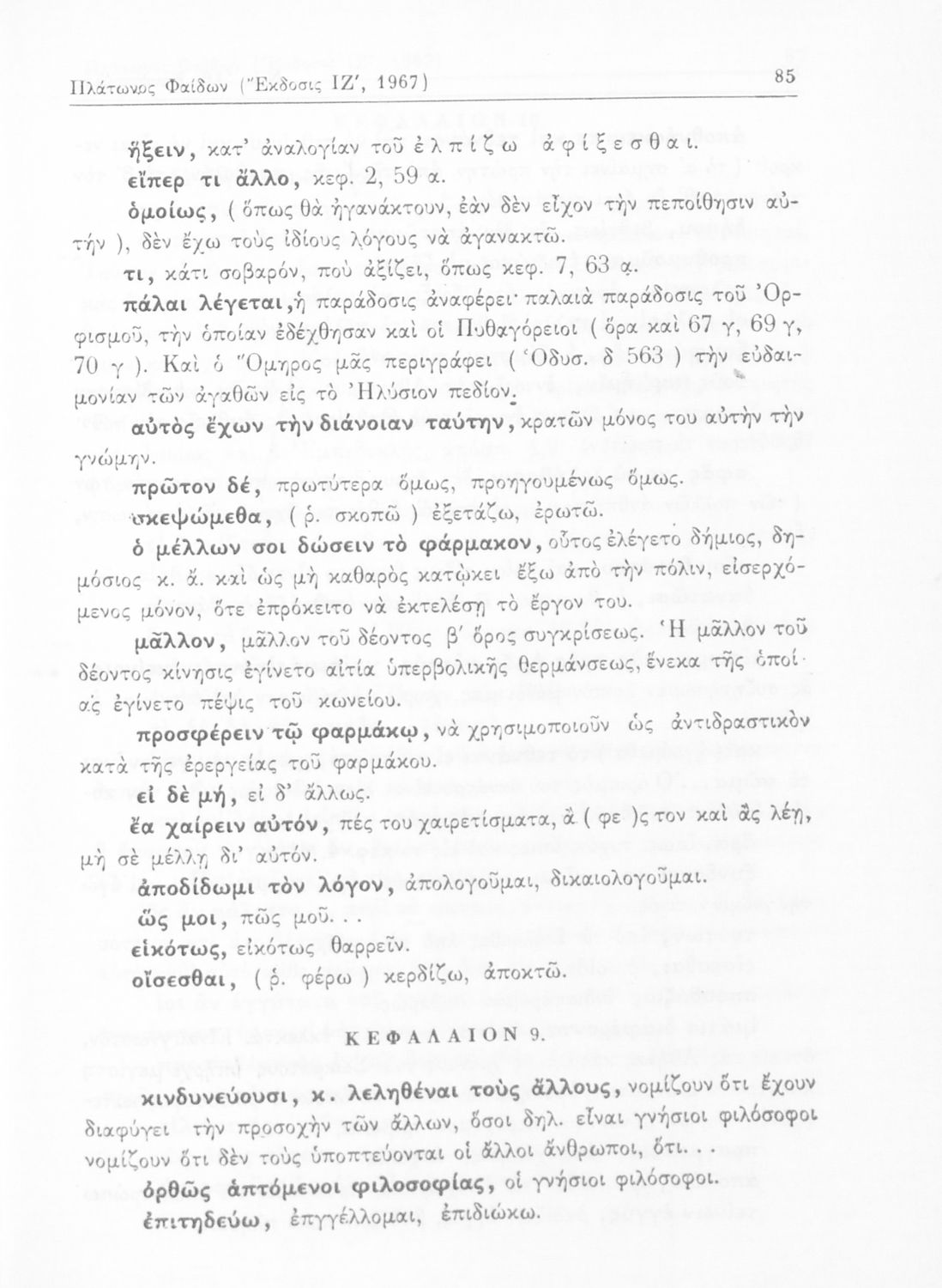 Σχολικό εγχειρίδιο Αρχαίων Ελληνικών της Γ΄ Λυκείου. Το βιβλίο περιέχει δύο έργα του Πλάτωνα, Φαίδων και Πρωταγόρας, όπου ο Σωκράτης συνομιλεί για την έννοια και τις ιδέες της φιλοσοφίας